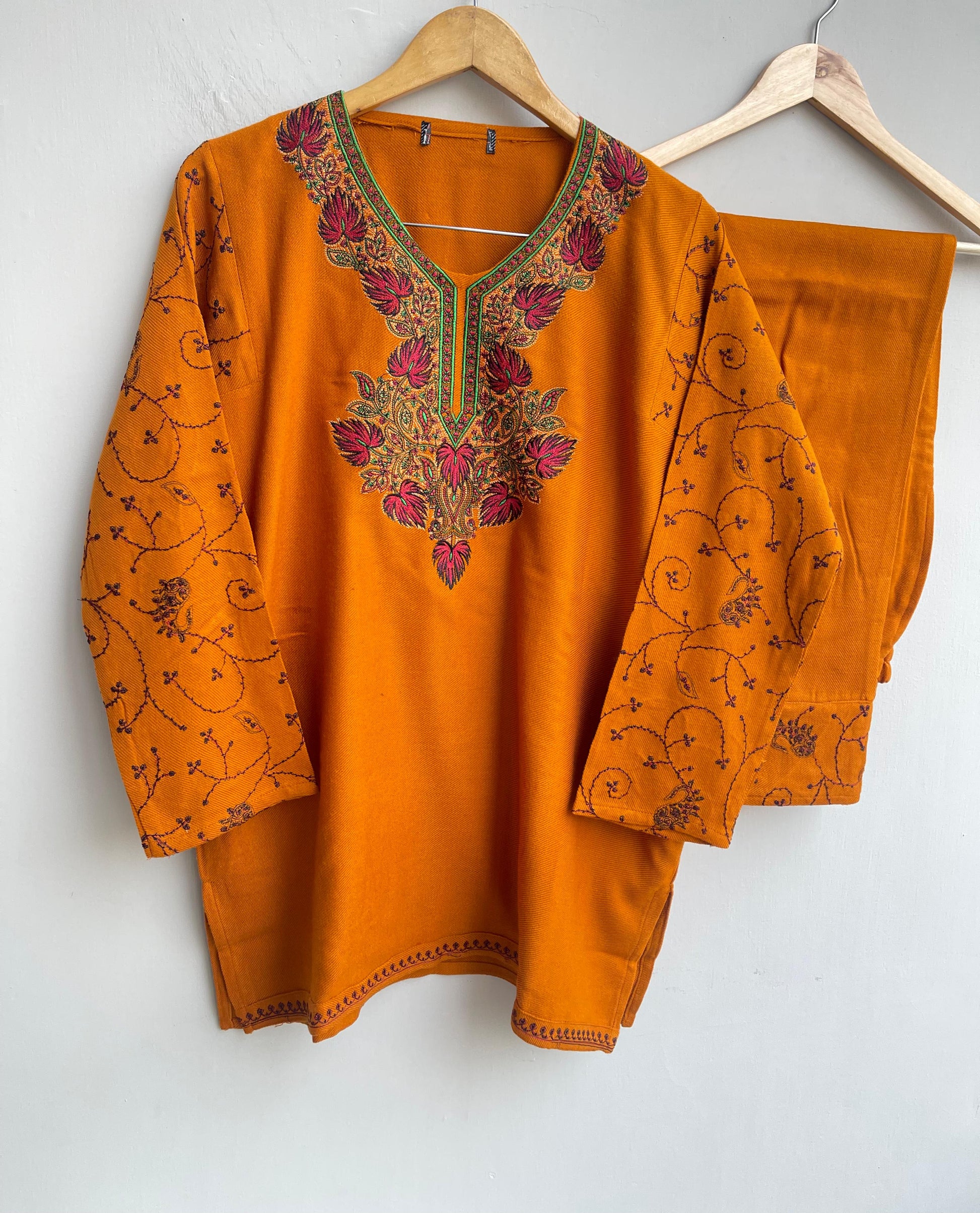 😊beautiful kurta with Resham embroidery chinar leaves Kashmiri work inspired with pockets