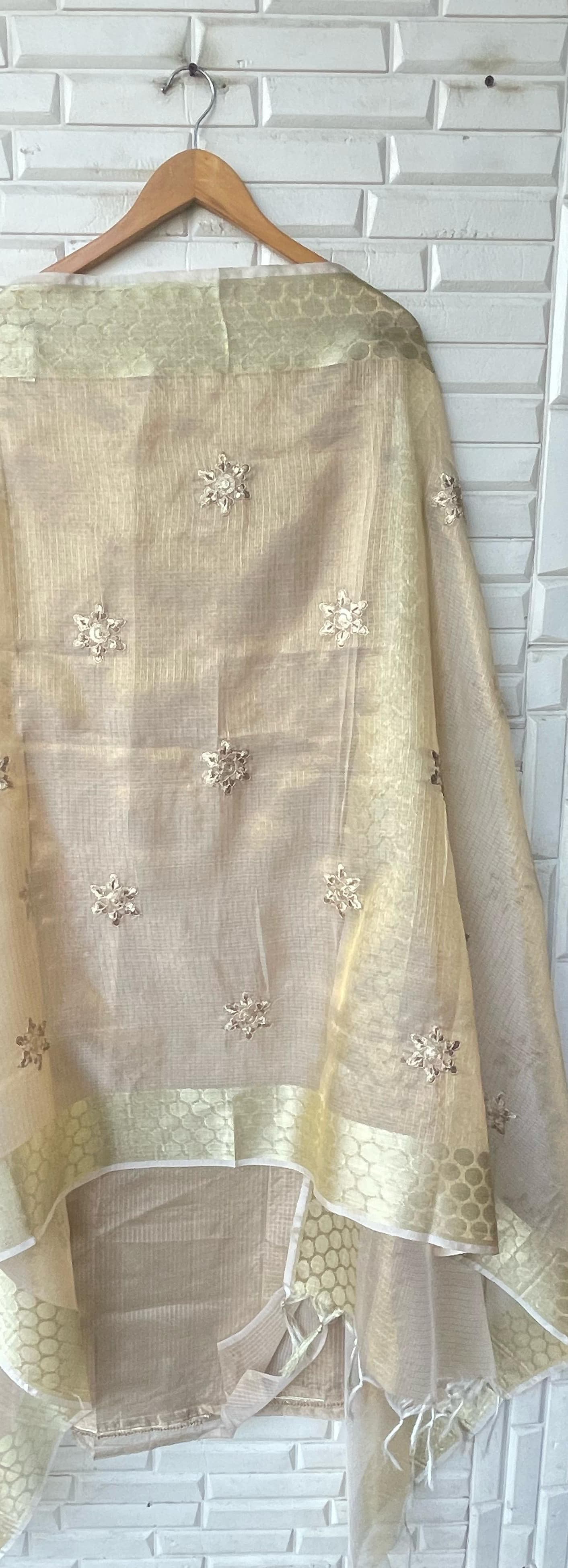 š Shimmer Ā kora cotton fabric dupatta with zari sequence embroidery and tassel border laceĀ