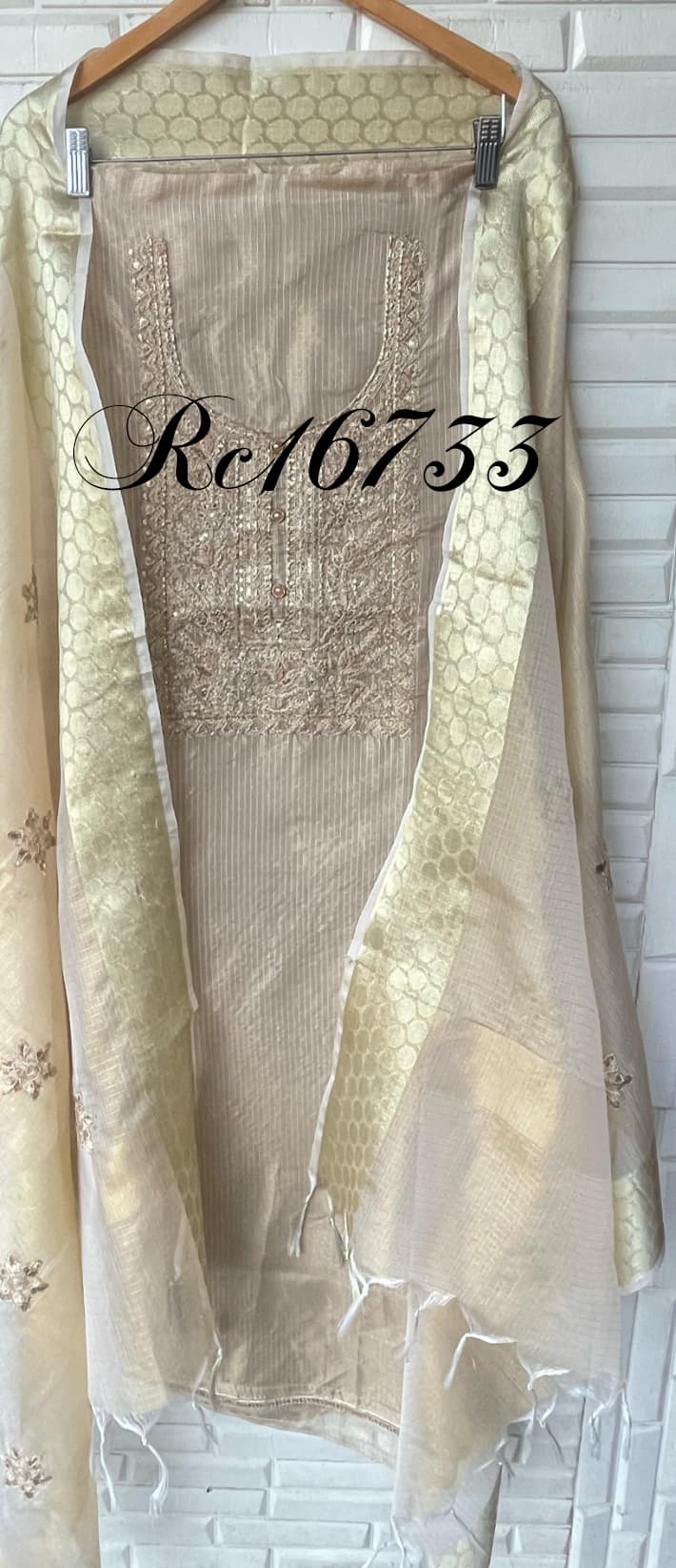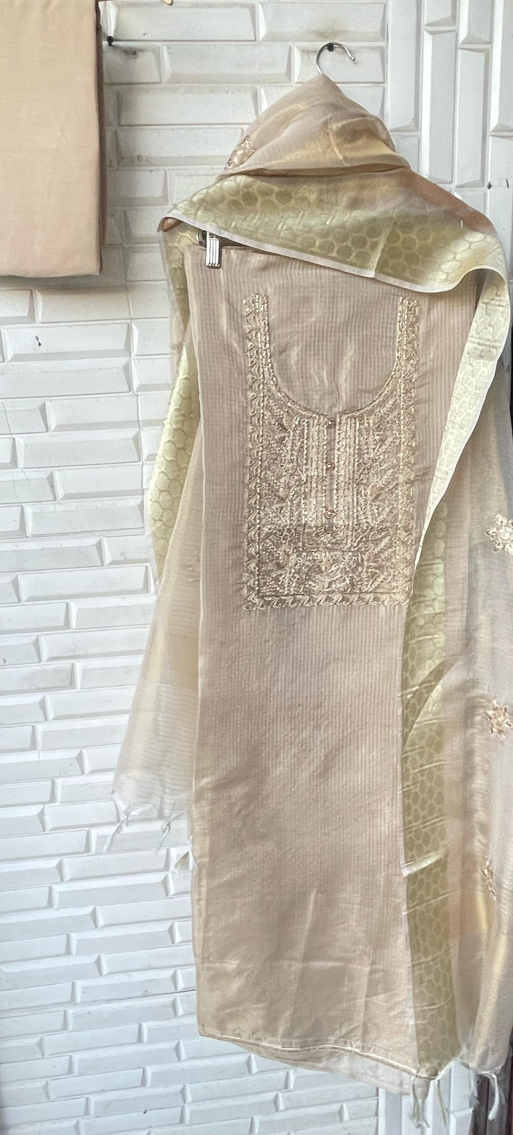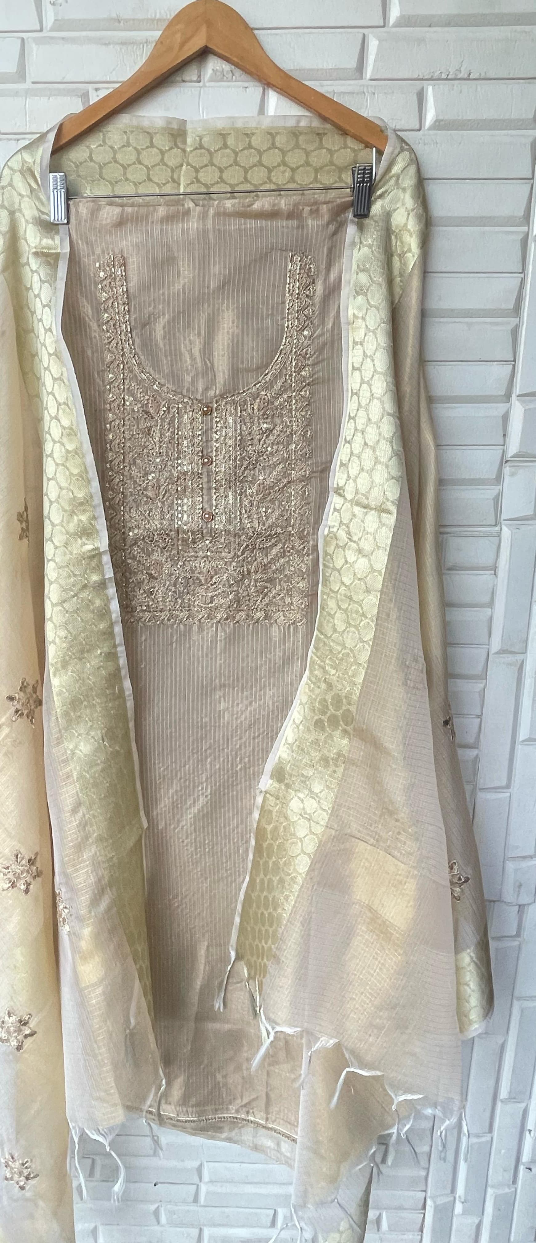 š Shimmer kora cotton fabric unstitched shirt with sequence kutdanna zari embroidery and ghera border laceĀ