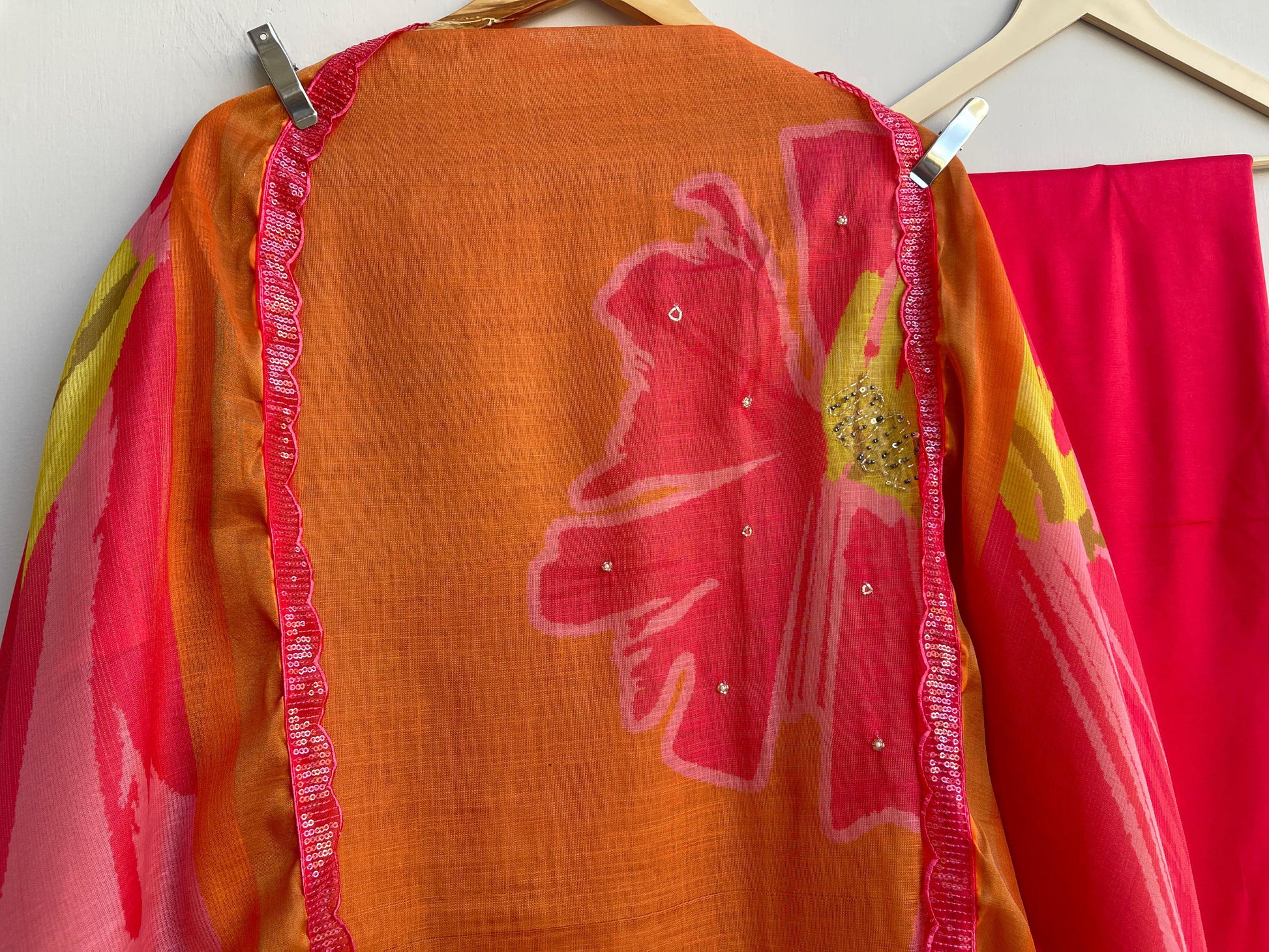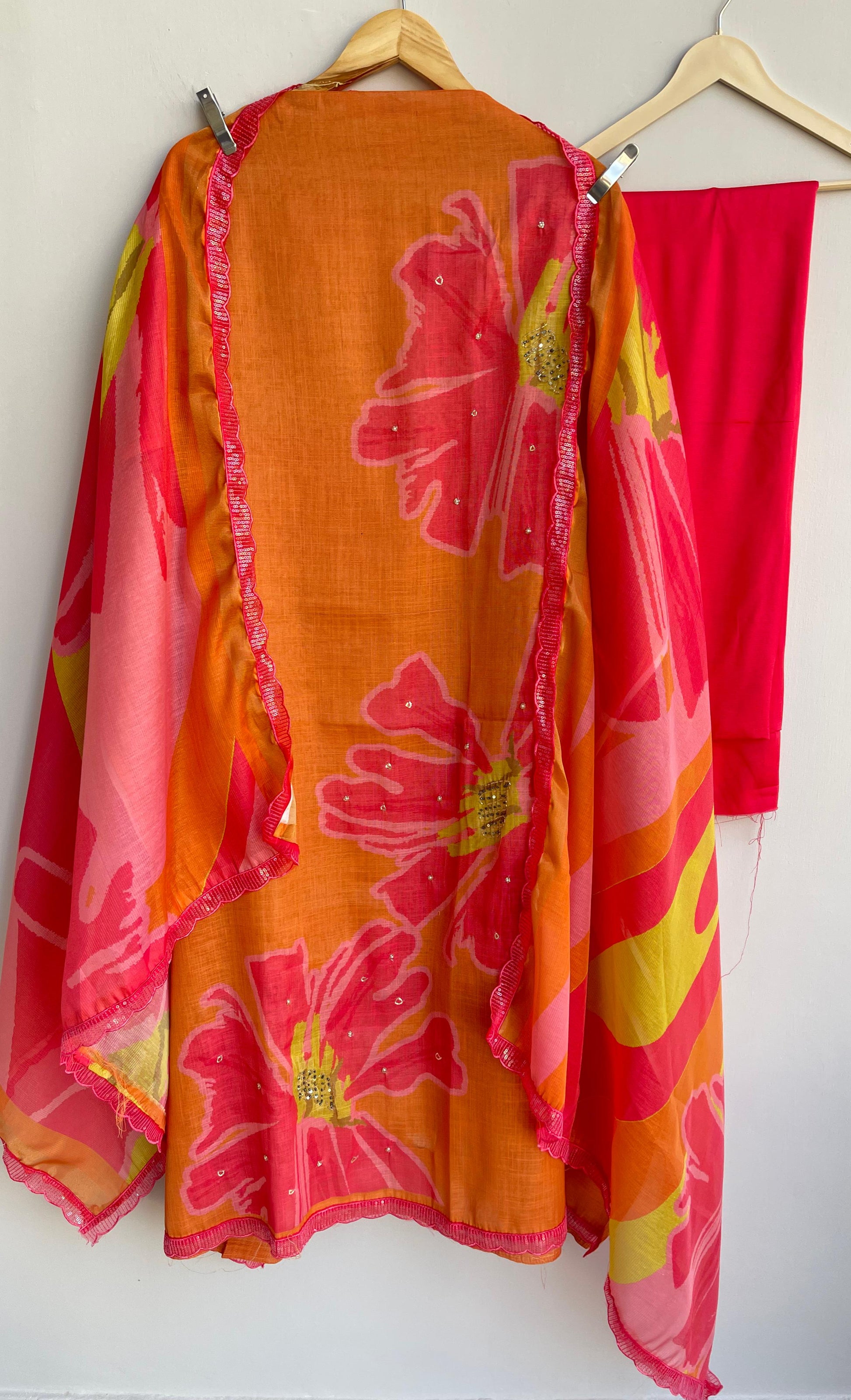 😊 Kora linen printed fabric unstitched shirt with kutdanna pearl sequence embroidery