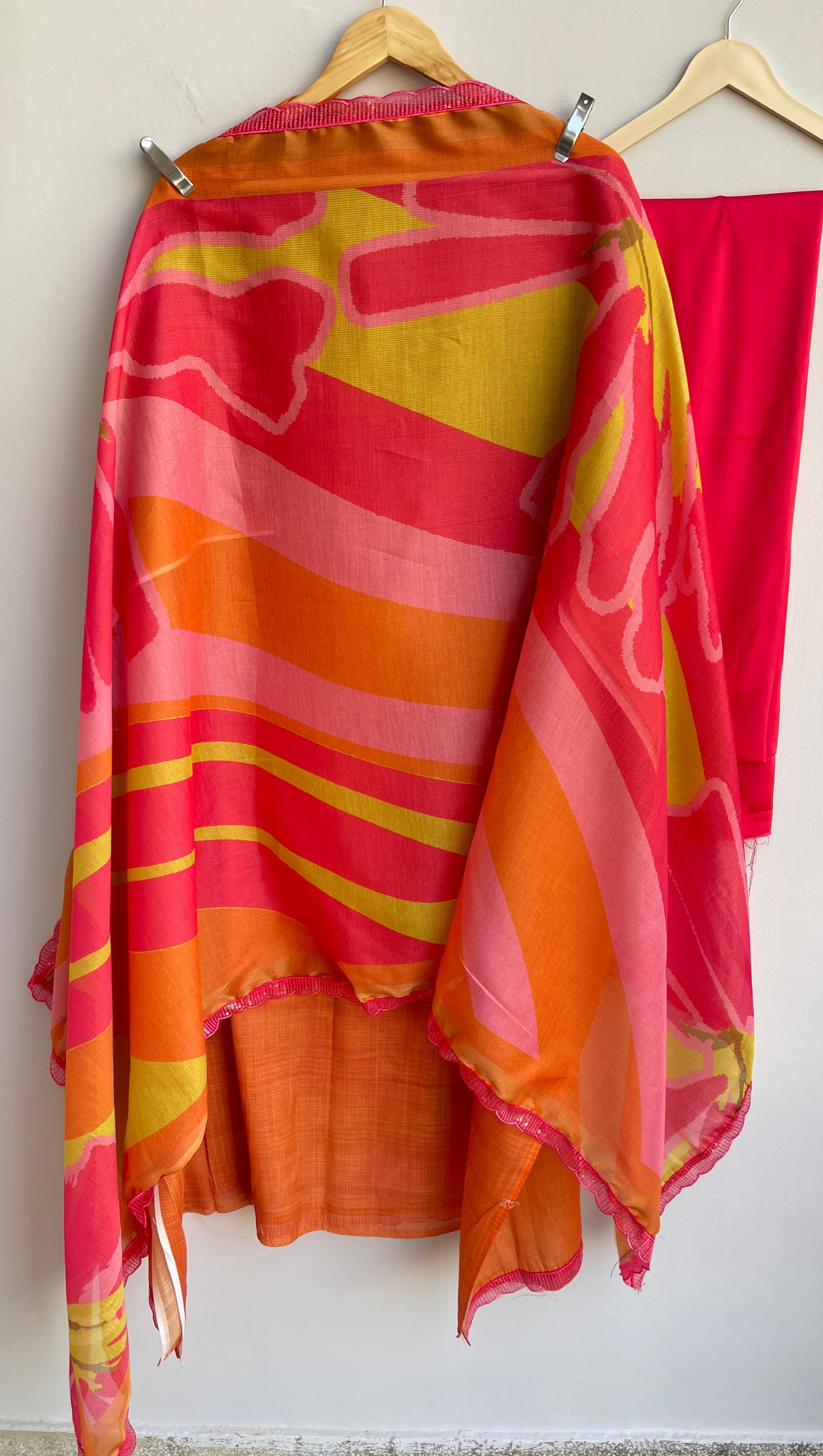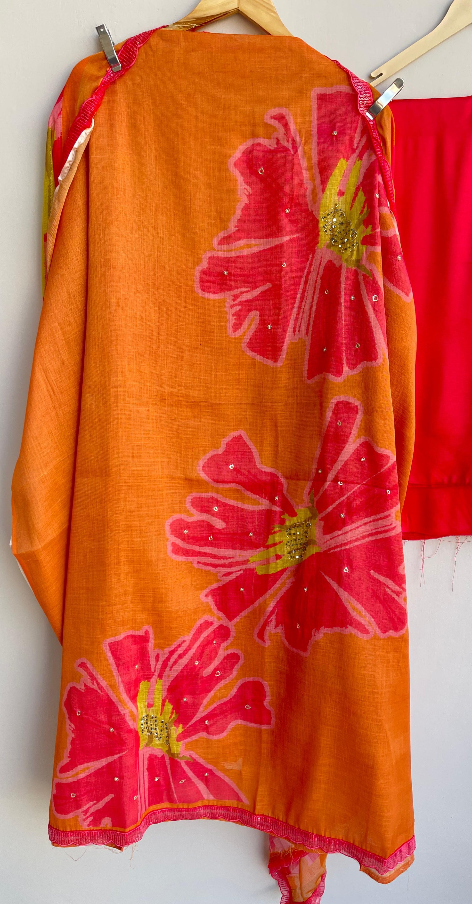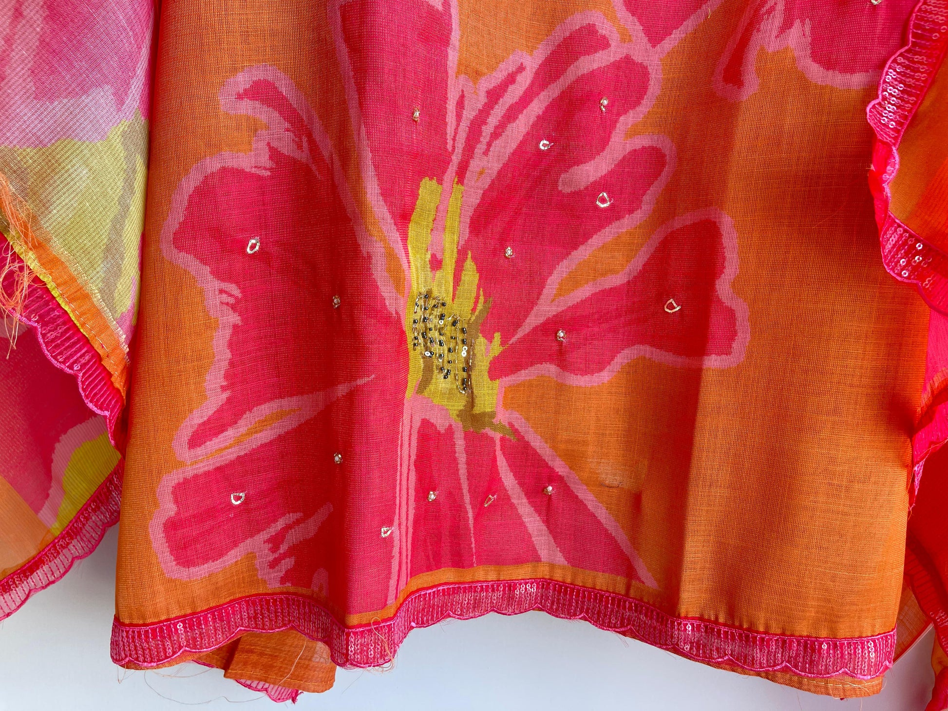 😊 Kora linen printed fabric dupatta with sequins embroidered border