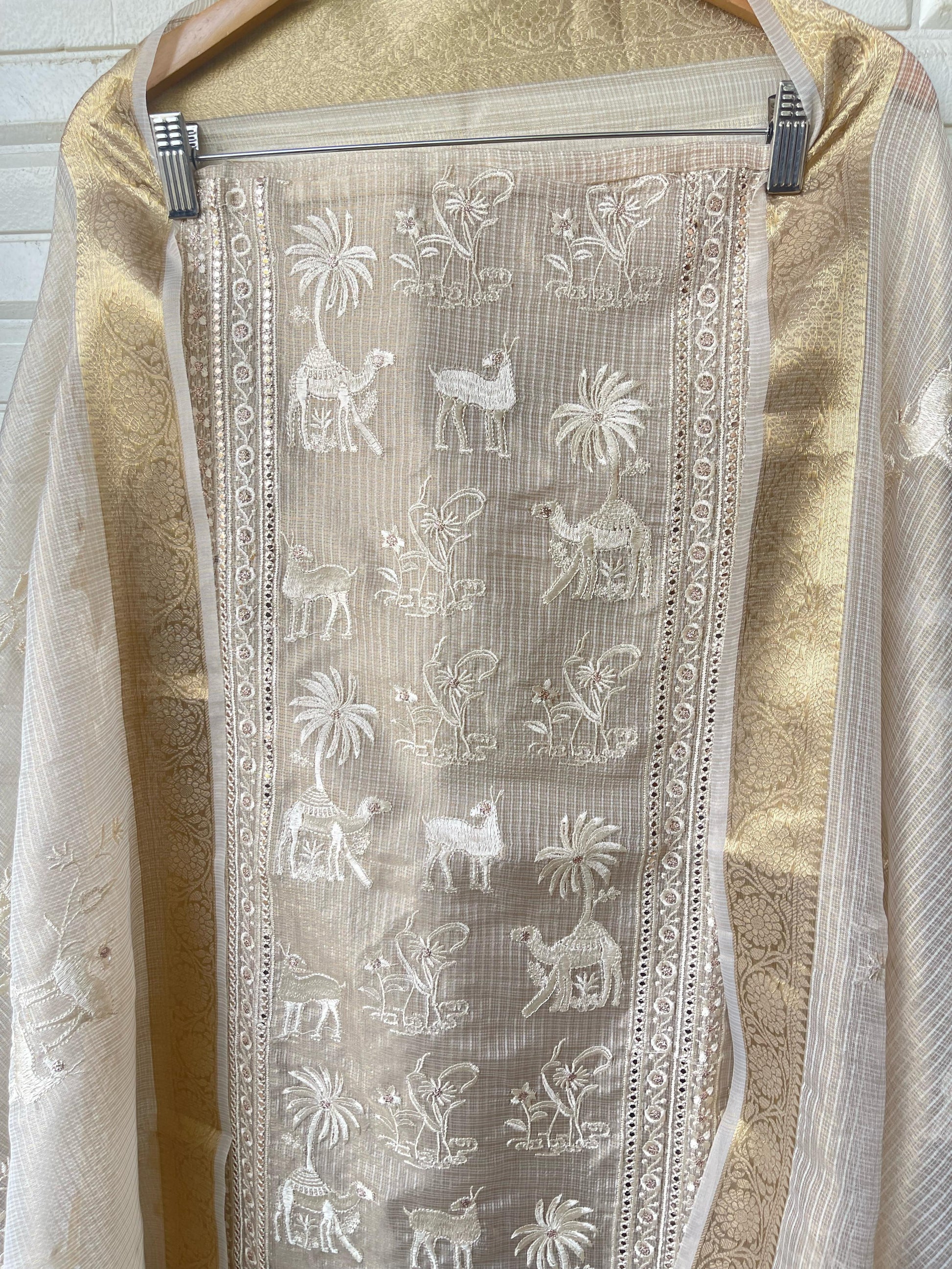 😊Kora shimmer unstitched shirt with Resham embroidery