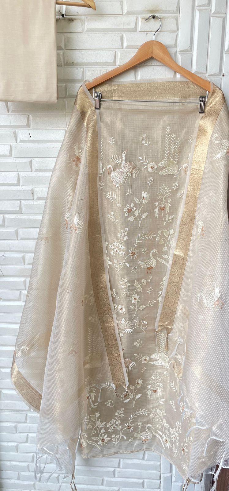 ☺️ shimmer kora silk fabric dupatta with zari sequence embroidery