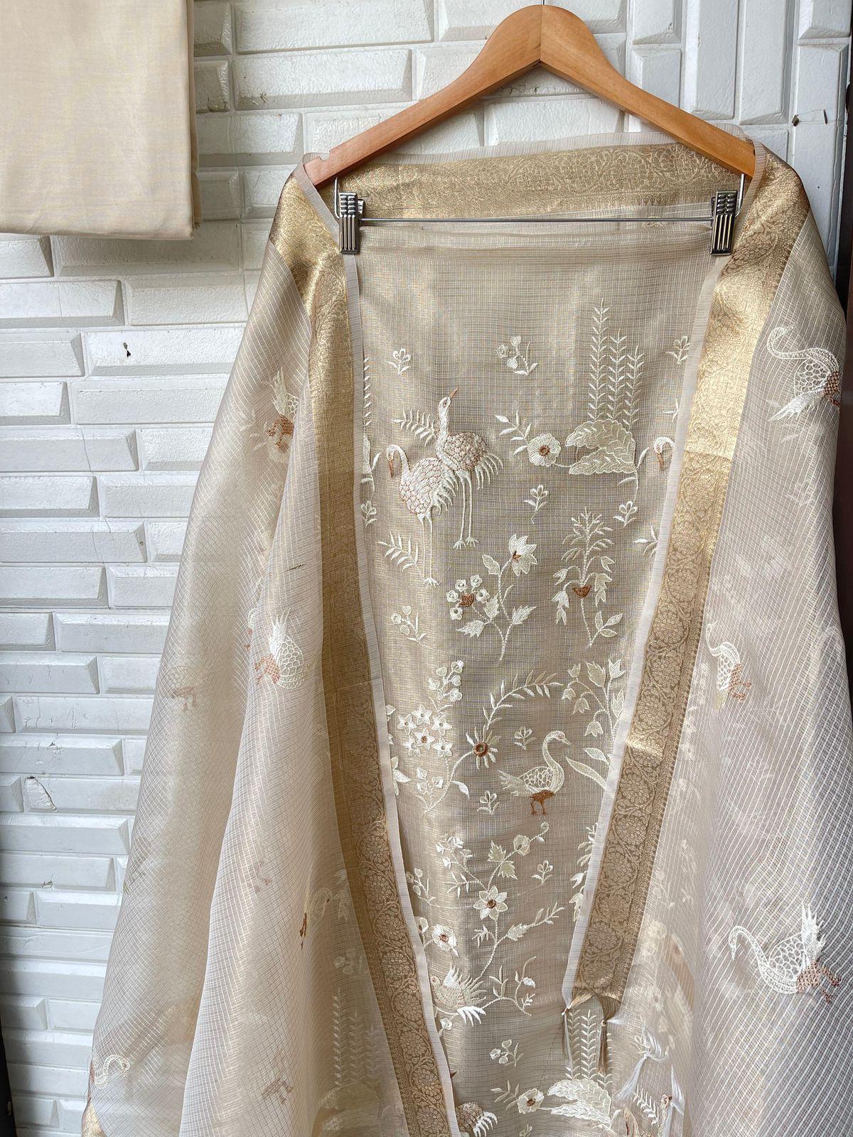 😊 shimmer kora silk fabric unstitched shirt with sequence zari embroidery