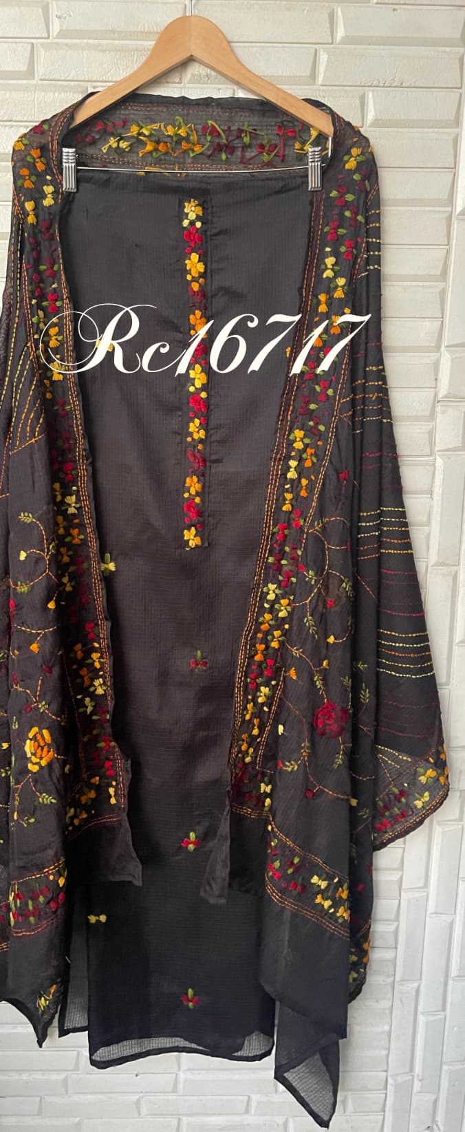 đ Kota cotton fabric unstitched shirt with resham knots embroideryÂ