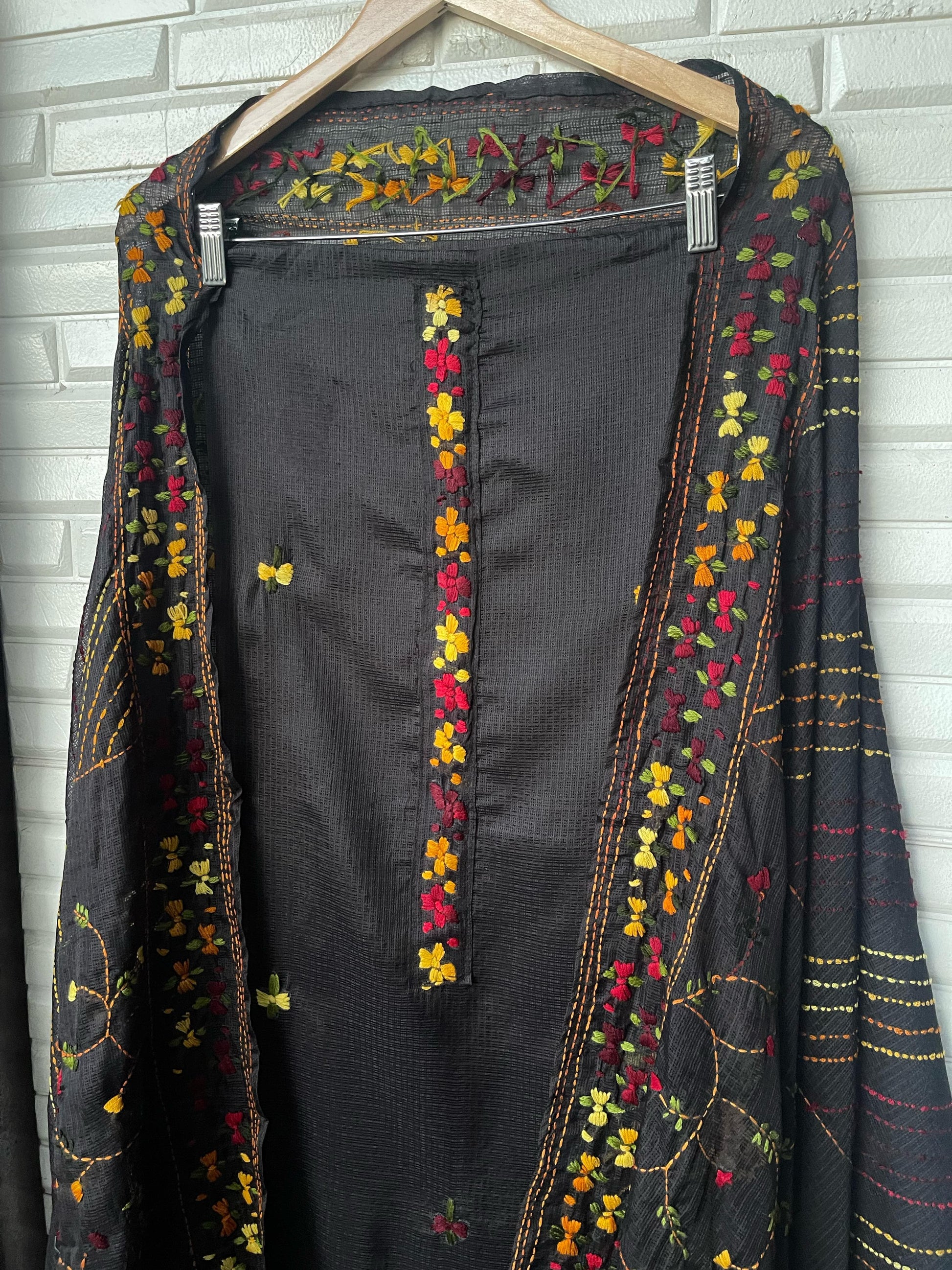 đ Kota cotton fabric dupatta with resham knots embroidery