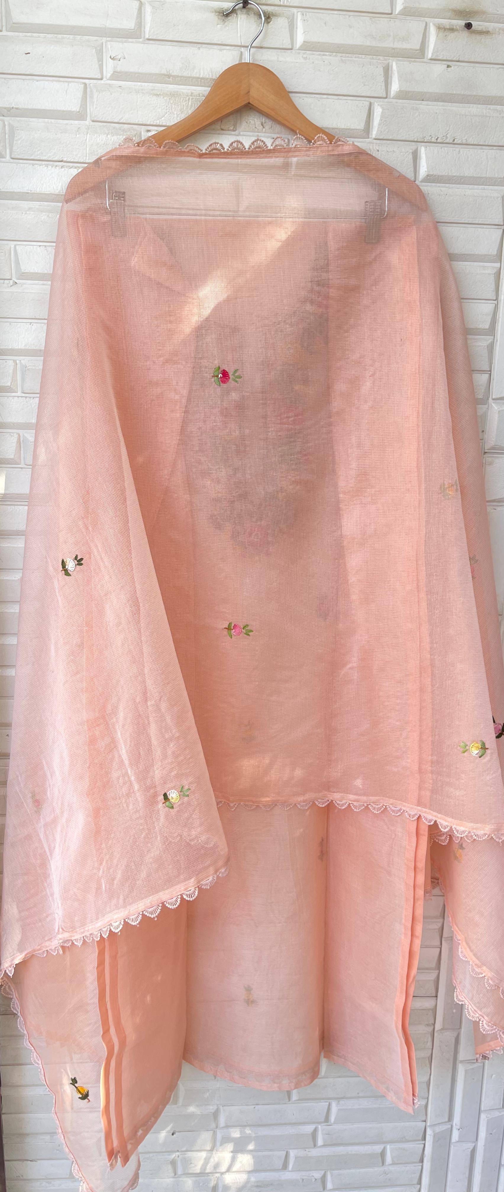 😊beautiful Kora cotton dupatta with laces and embroidery matching shirt