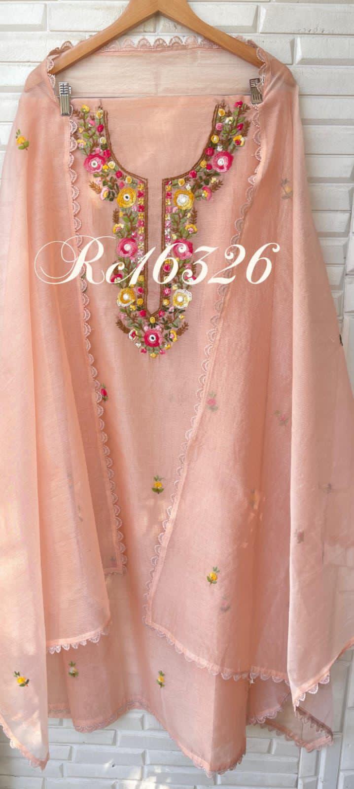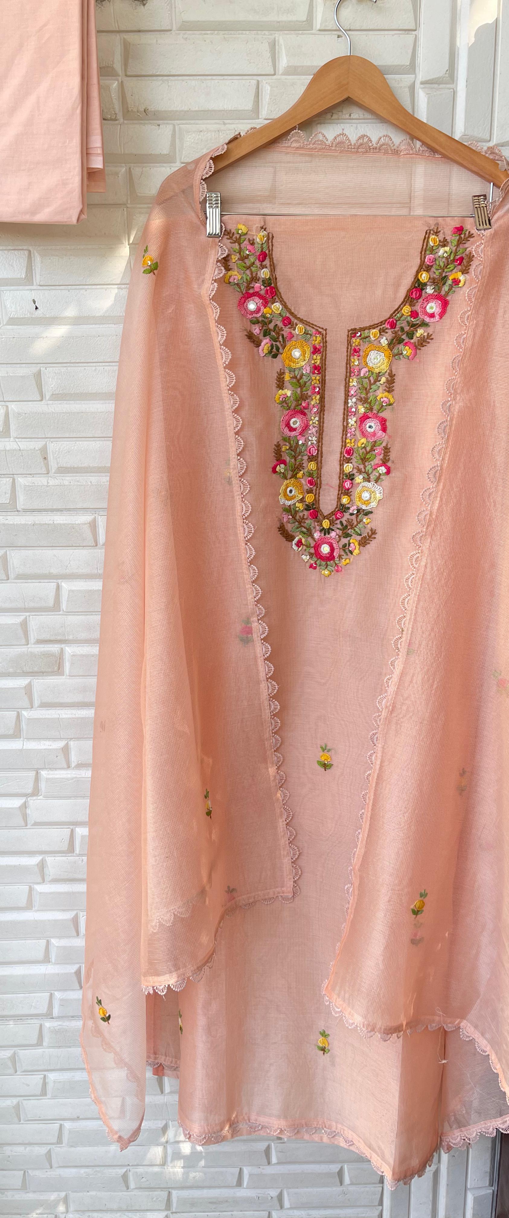 😊beautiful Kota cotton unstitched shirt with gorgeous Resham Kantha work