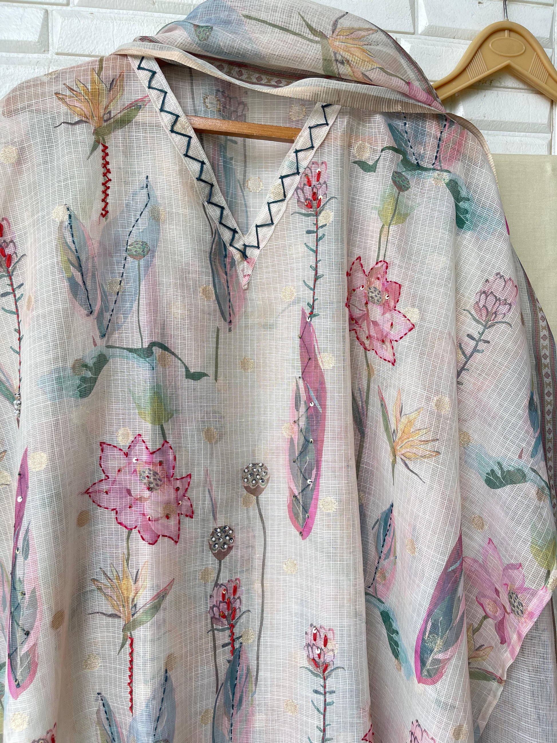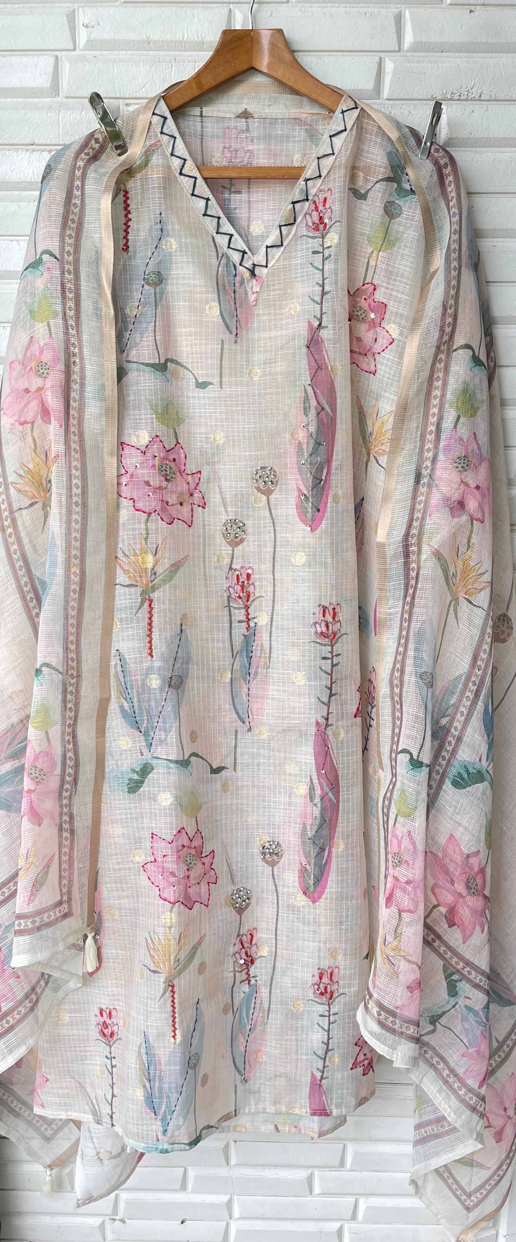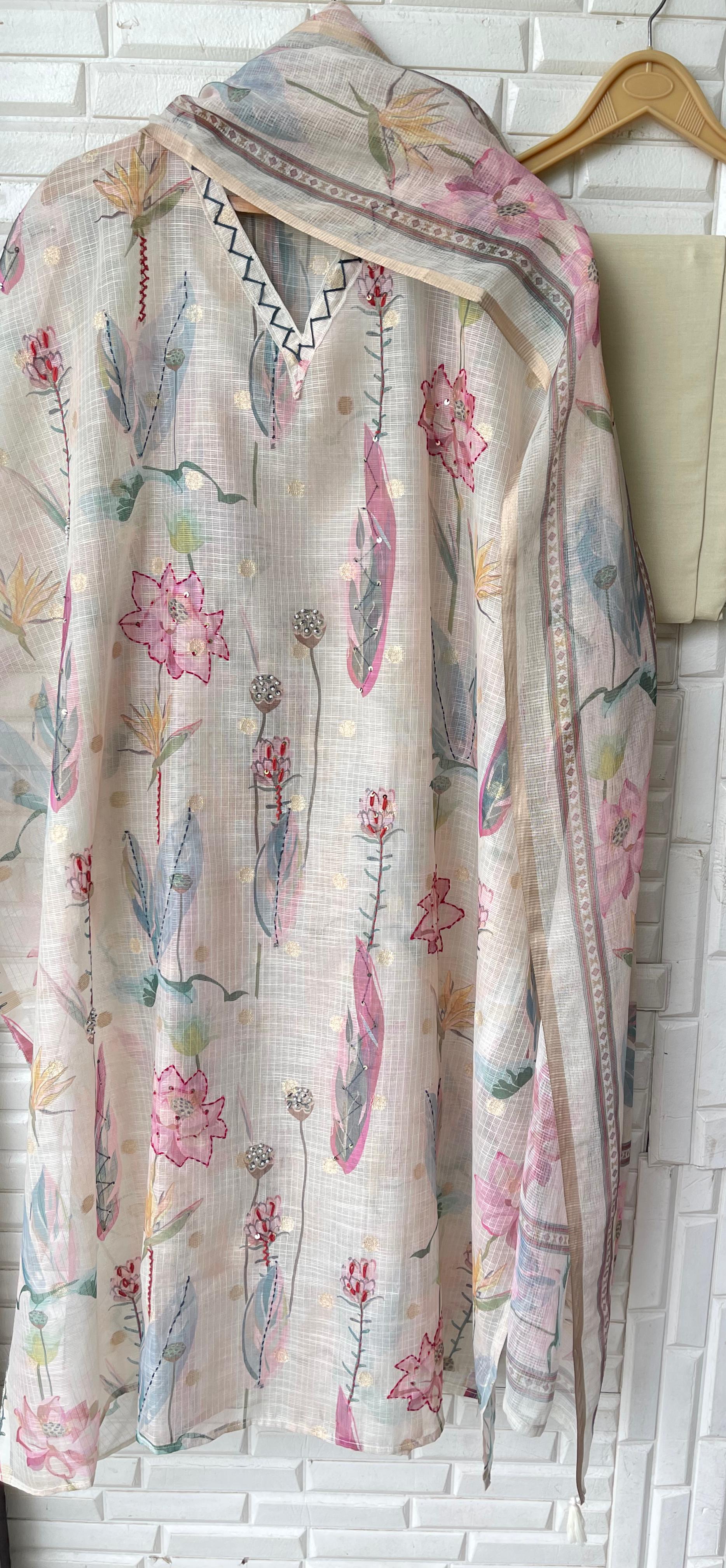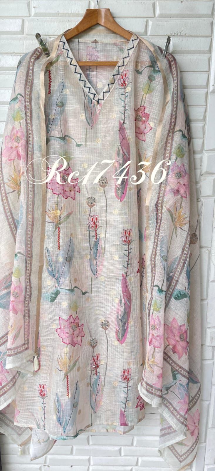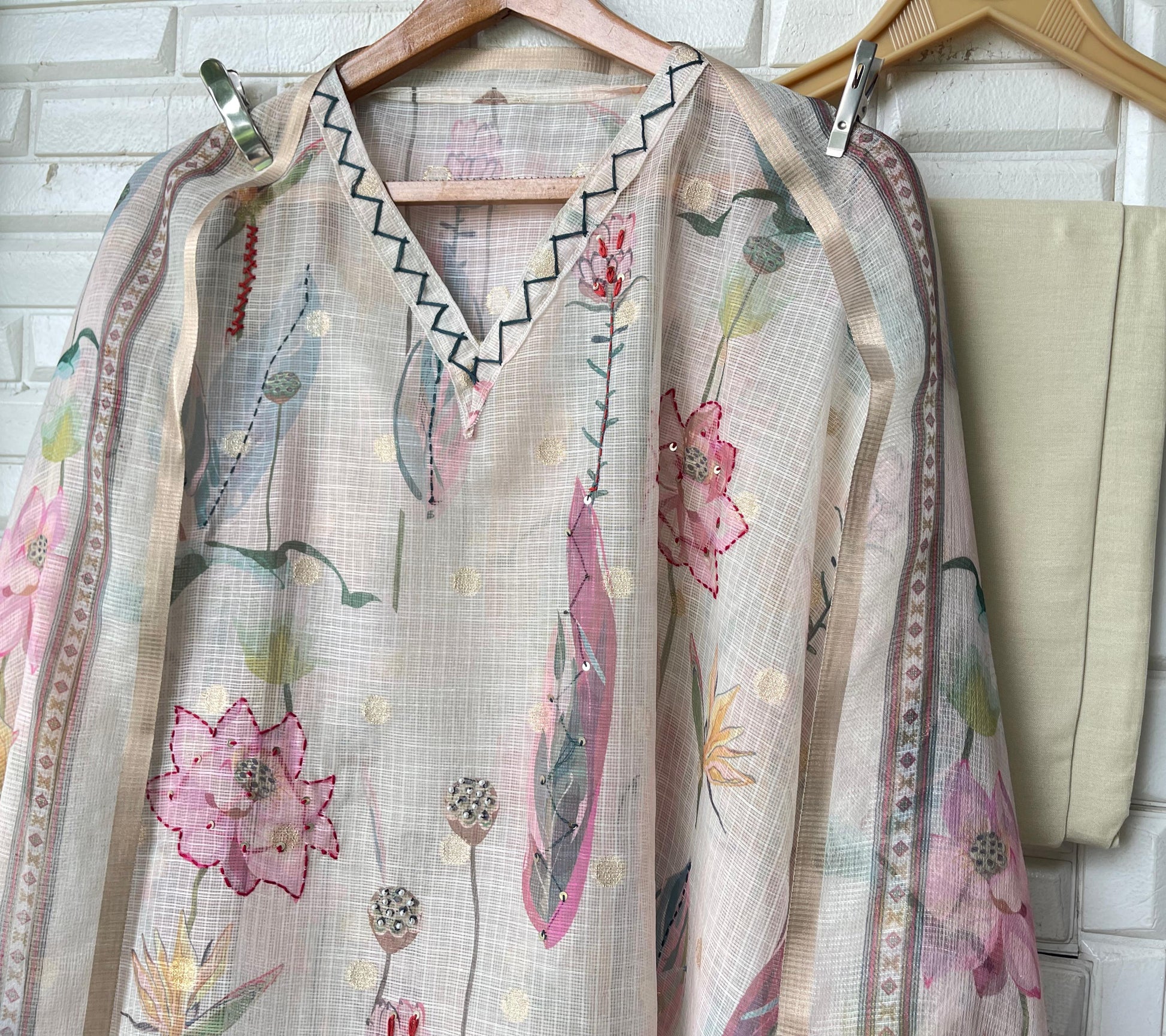 😊 soft banarasi kota doriya printed fabric unstitched shirt with resham knots embroidery