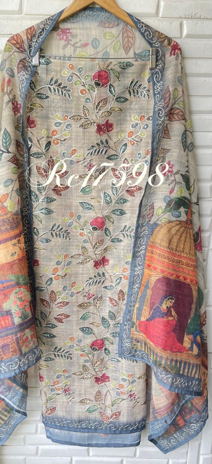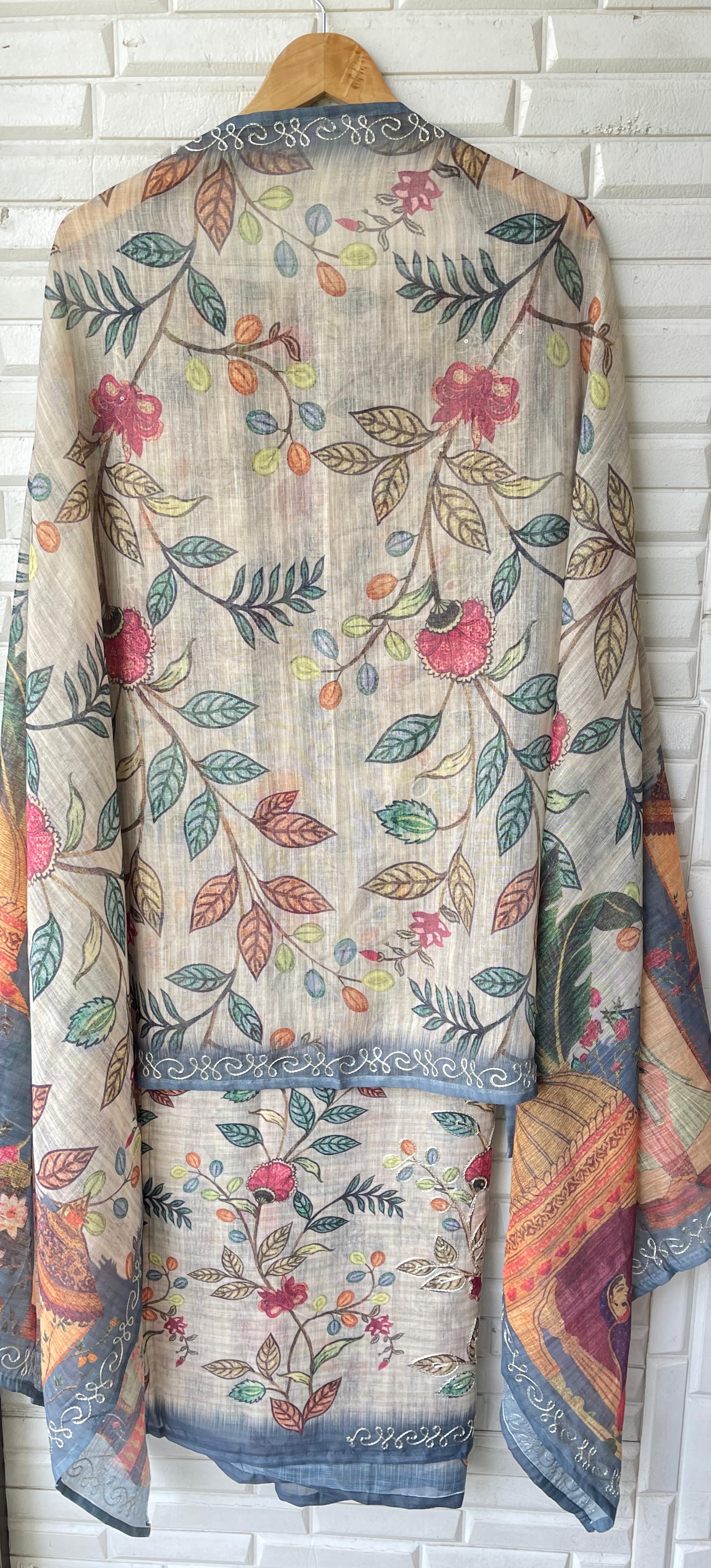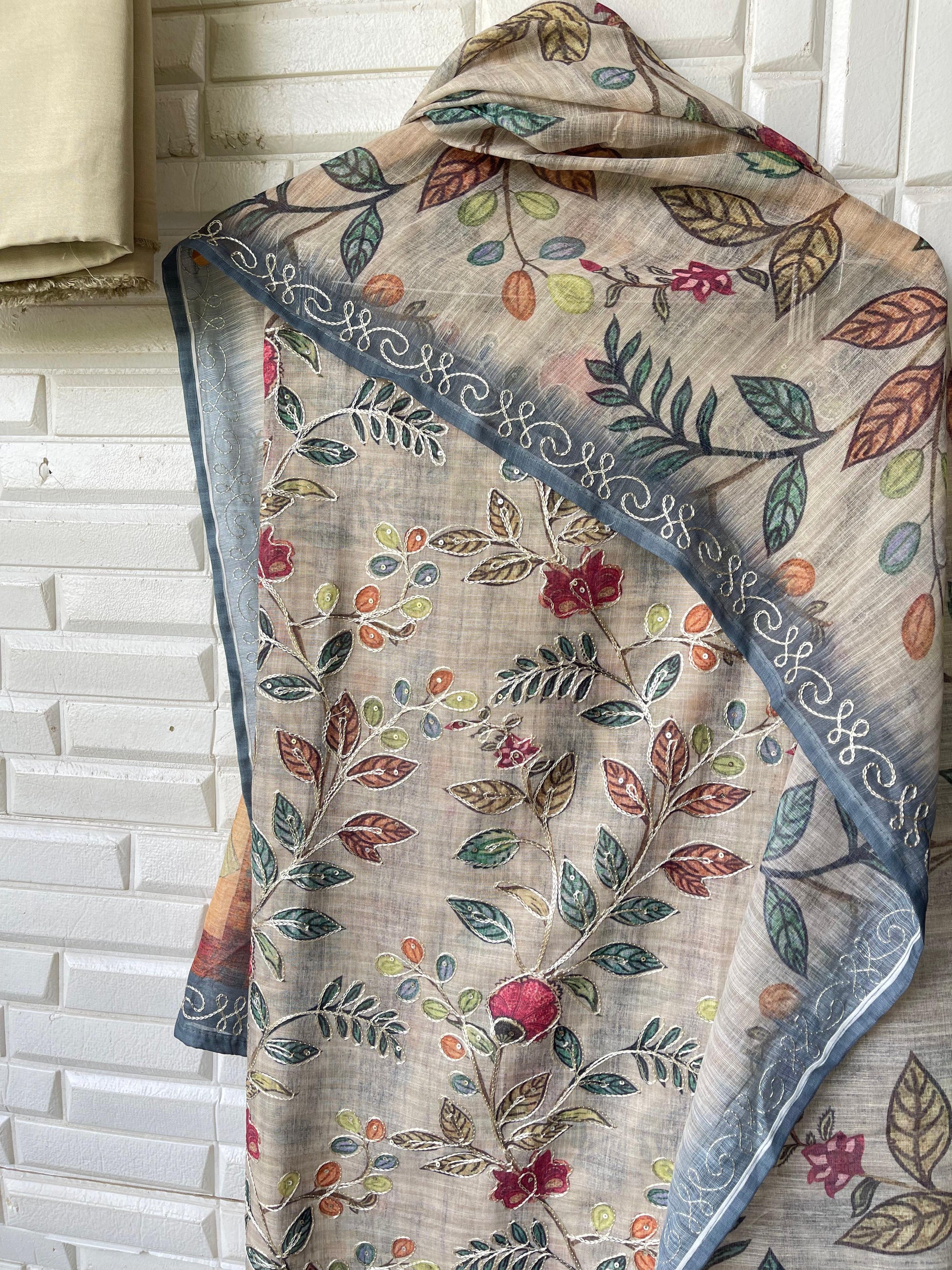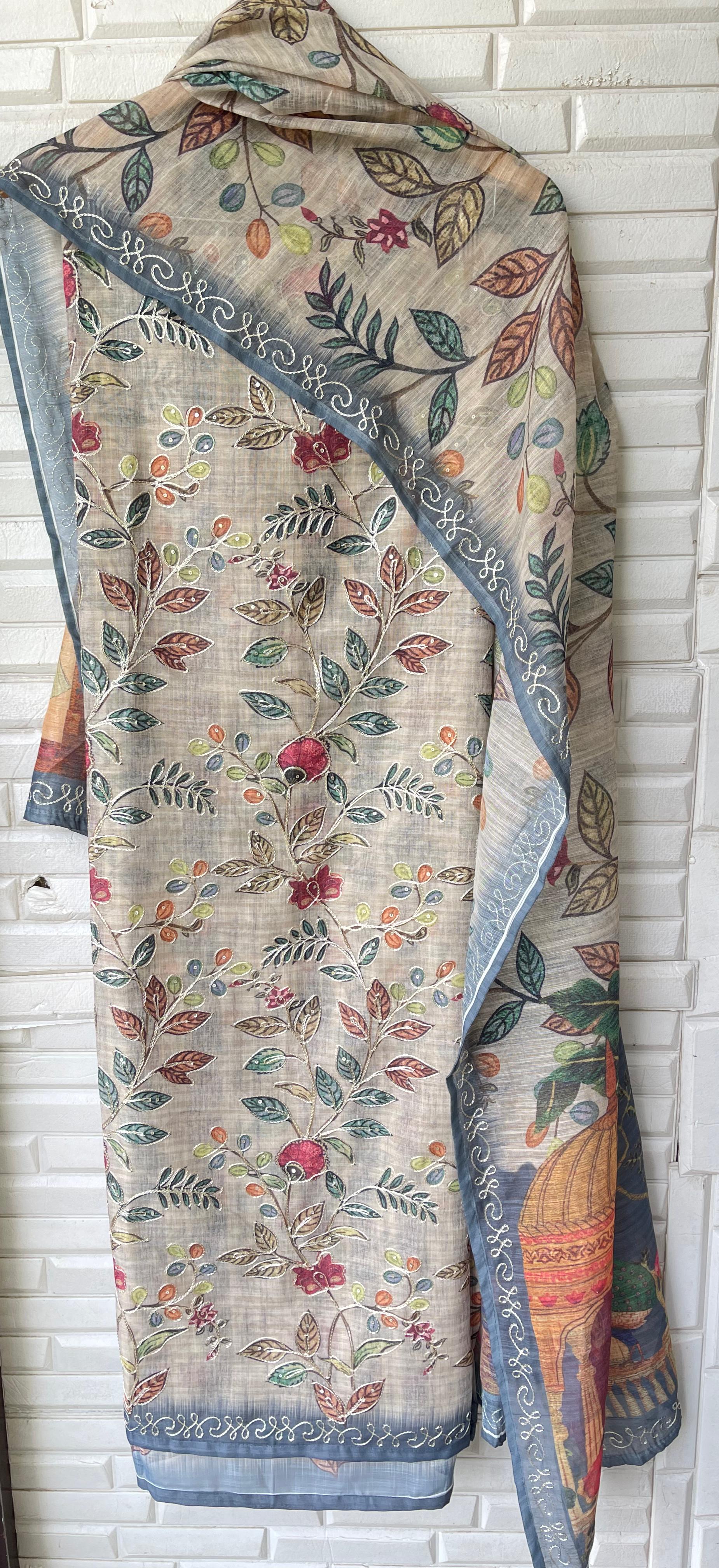 😊fully embroidered with reshm stunning linen Kota printed unstitched shirt