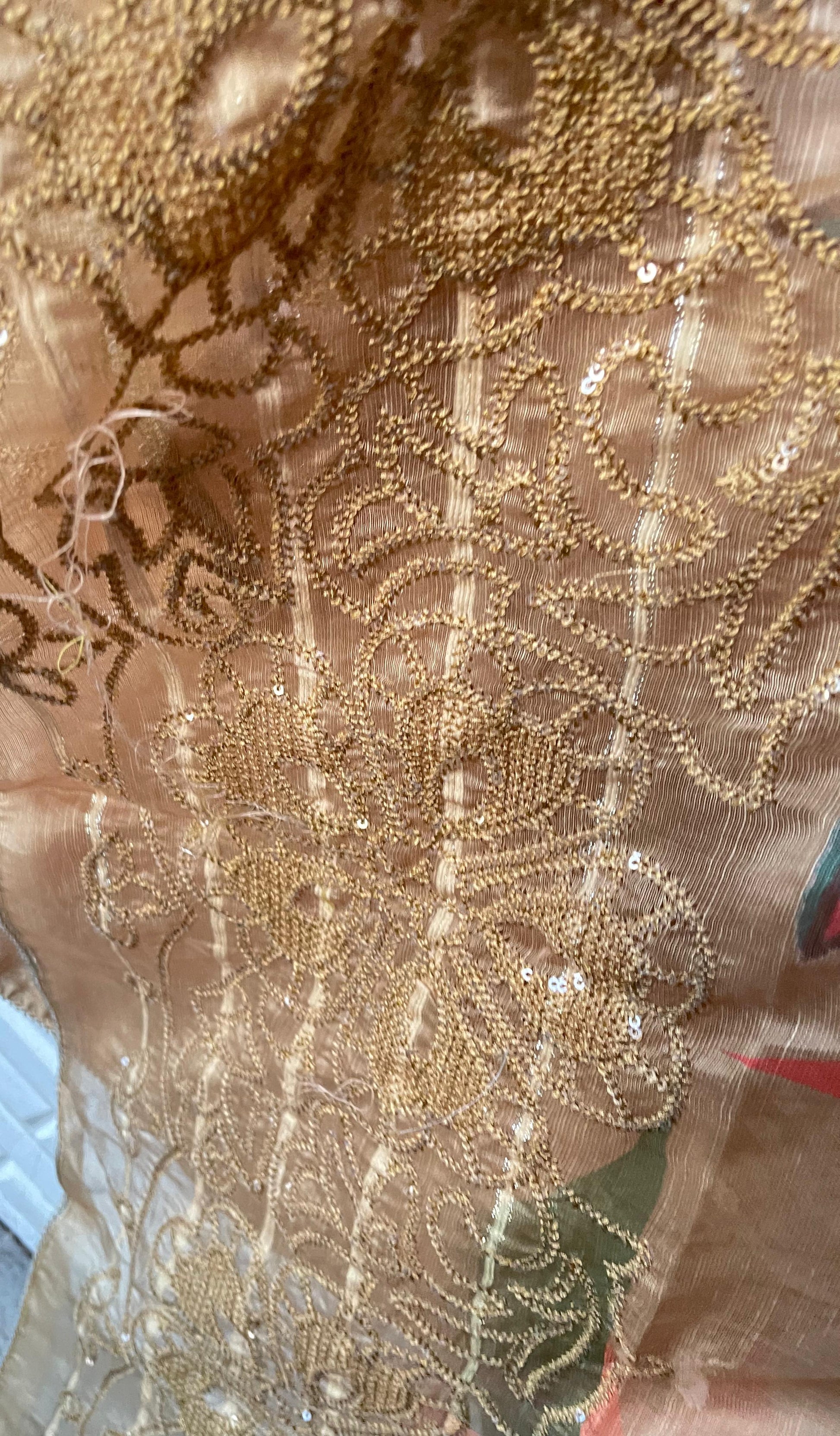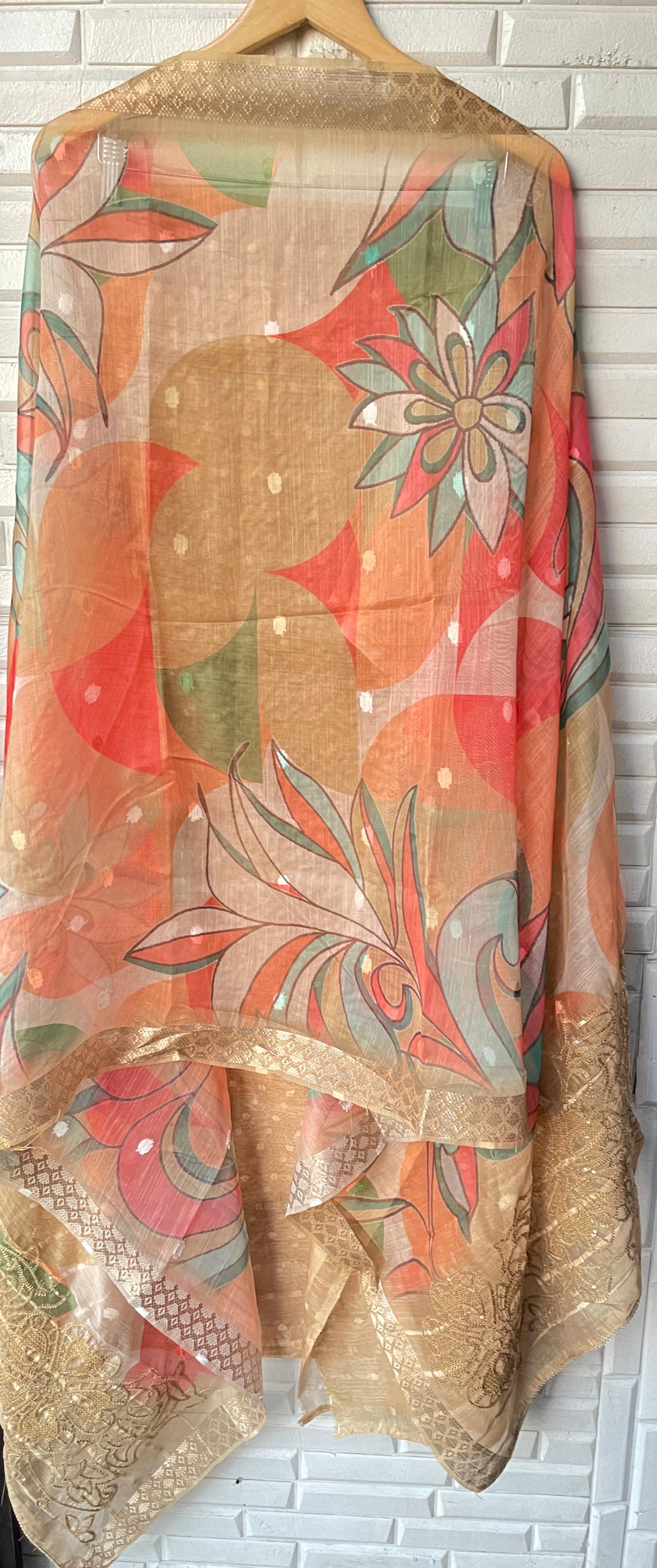 😊 banarasi soft chanderi printed fabric dupatta with resham sequence embroidery on Pallas