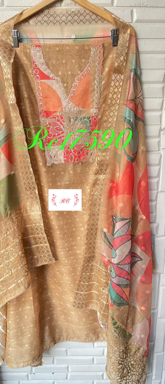 Linen chanderi unstitched ladies suit Rc17590 (a)
