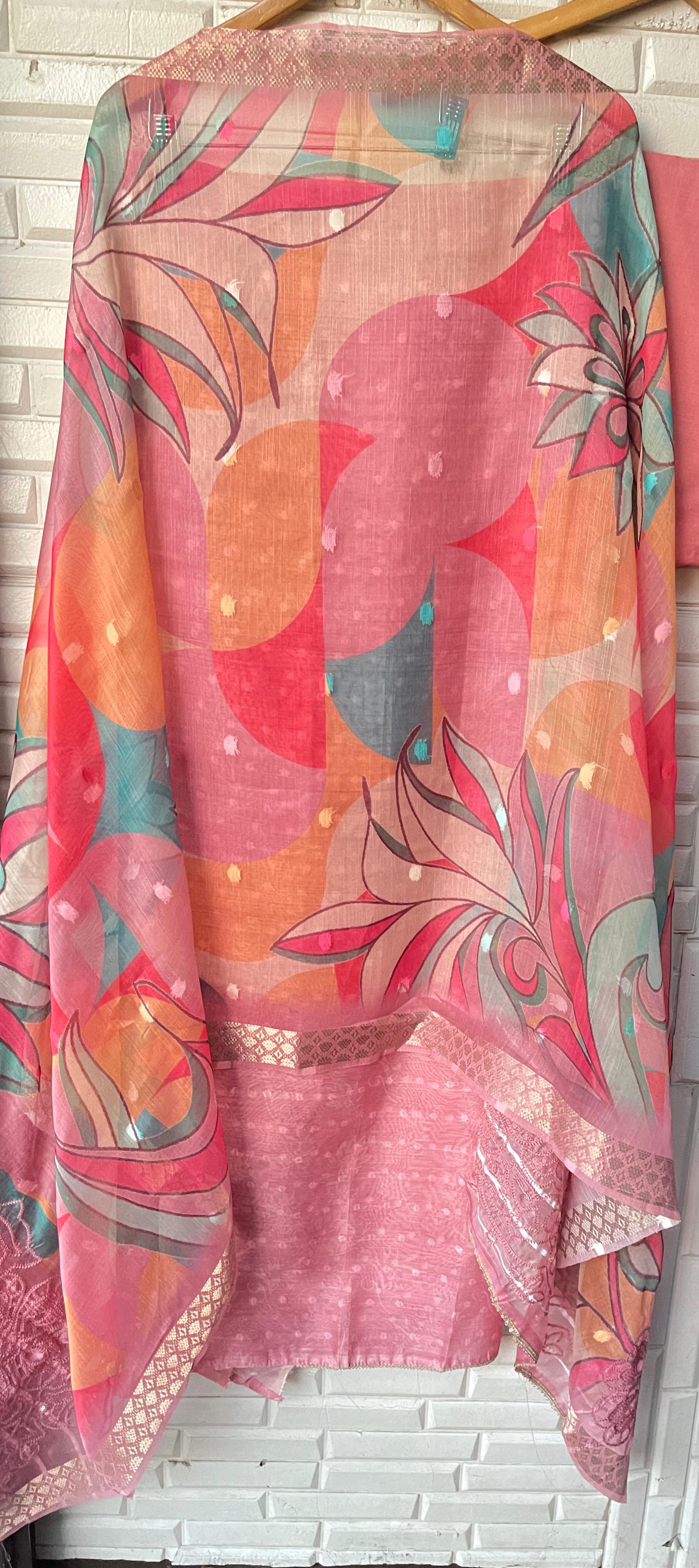 😊 banarasi soft chanderi printed fabric dupatta with resham sequence embroidery on Pallas