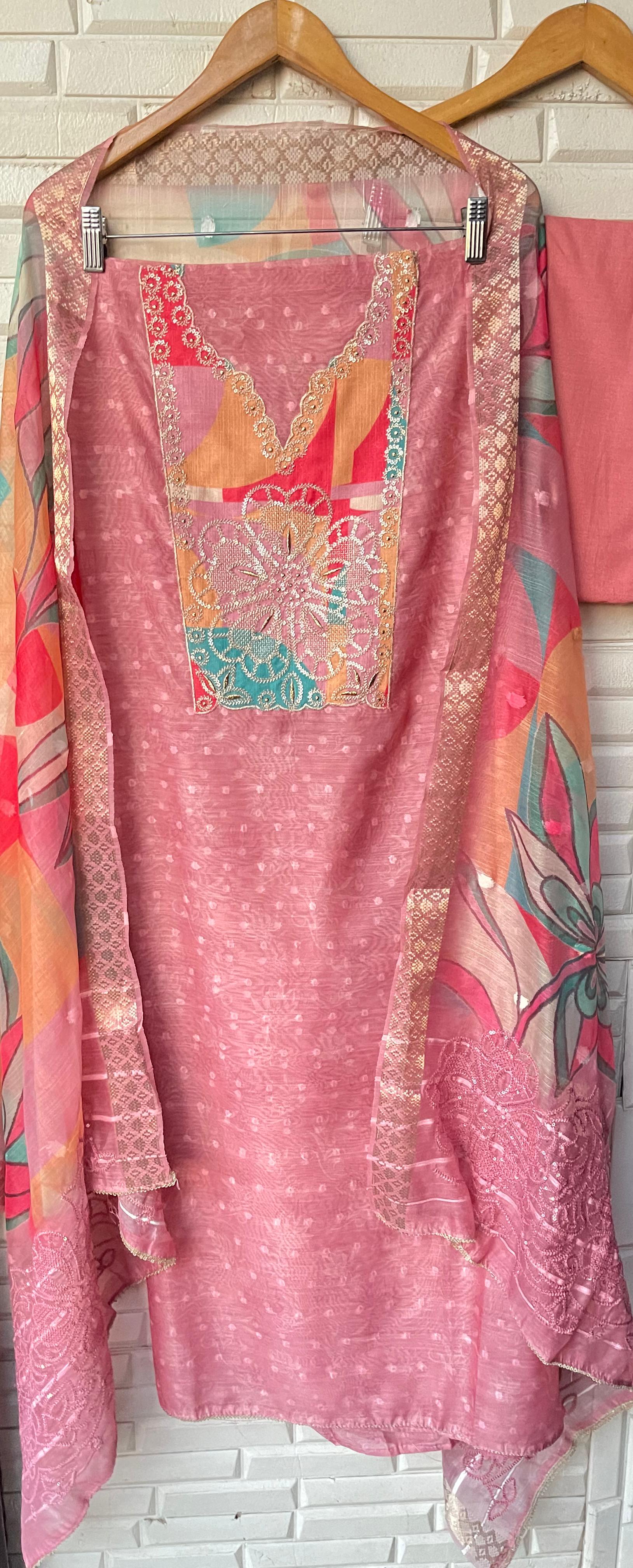 Linen chanderi unstitched ladies suit Rc17590 (c)