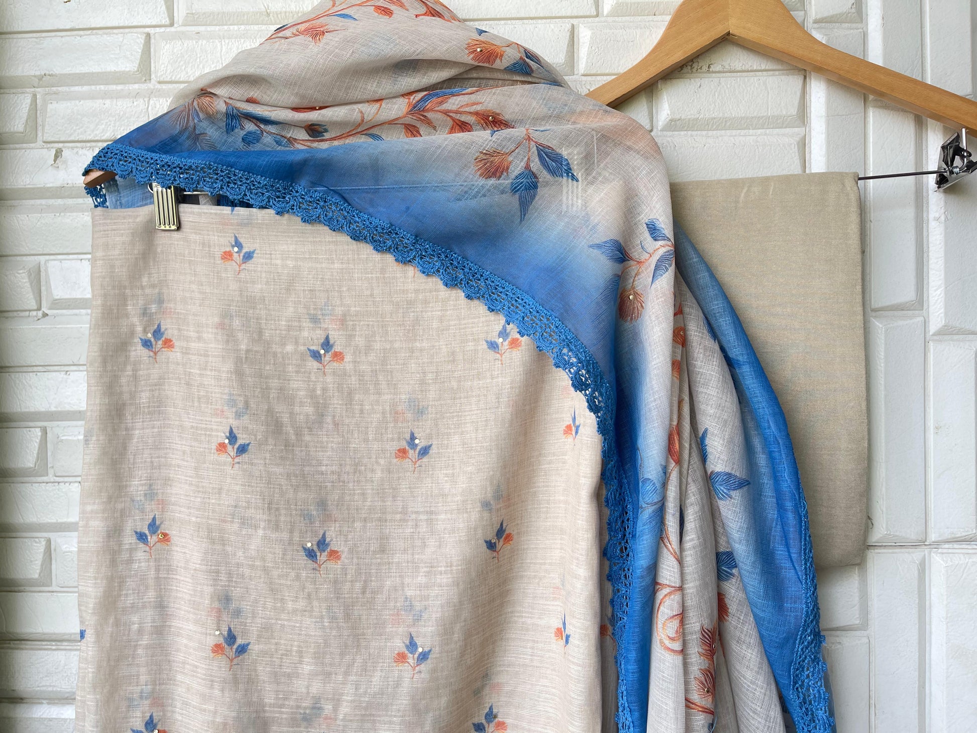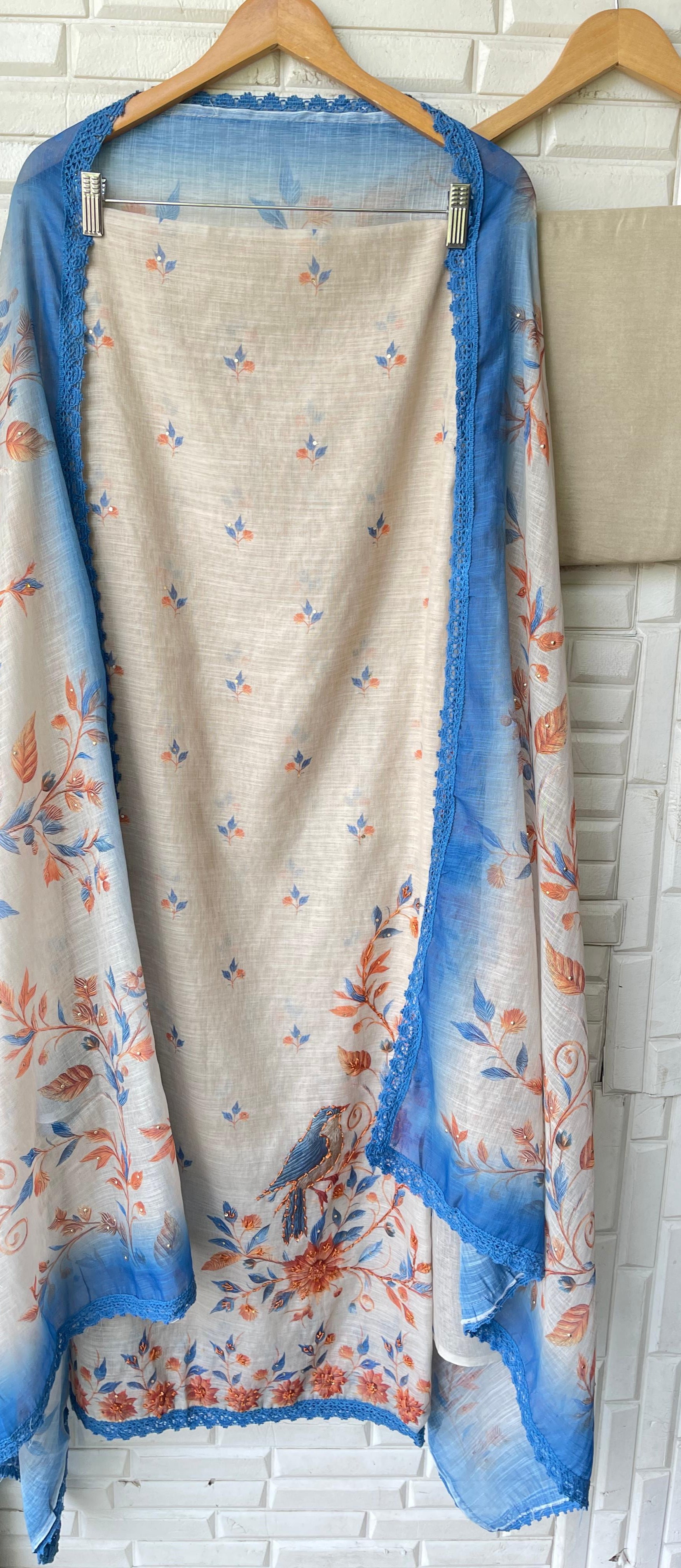 😊 soft linen cotton printed fabric dupatta with crotia border lace