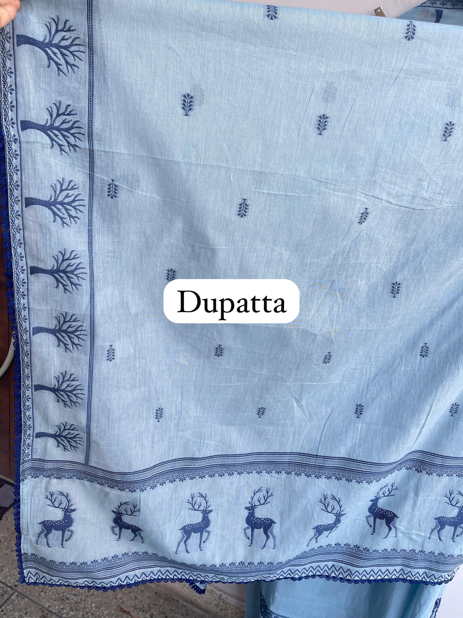 ๐ soft linen weaved fabric dupatta with crotia border lace