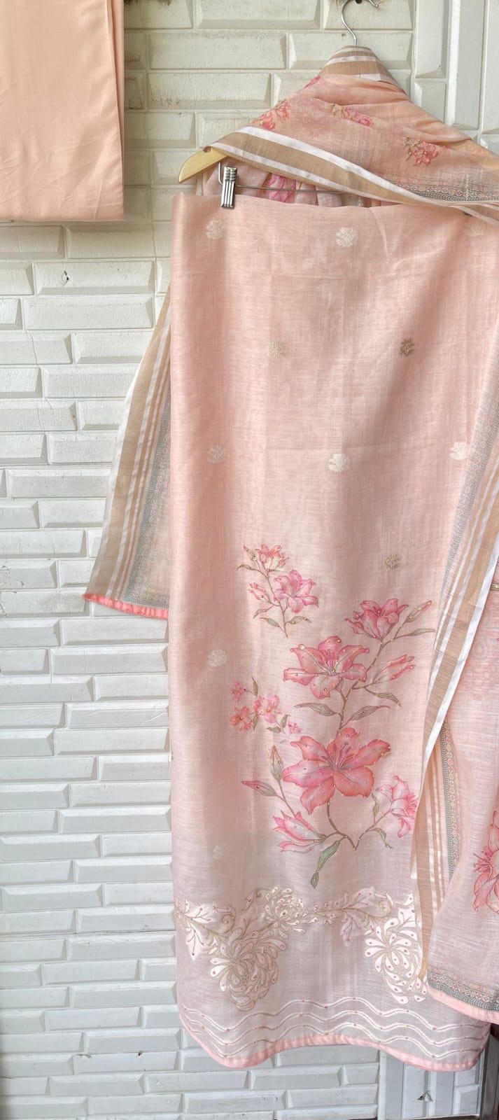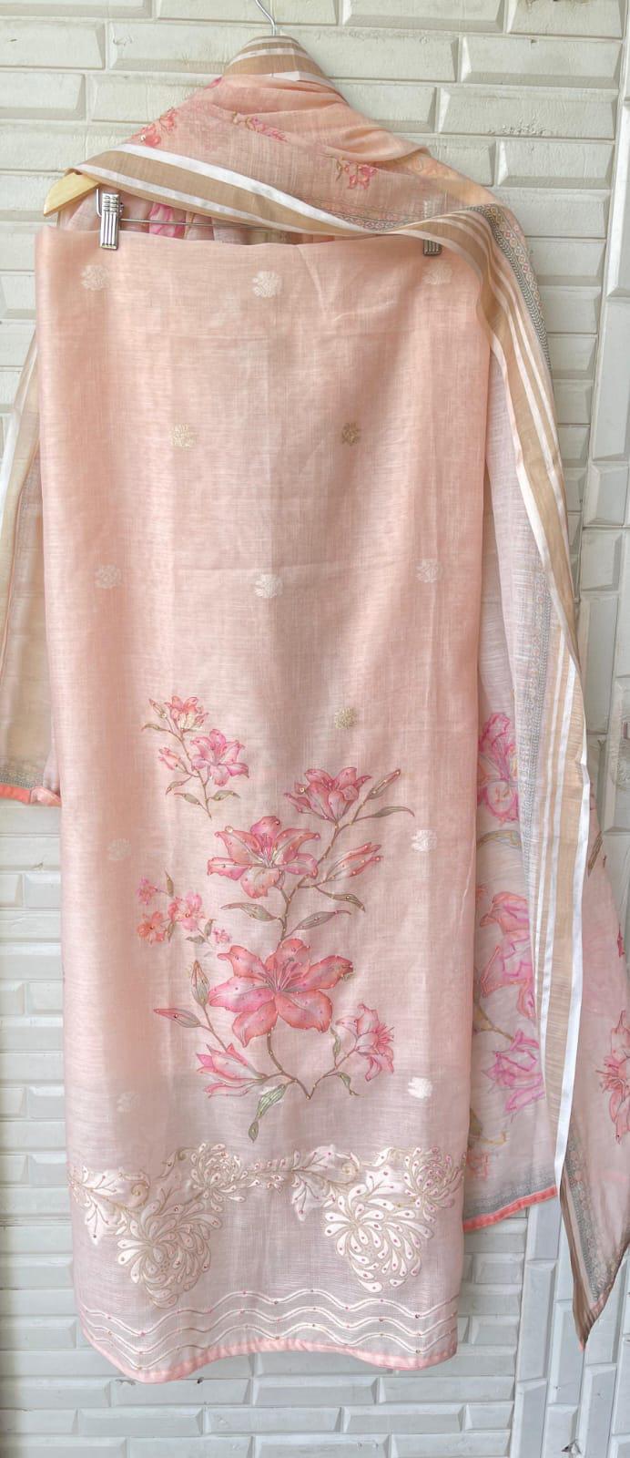 π linen self Kora cotton printed fabric dupatta with sequence beads embroidery