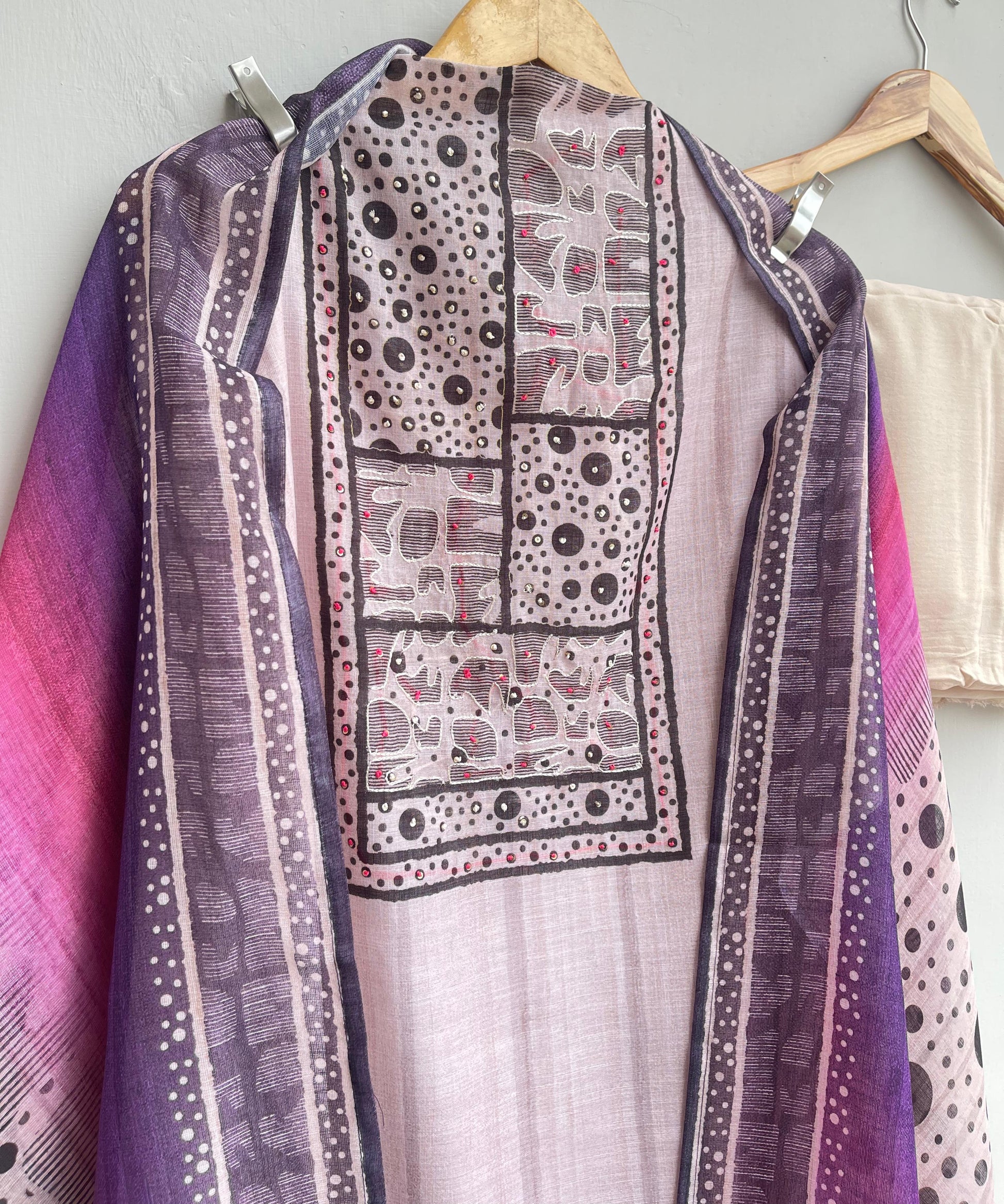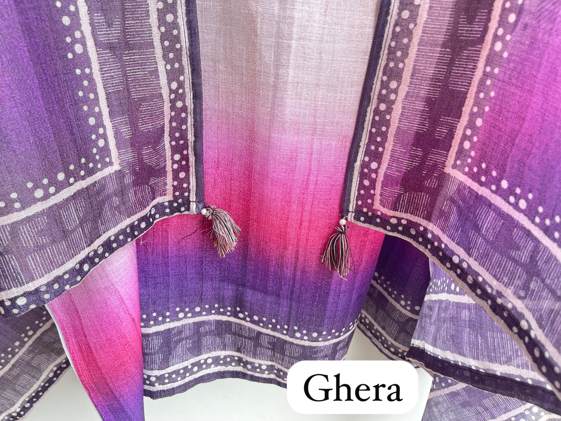π linen print shaded fabric unstitched shirt with beads sequence embroidery