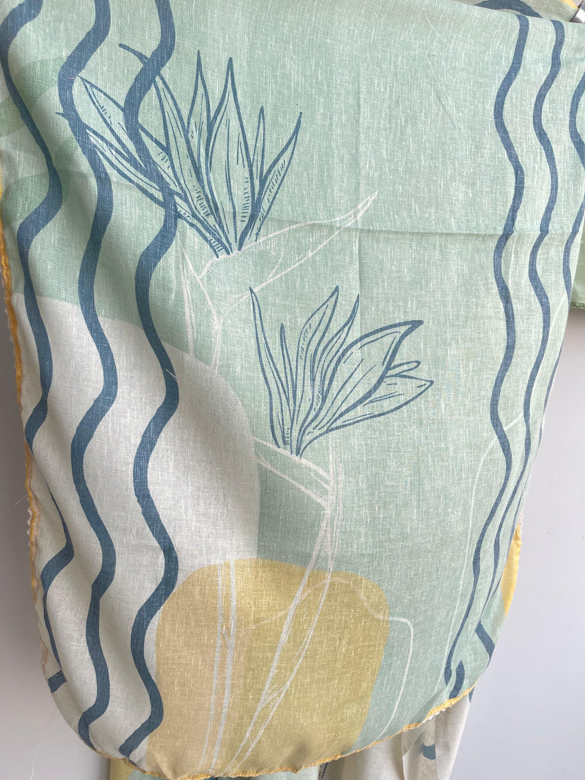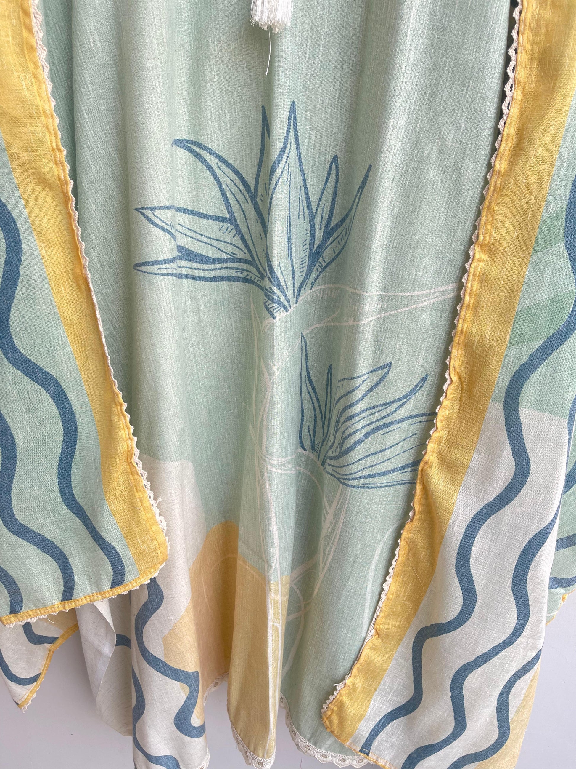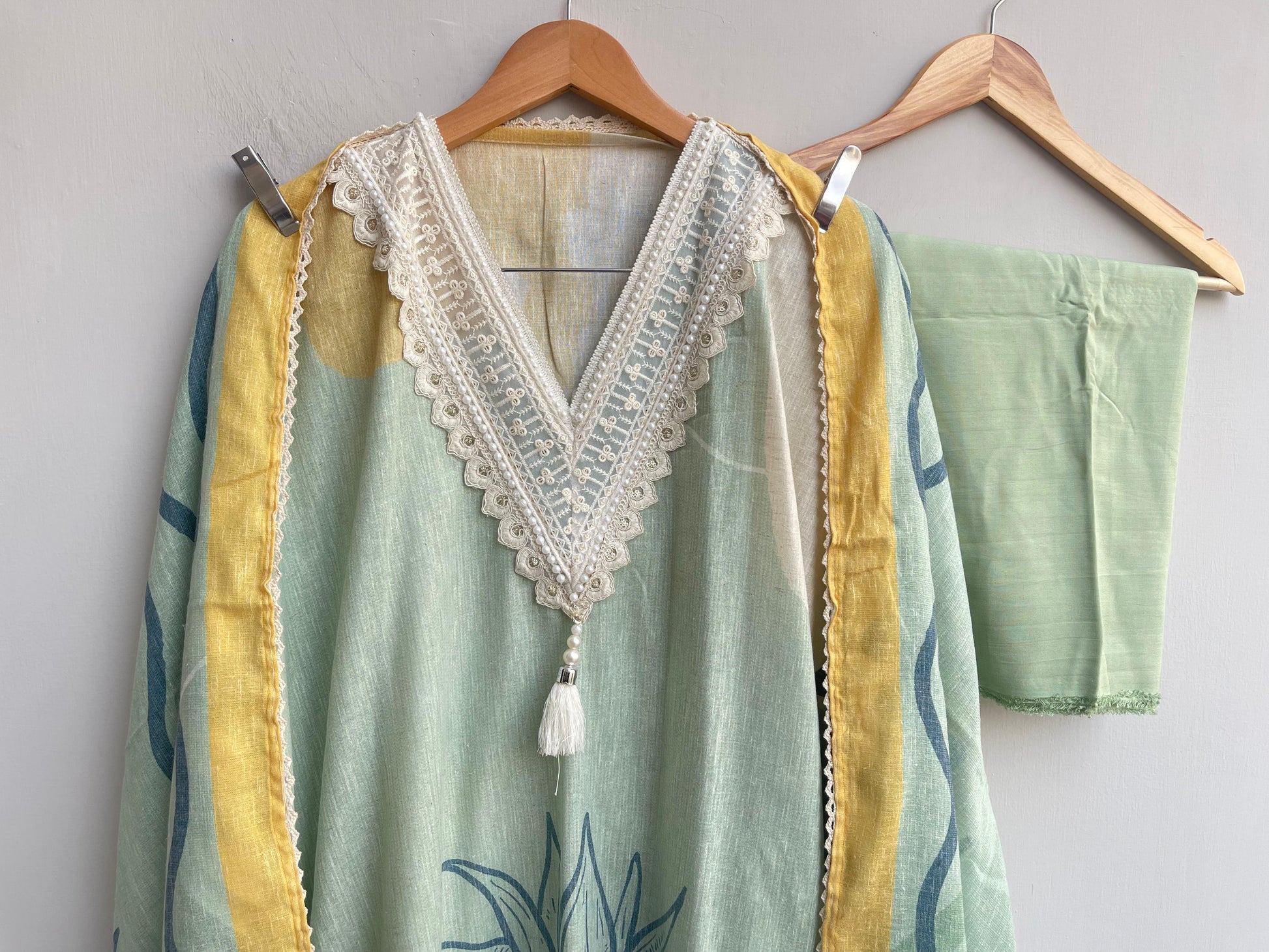 😊beautiful printed linen shirt with Crotia lace pearl and sequins embroidery