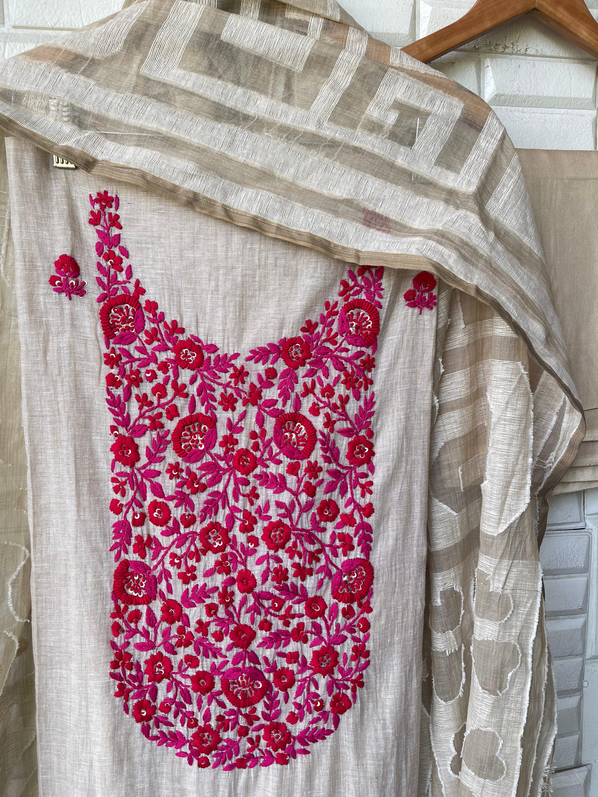 😊linen silk unstitched shirt with beautiful reshma sequins embroidery