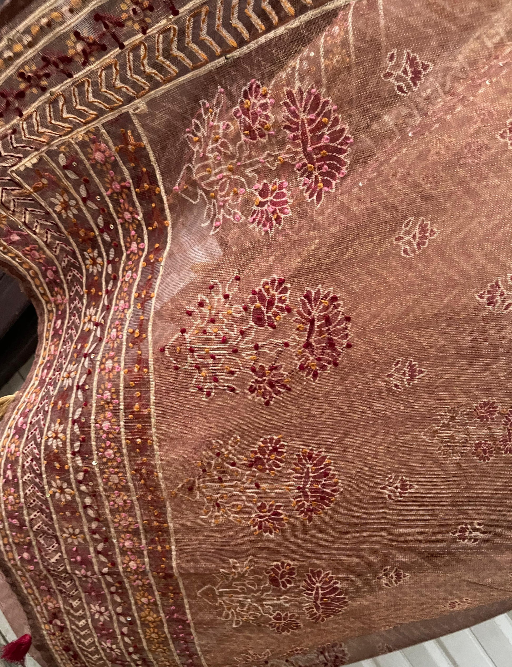 π linen silk printed fabric dupatta fabric with resham weaving knots embroidery and sequence highlighting