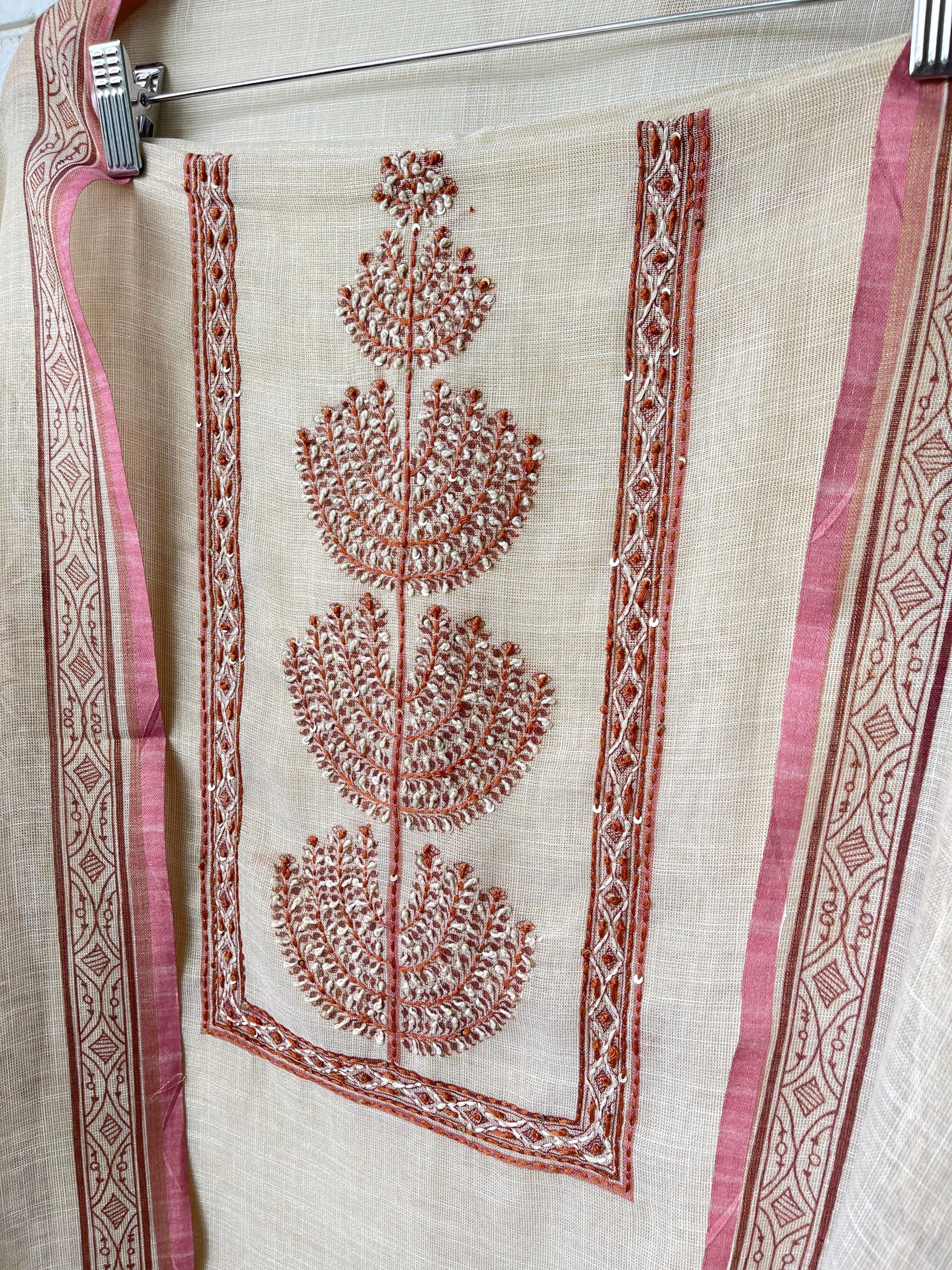 ๐ shimmer linen printed fabric unstitched shirt with sequence resham knots embroidery