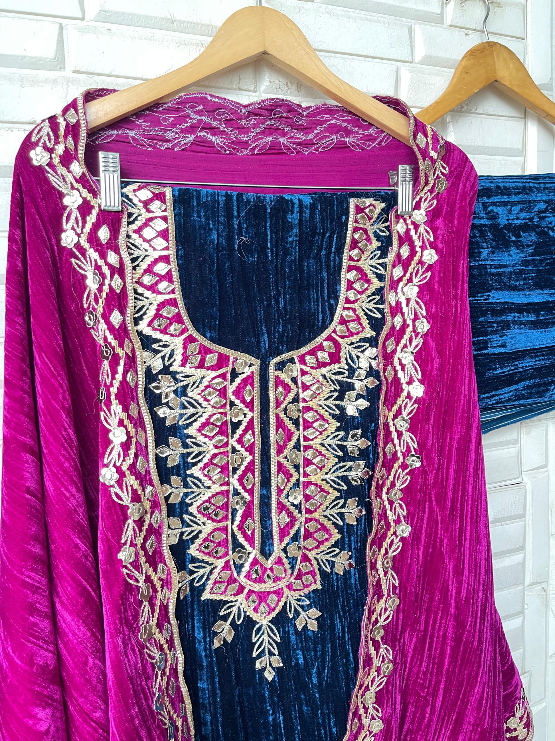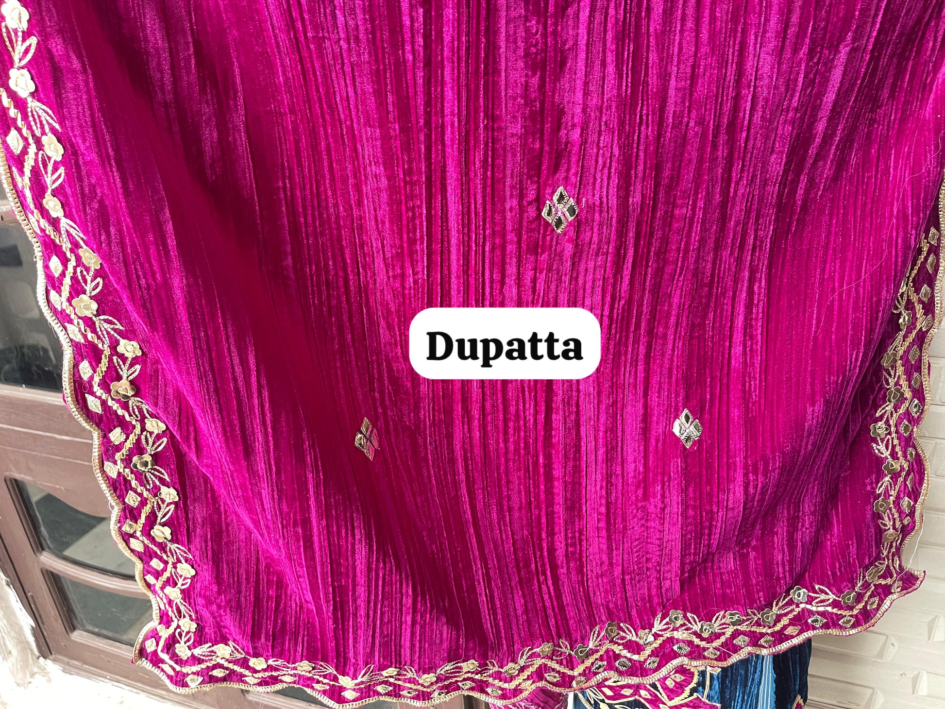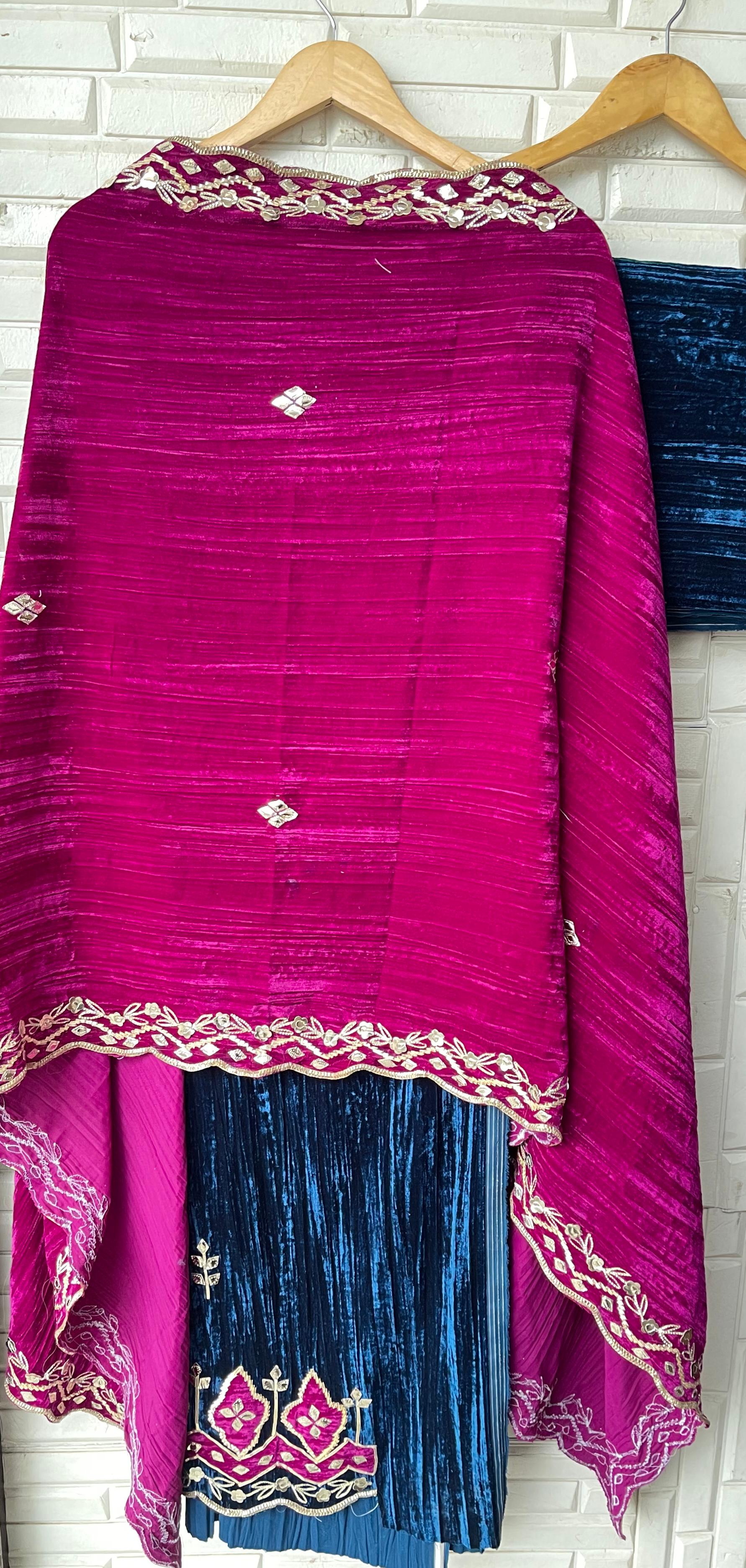 😊 crushed micra velvet fabric dupatta with gotta leather patchwork embroidery and scalping