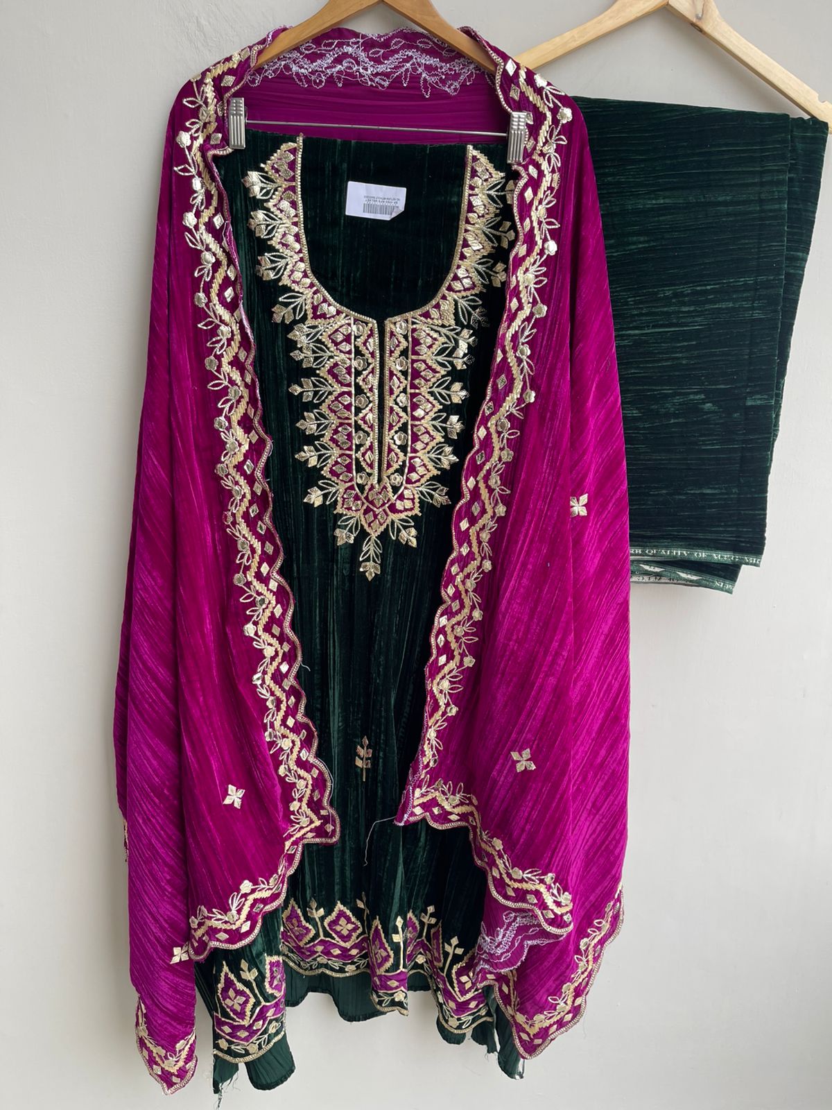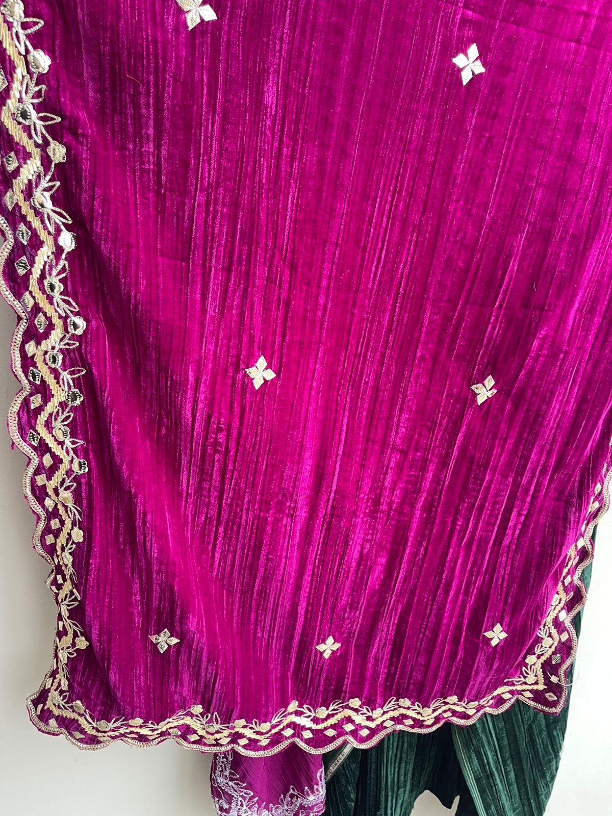 😊 crushed micra velvet fabric dupatta with gotta leather patchwork embroidery and scalping