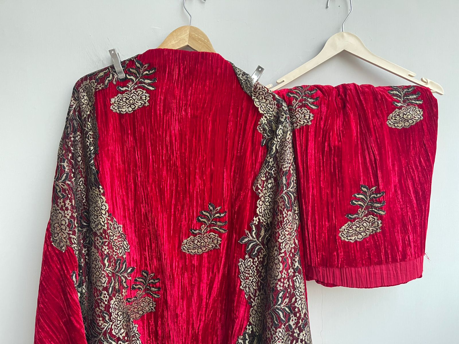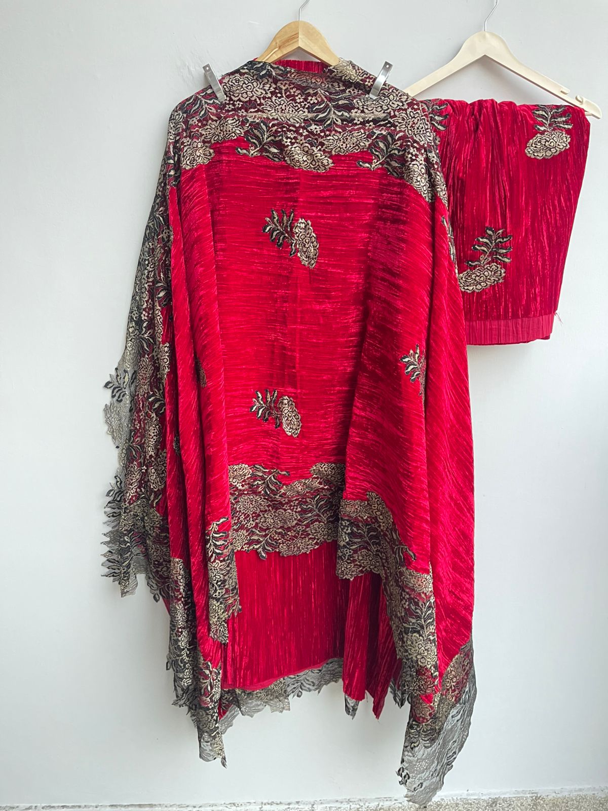 😊 crushed micra velvet unstitched fabric lowers with chandelier lace patchwork