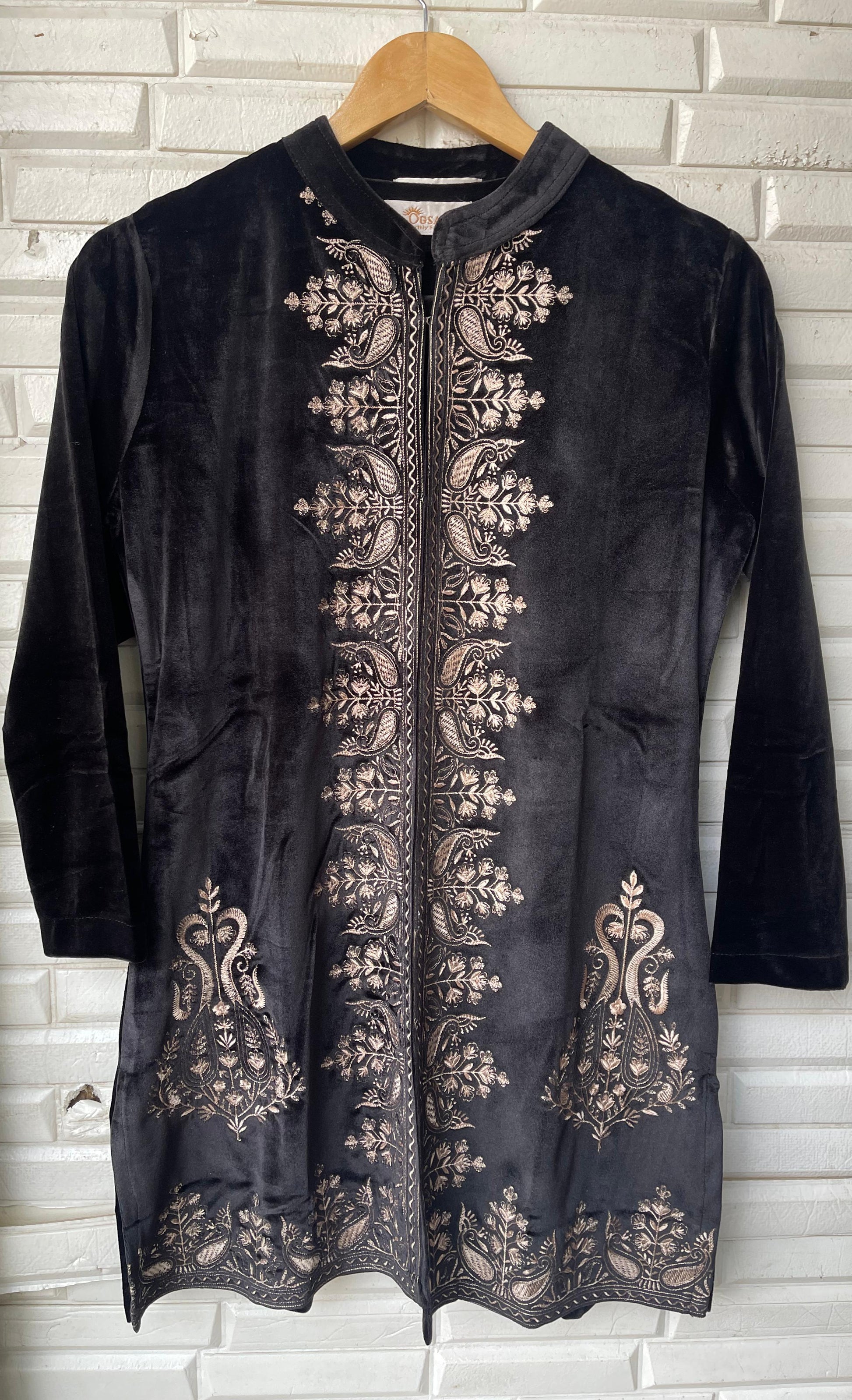 😊most stunning velvet fabric embroidered winter stylish coat style top
