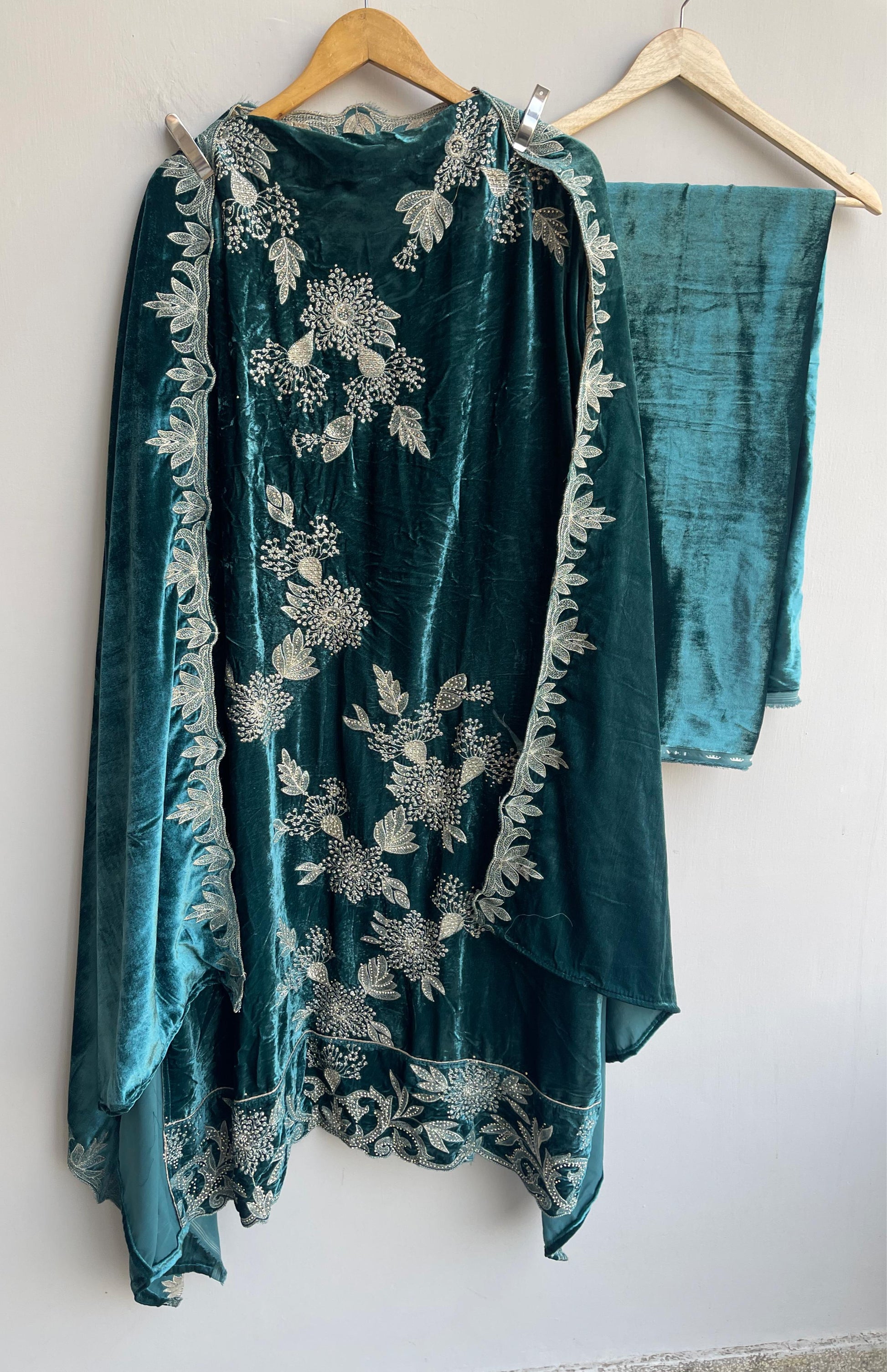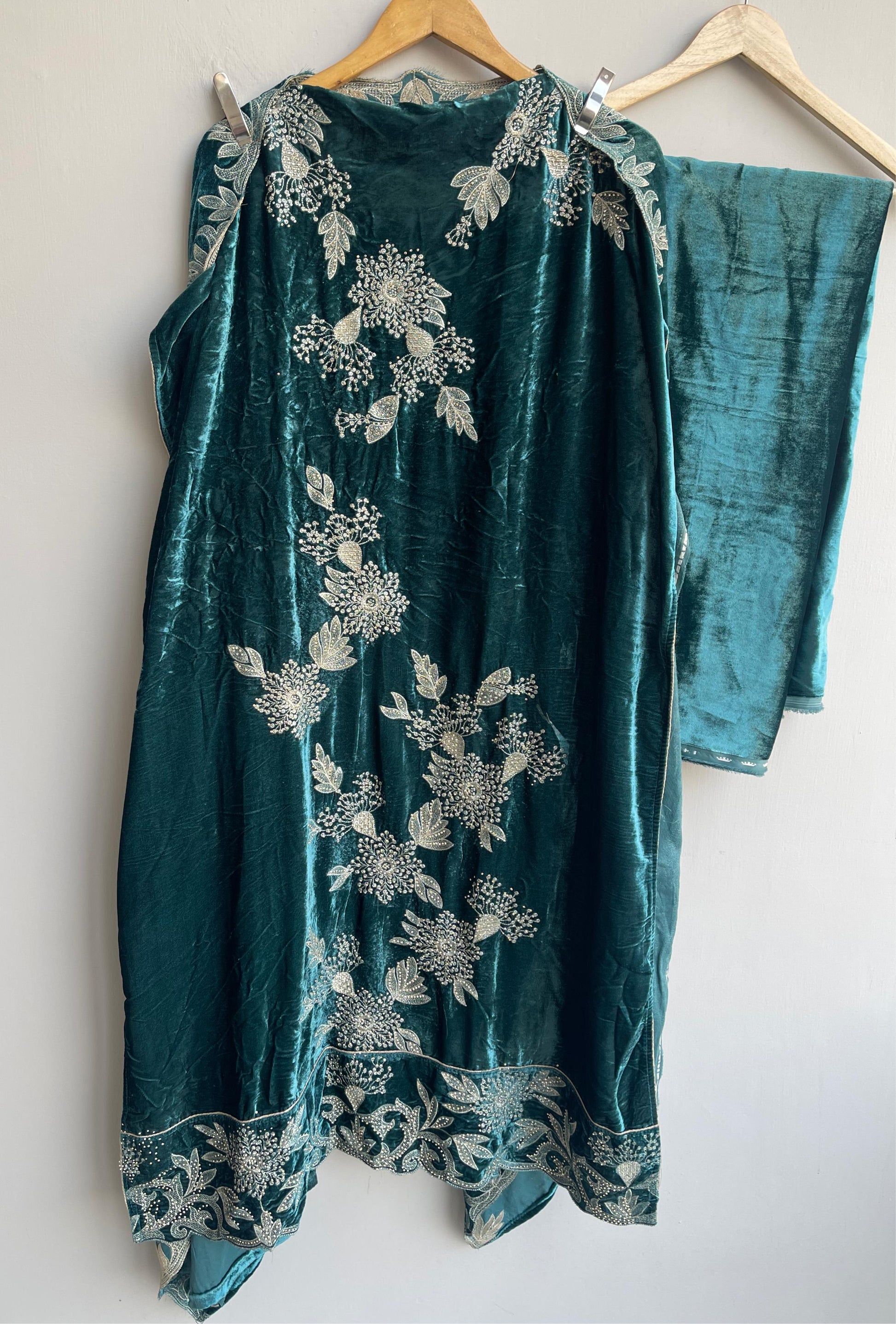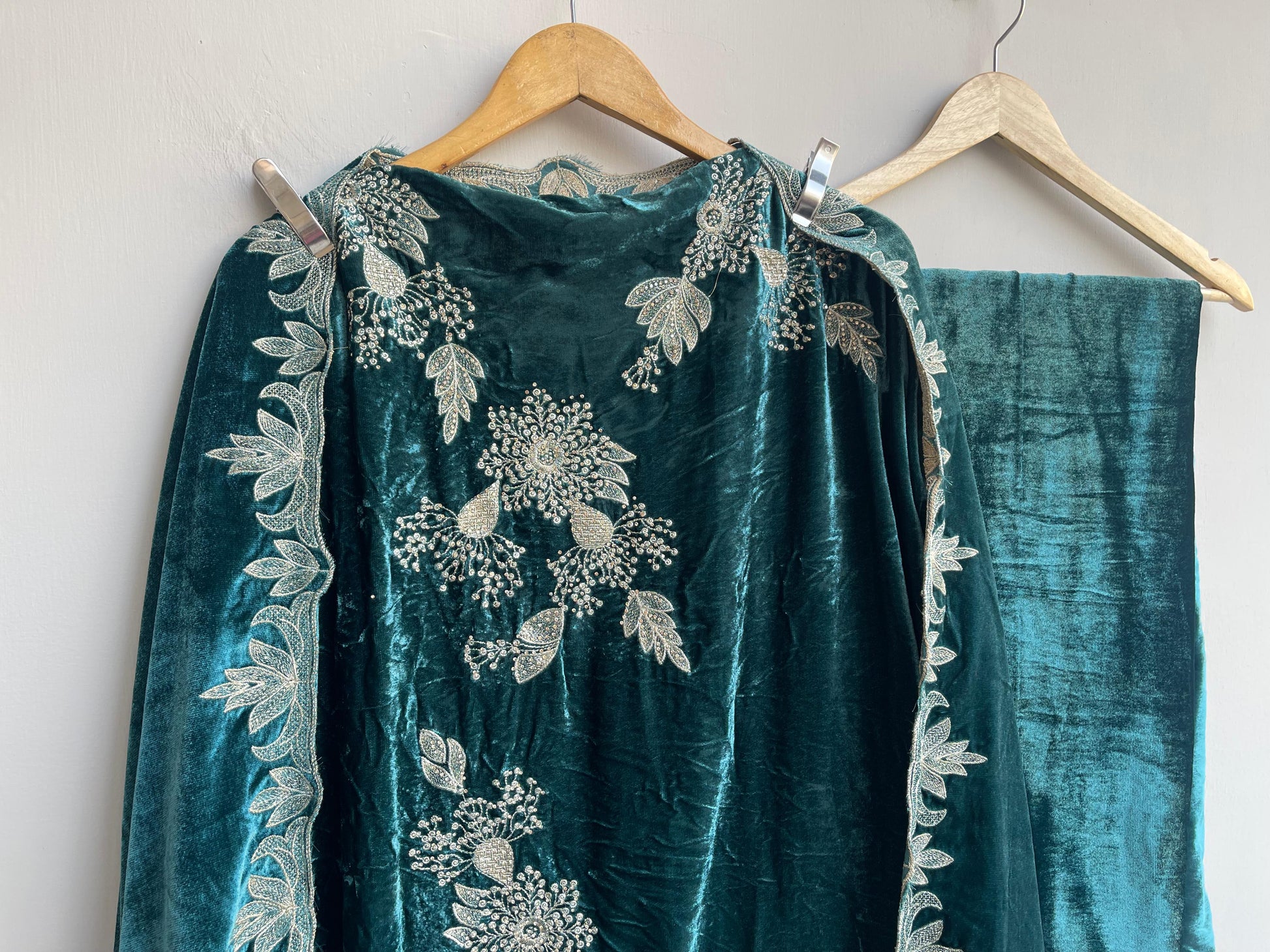 😊 micra velvet fabric unstitched shirt with zari swarowski embroidery