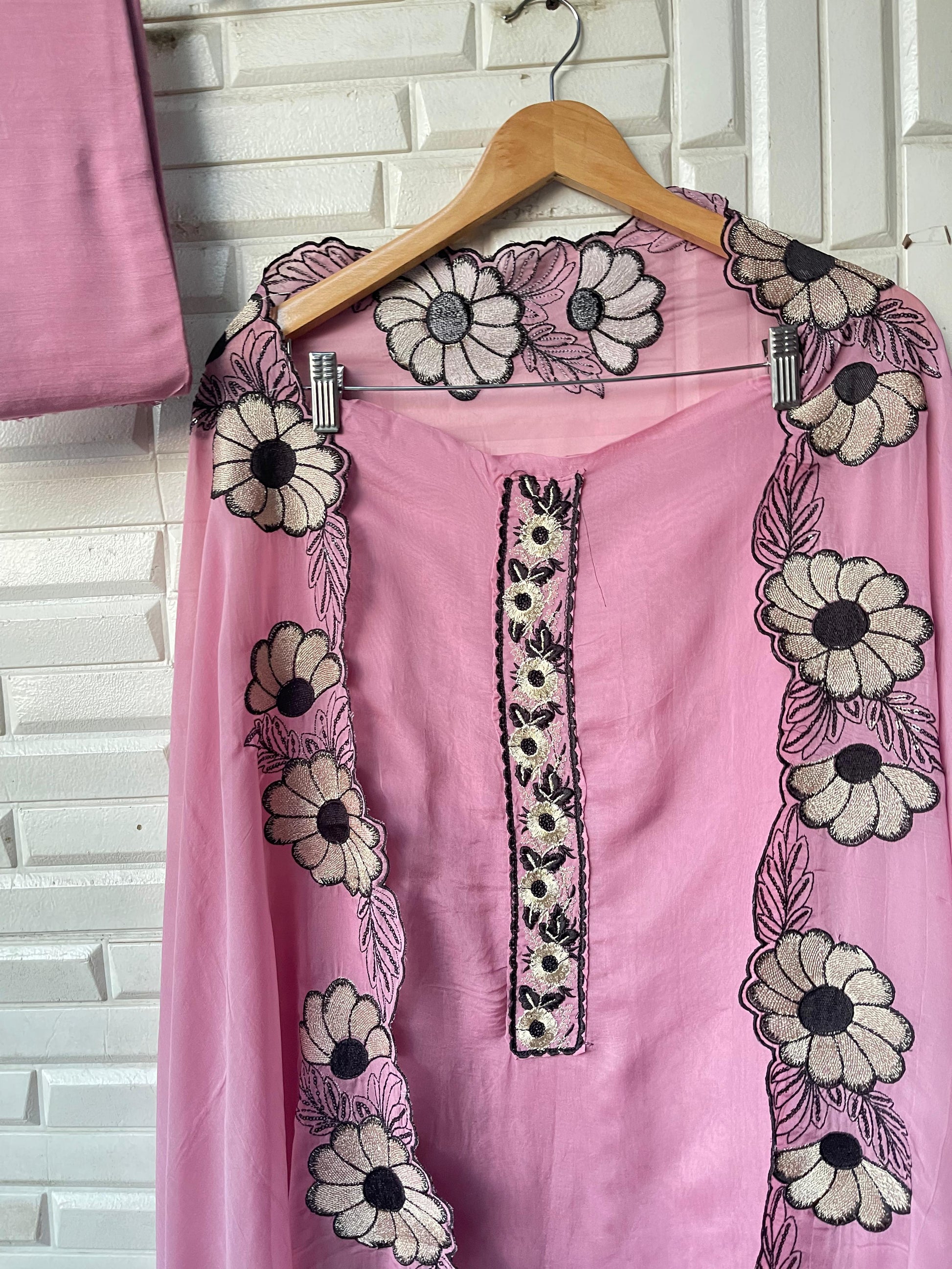 😊 organza fabric un stitched shirt with resham sequence zari embroideryand scalping on patchwork