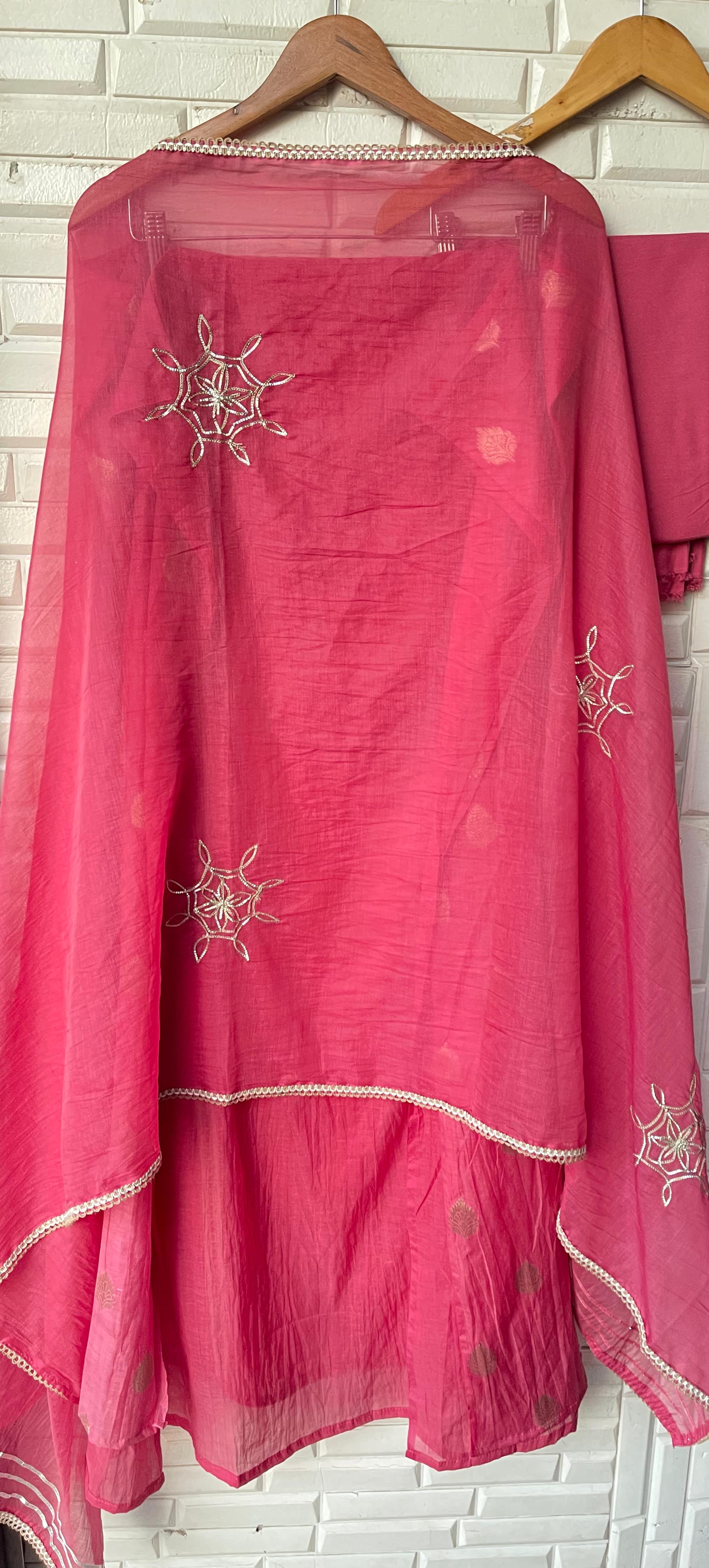 π mul chanderi fabric dupatta with crotia border lace and gotta lace work