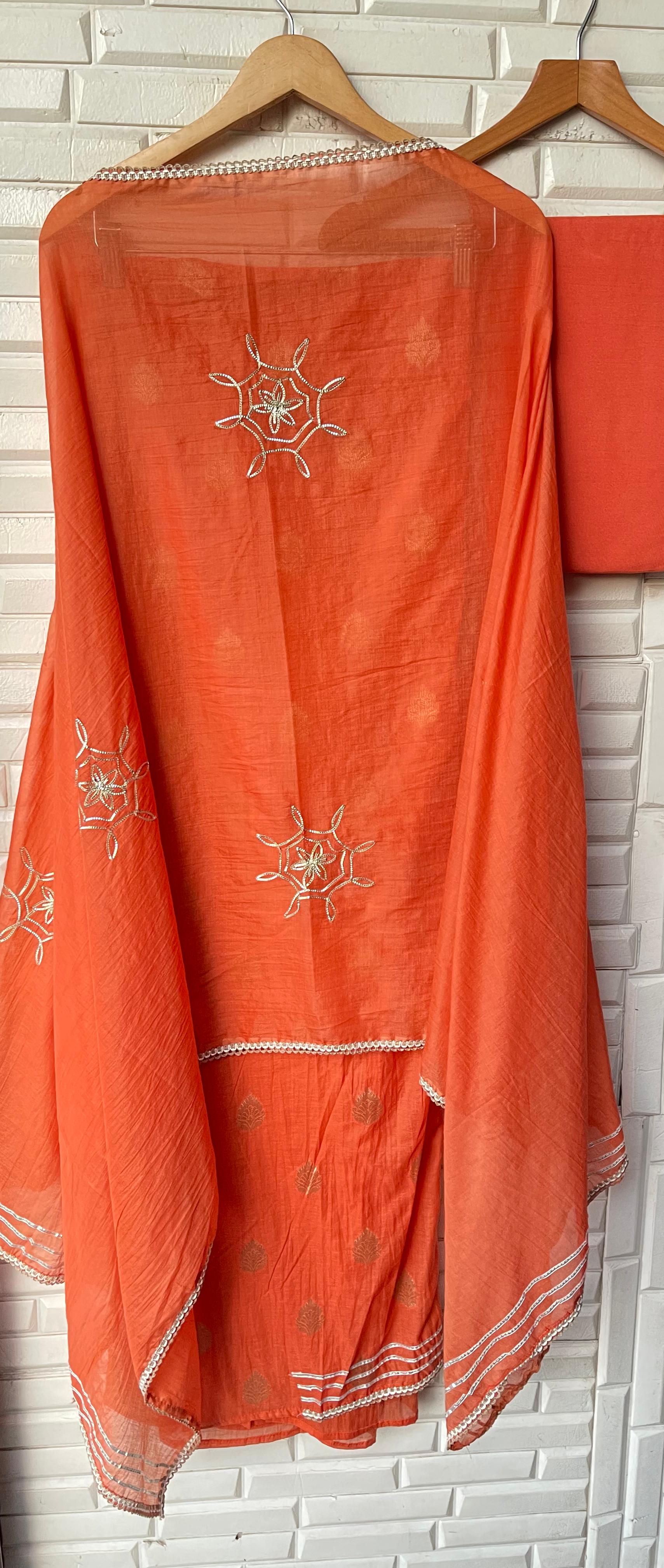 π mul chanderi fabric dupatta with crotia border lace and gotta lace work