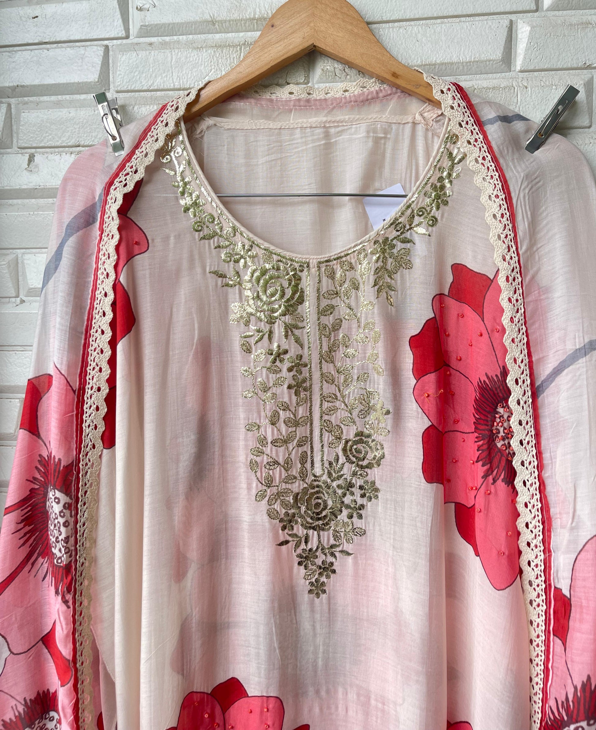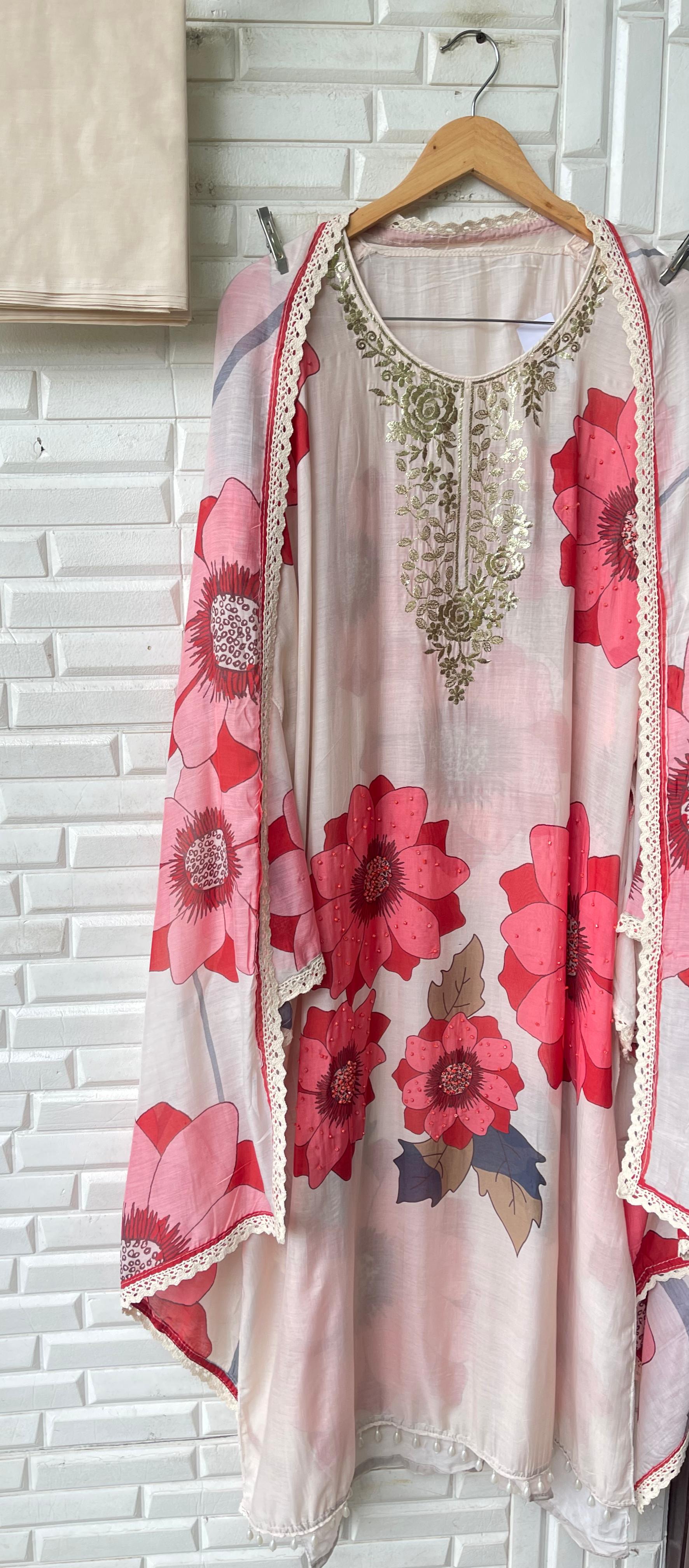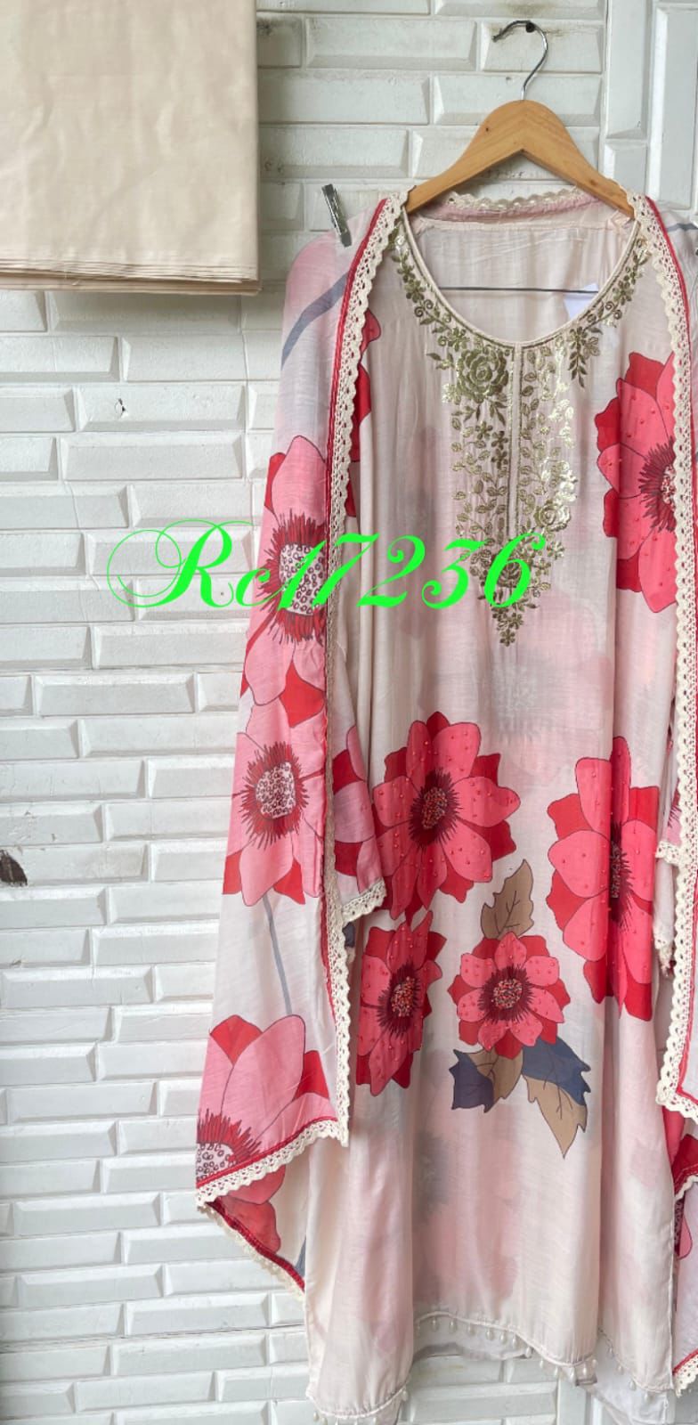 π super soft mul chanderi printed fabric un stitched shirt with pitta work