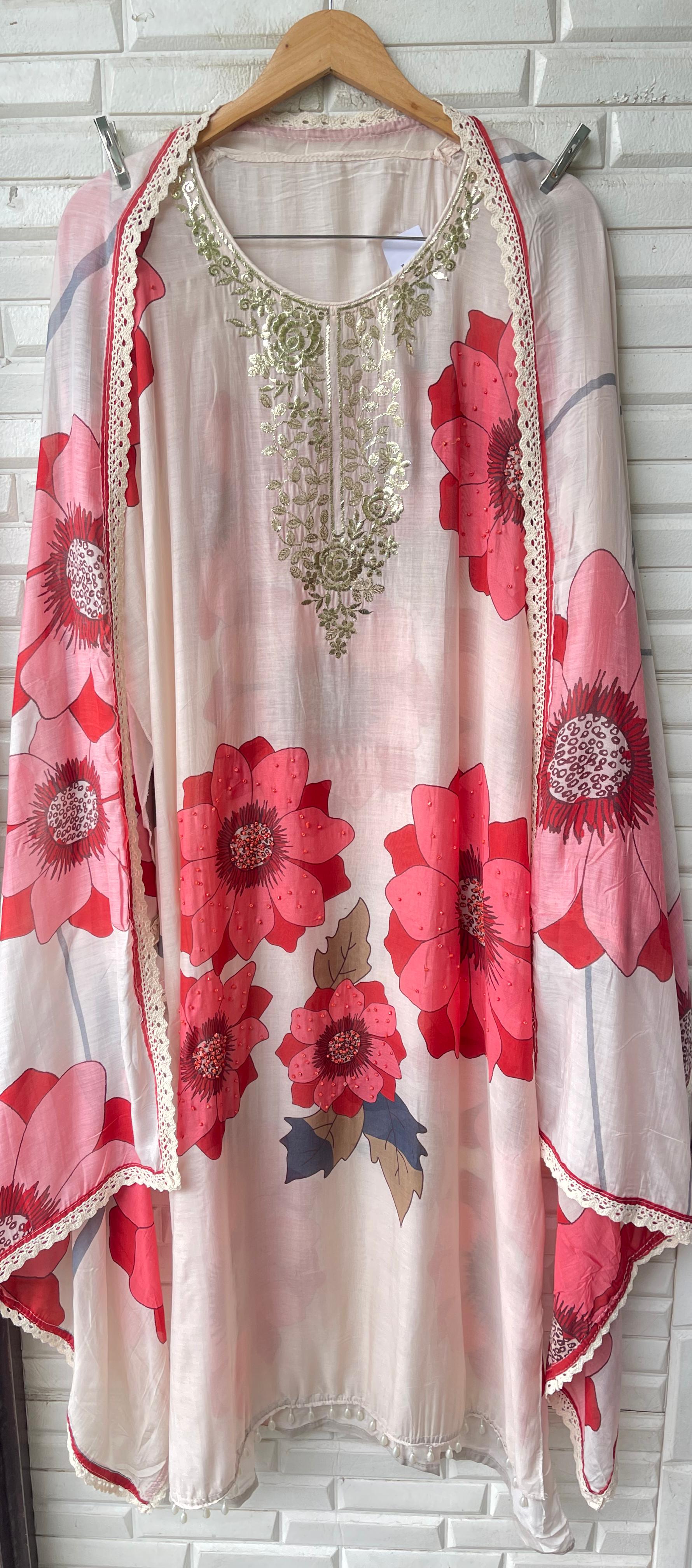 π super soft mul chanderi printed fabric dupatta with crotia border lace