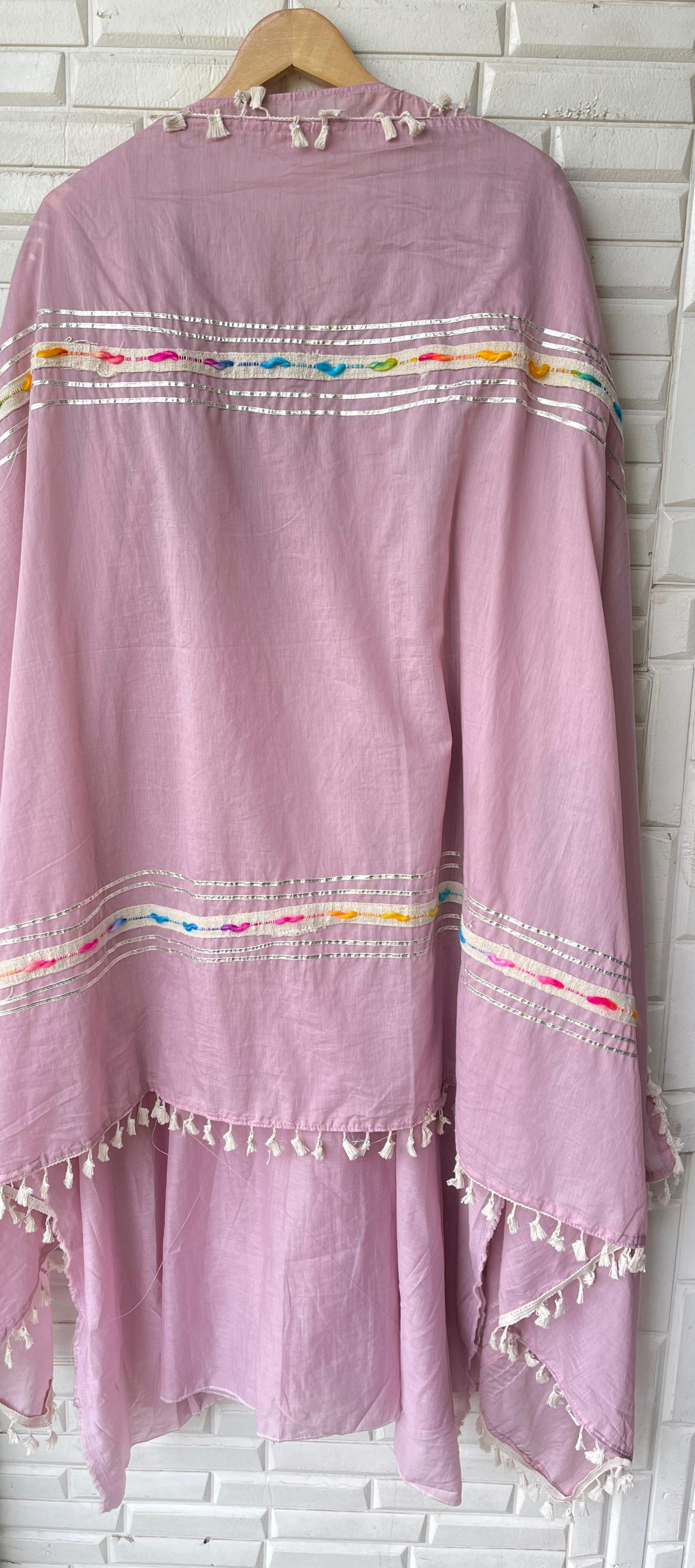😊 mul chanderi fabric un stitched shirt with mirror gotta lace work resham embroidery and crotia lace with sequence highlighting and jute fabric panels