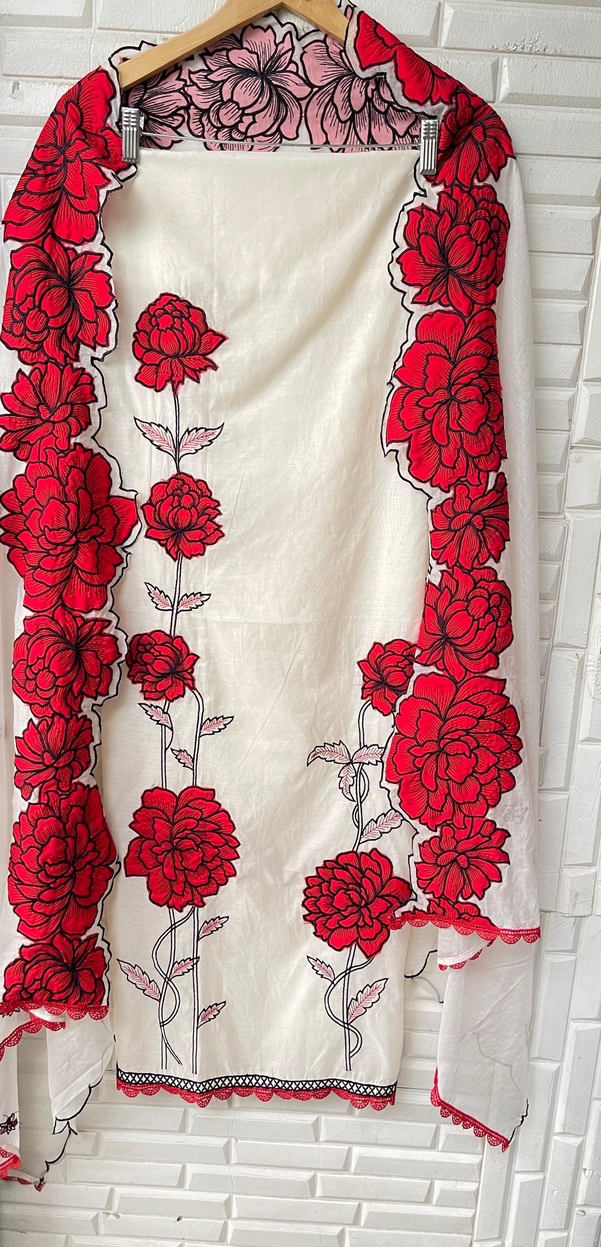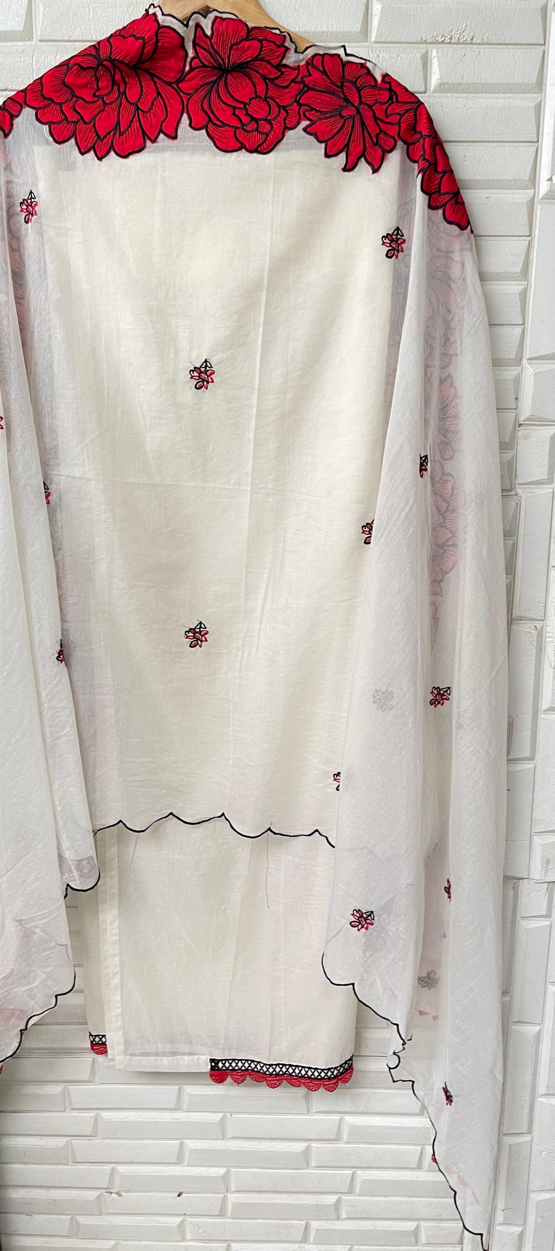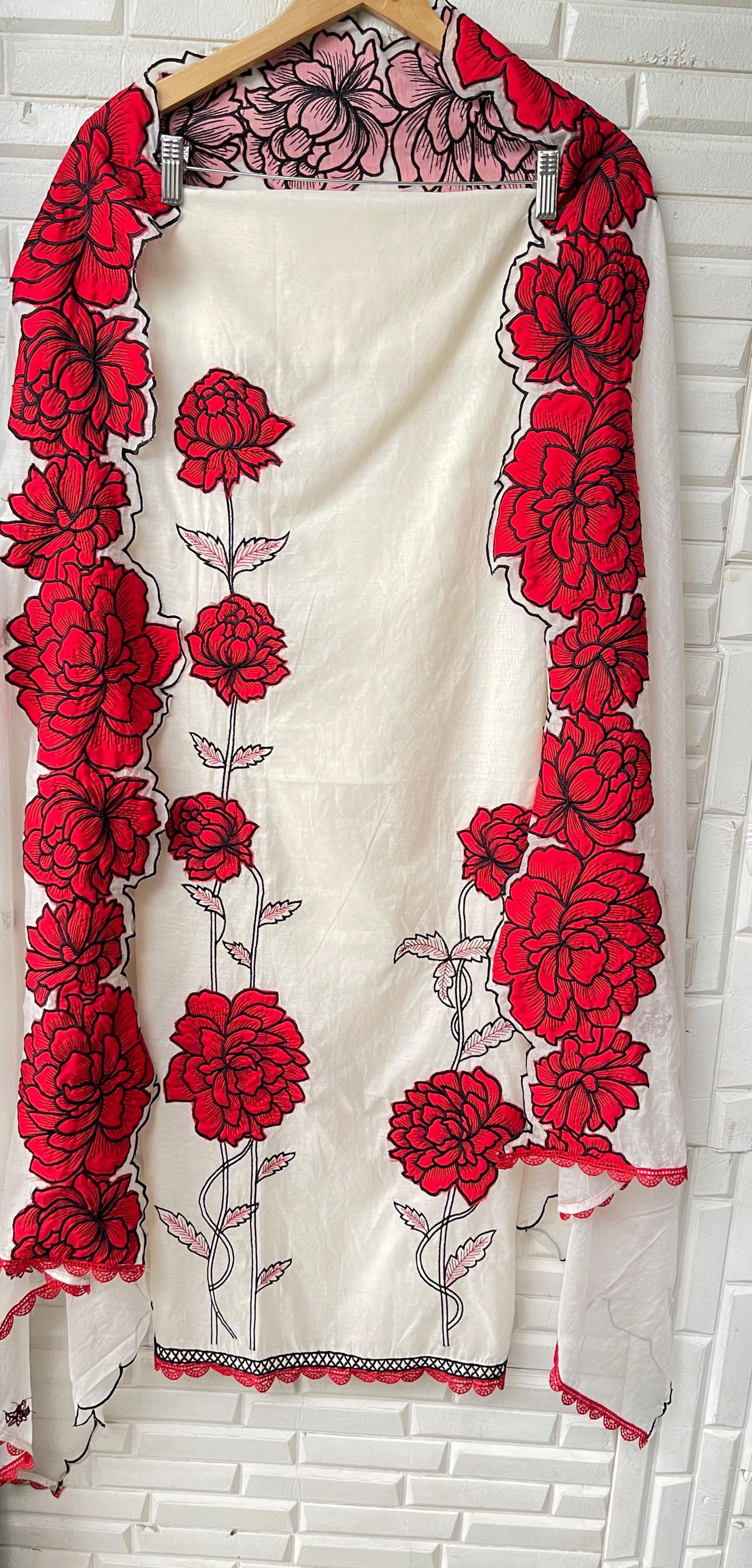 😊 pure mul chanderi fabric dupatta with crotia border lace stunning patchwork resham embroidery