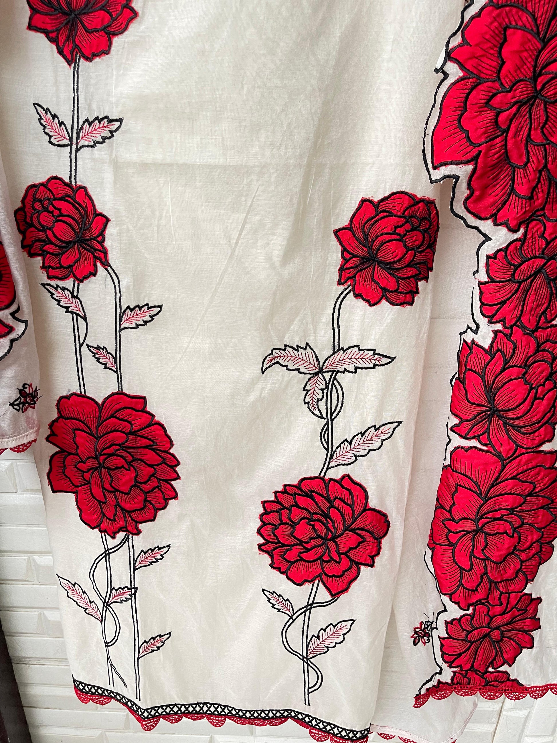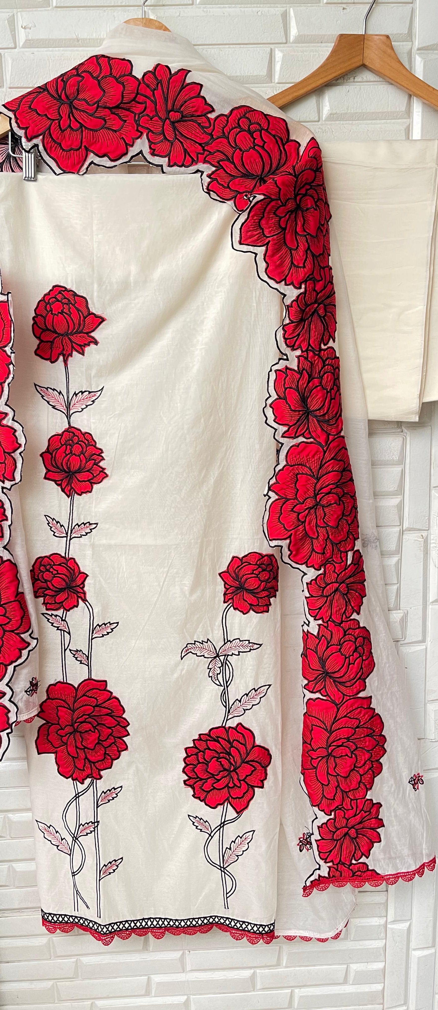 😊 pure mul chanderi fabric un stitched shirt with resham embroidery gorgeous patchwork and crotia ghera lace