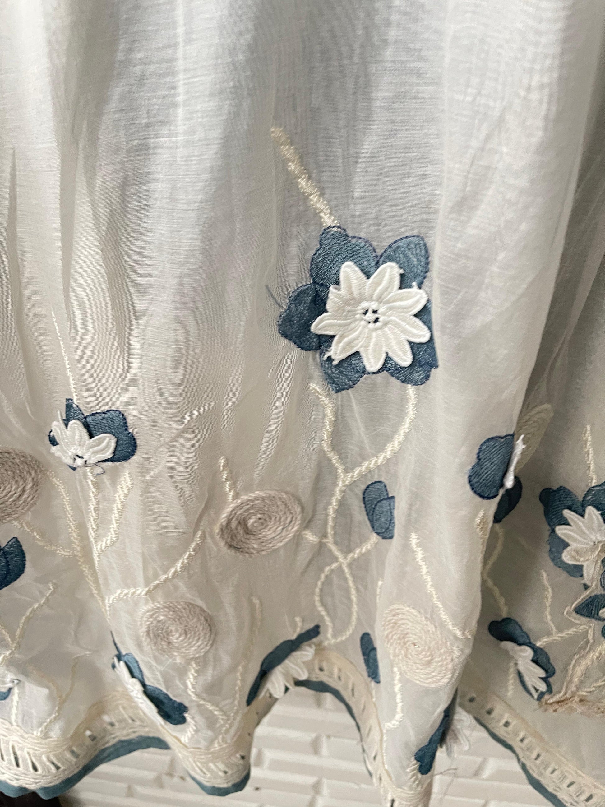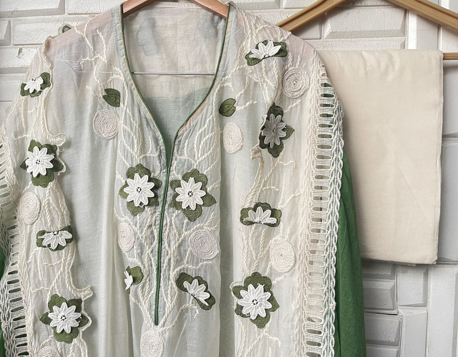 😊 mul chanderi fabric unstitched shirt with 3D flowers resham embroidery
