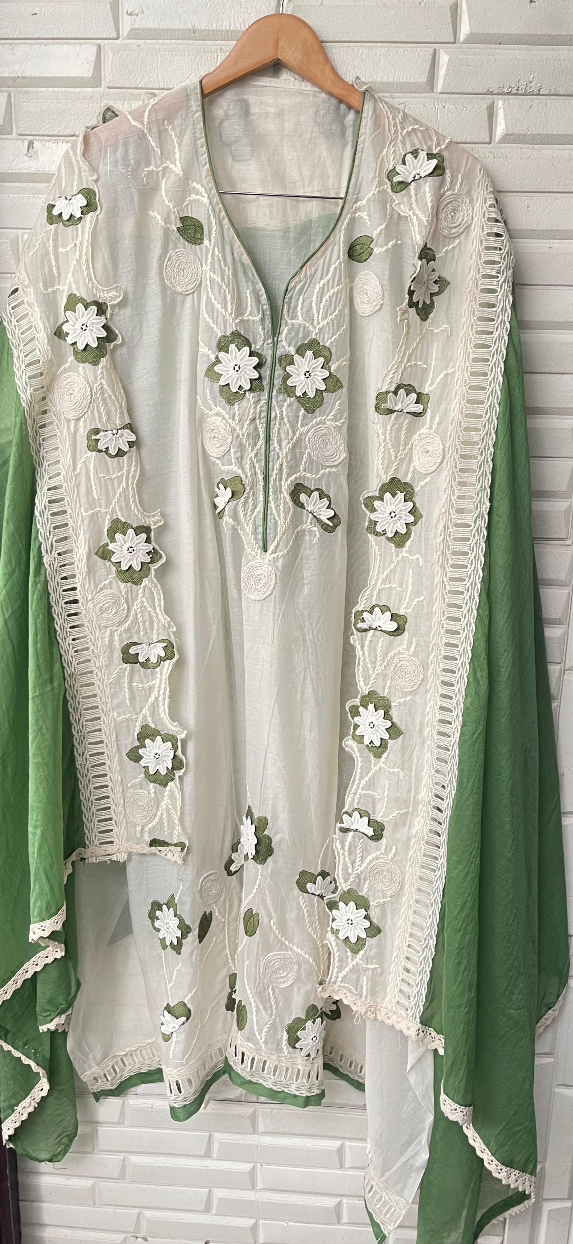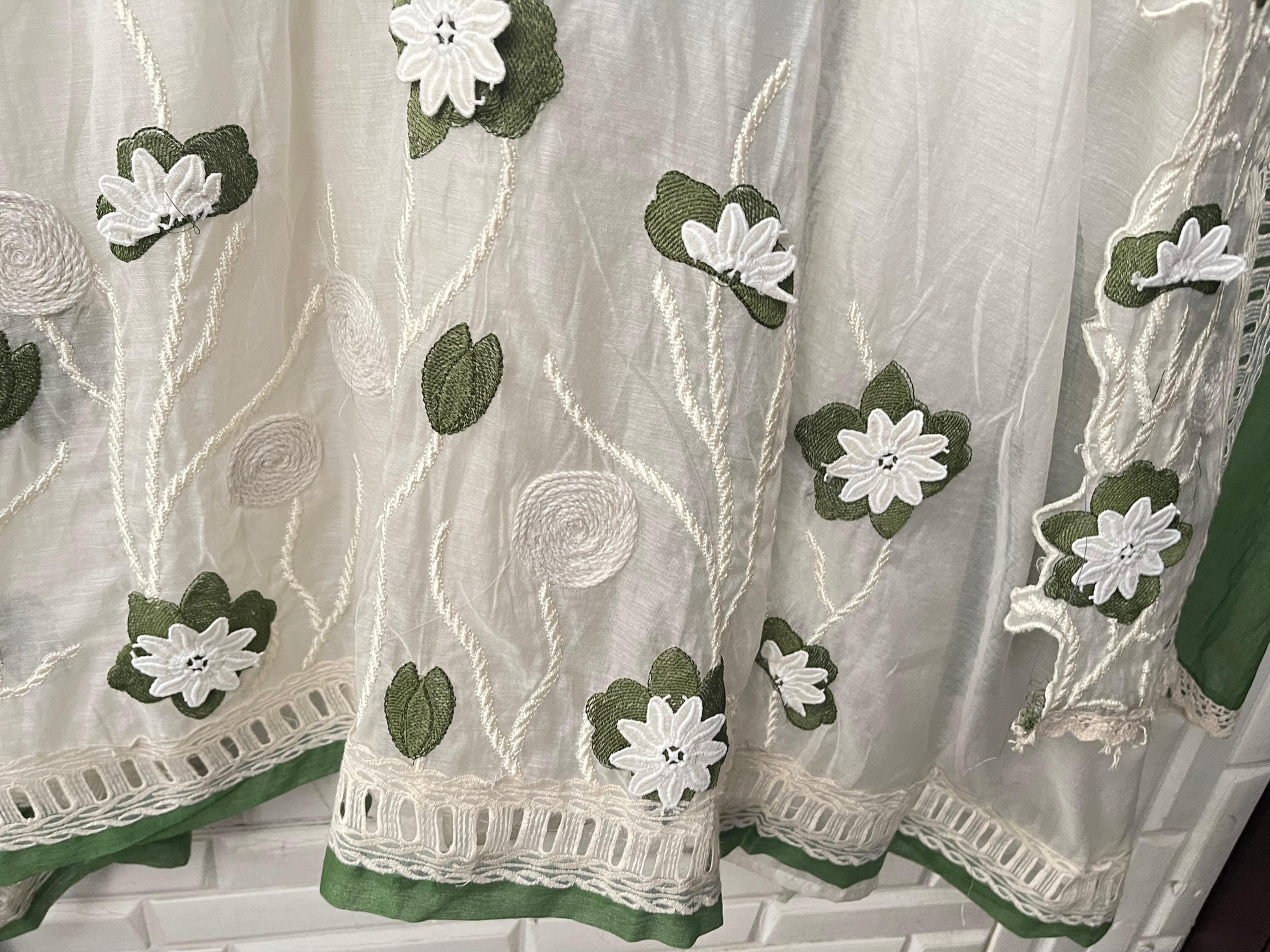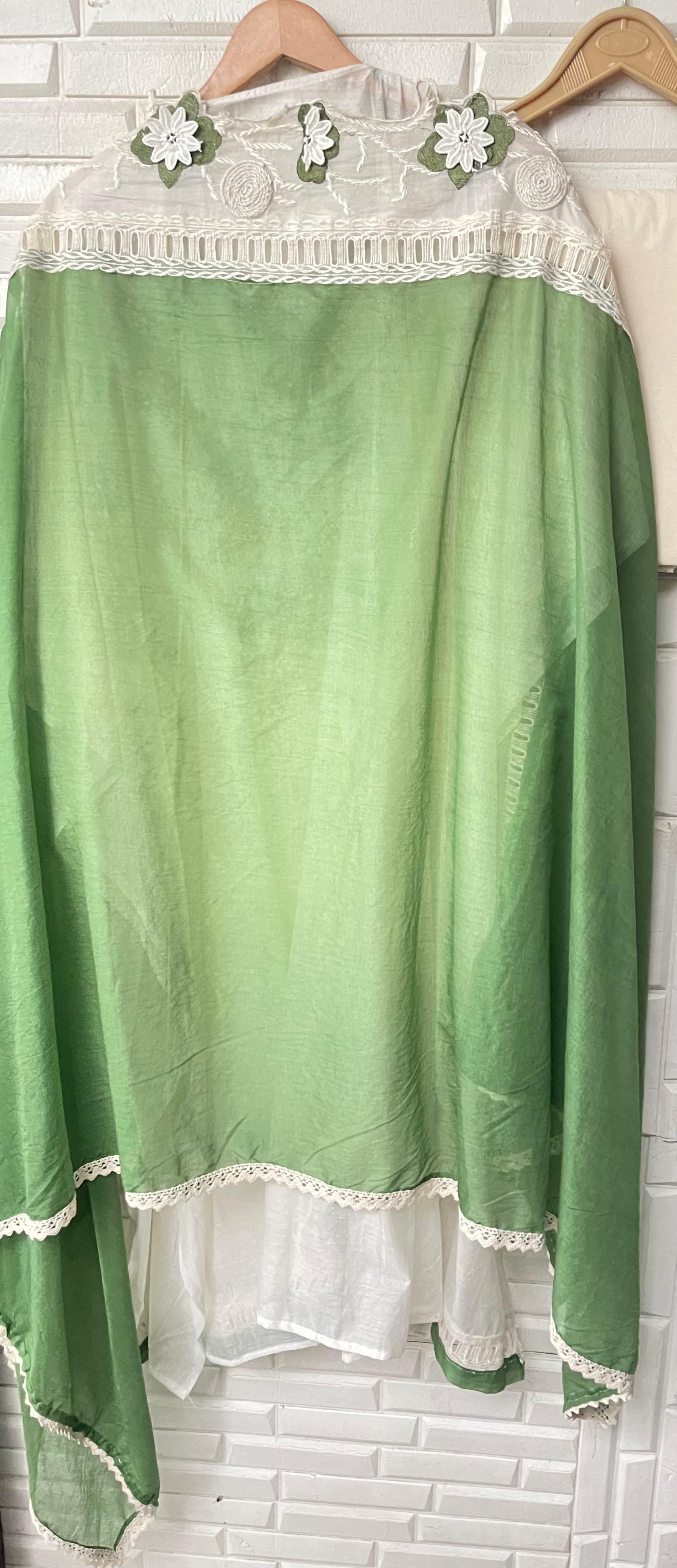 😊 mul chanderi fabric dupatta with 3D flowers work crotia lace insertions and border lace