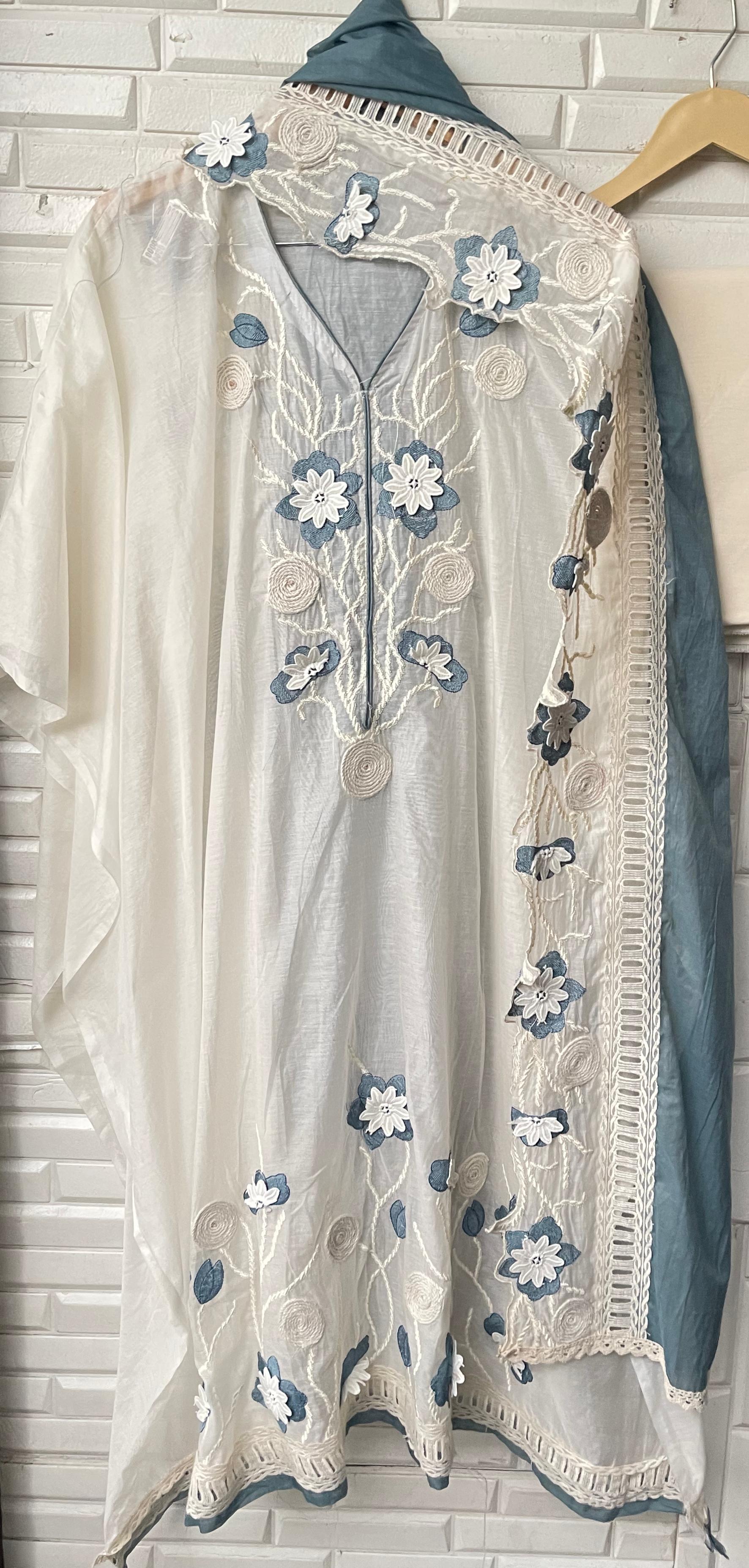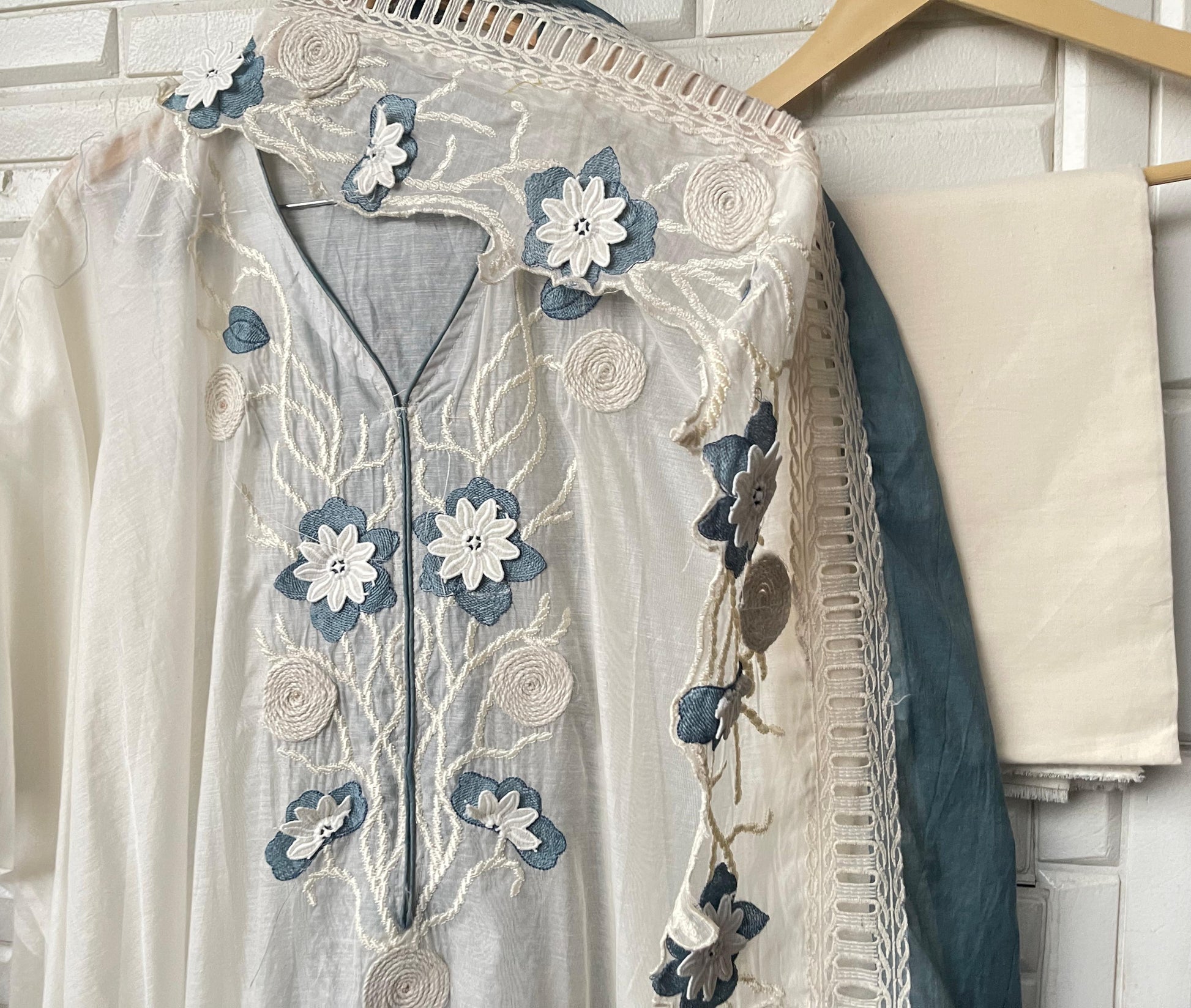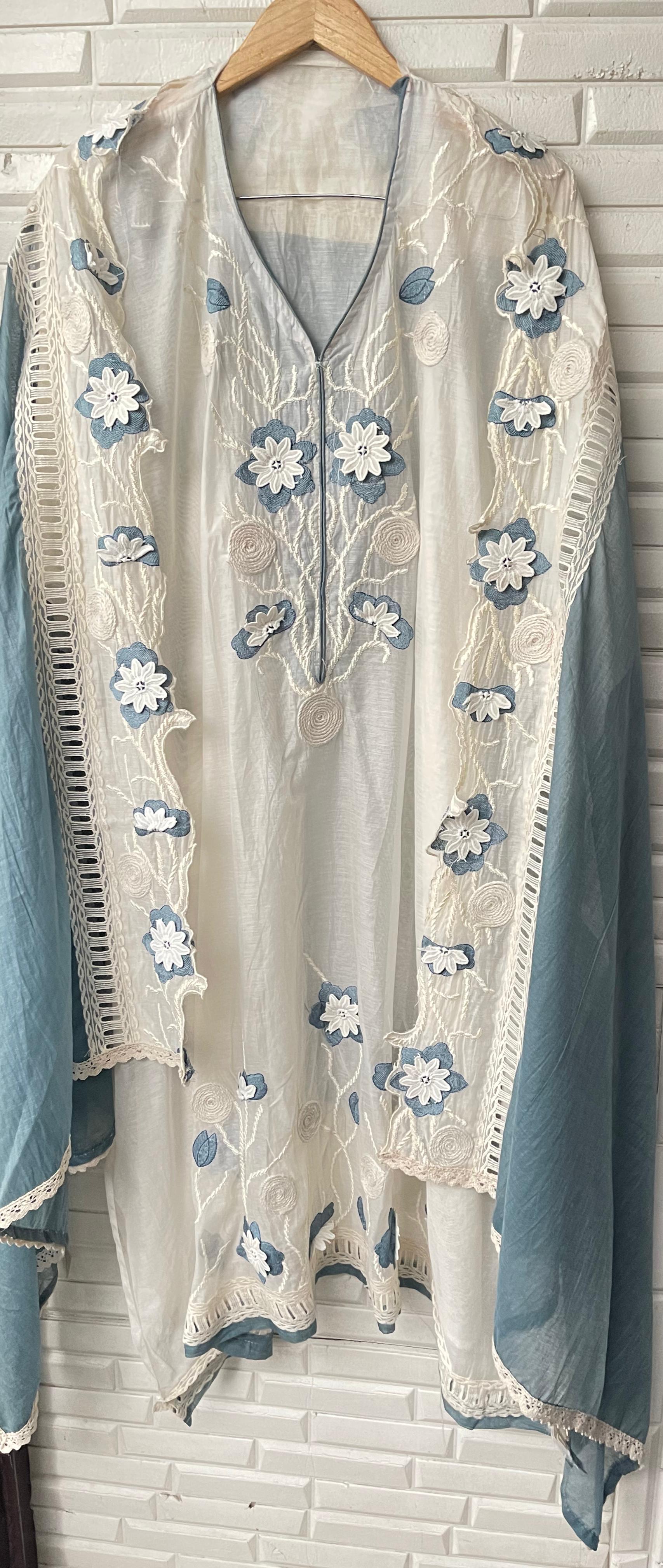 π mul chanderi fabric unstitched shirt with 3D flowers resham embroidery