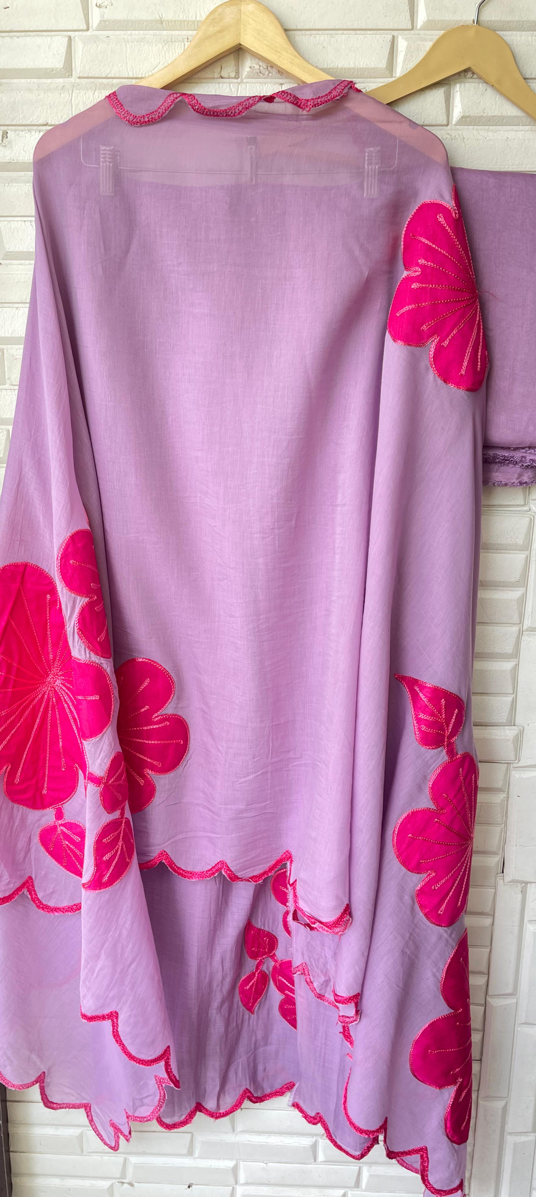 😊 pure mul chanderi fabric unstitched shirt with patchwork with resham scalping embroidery