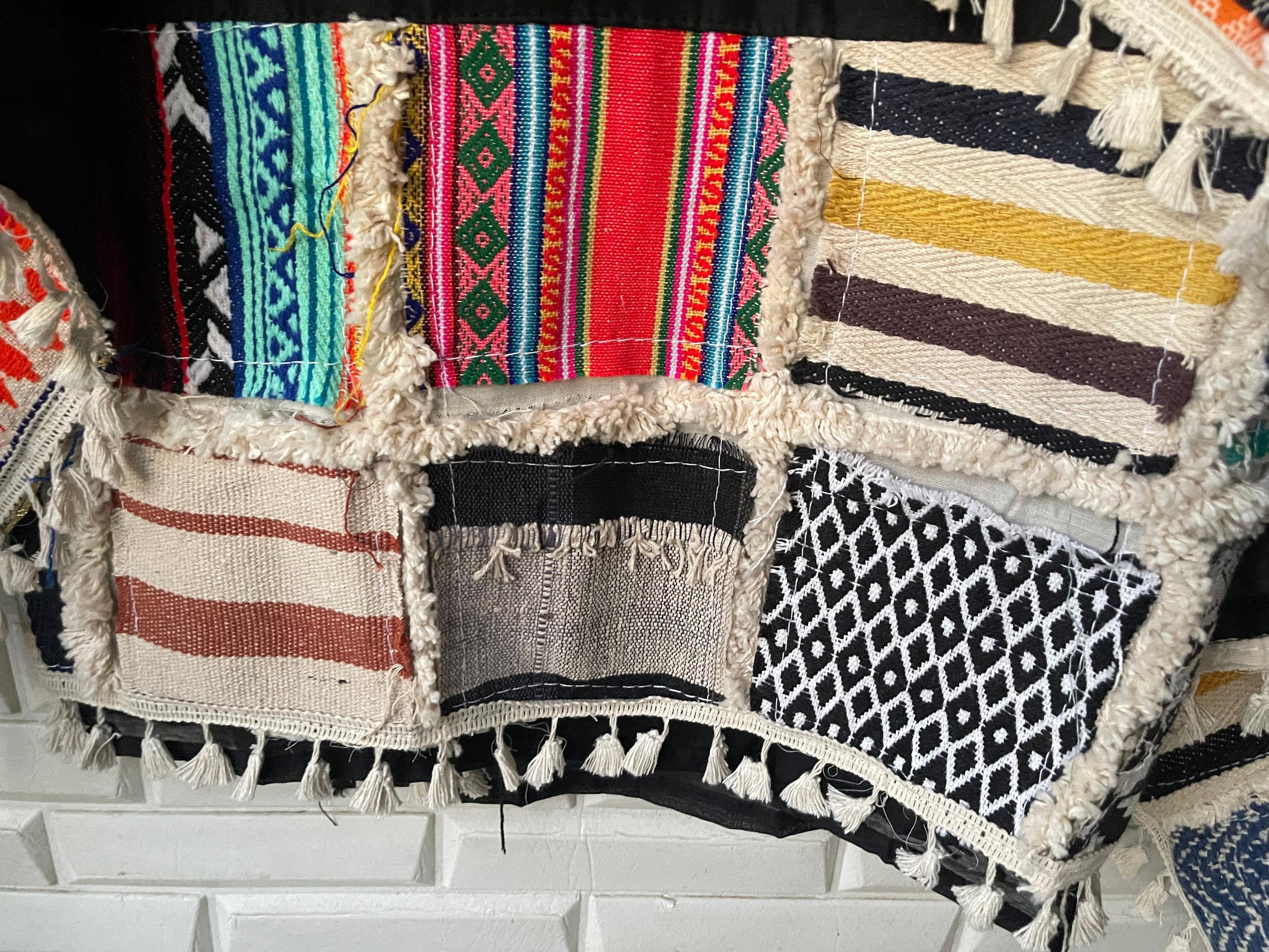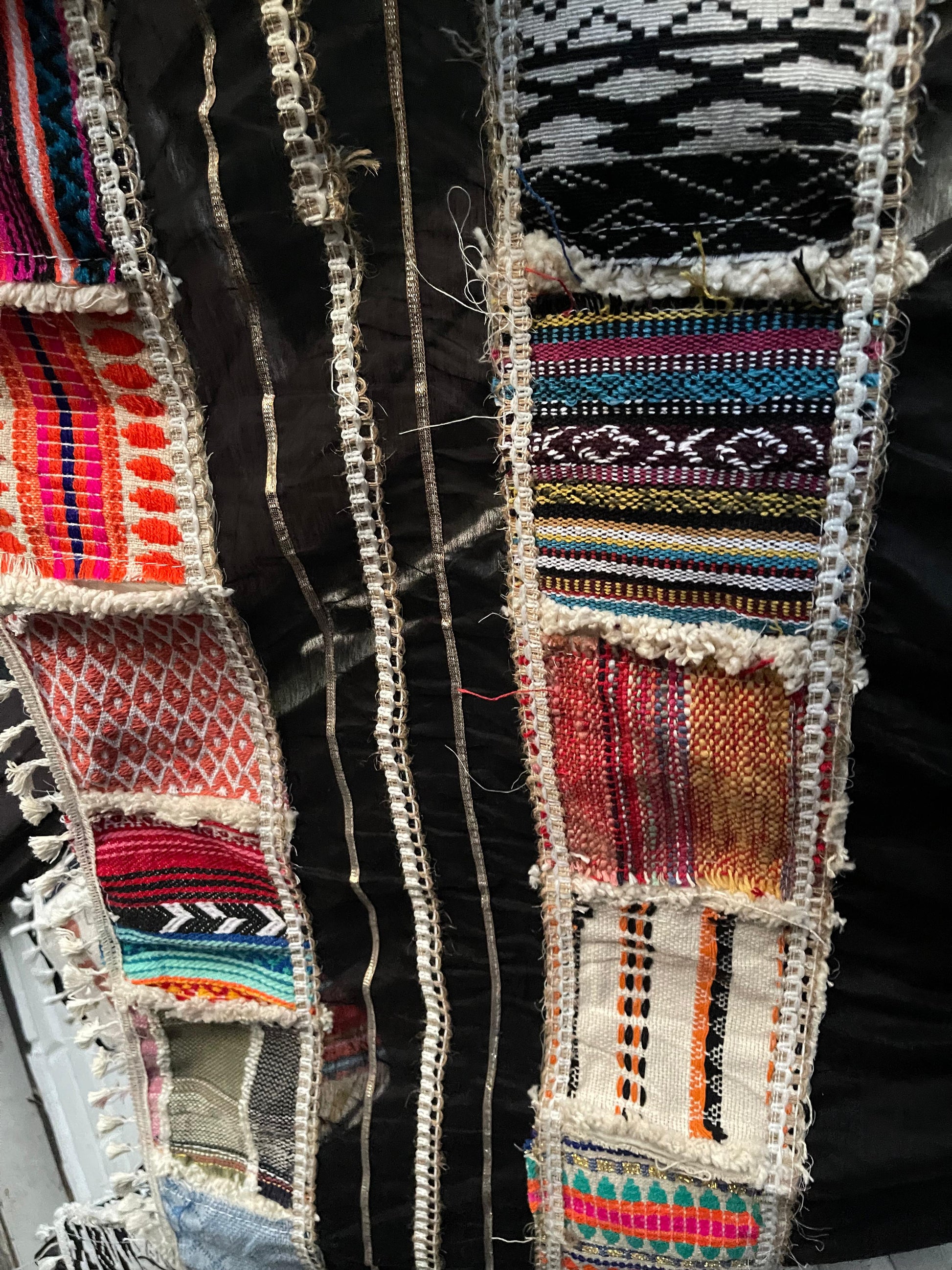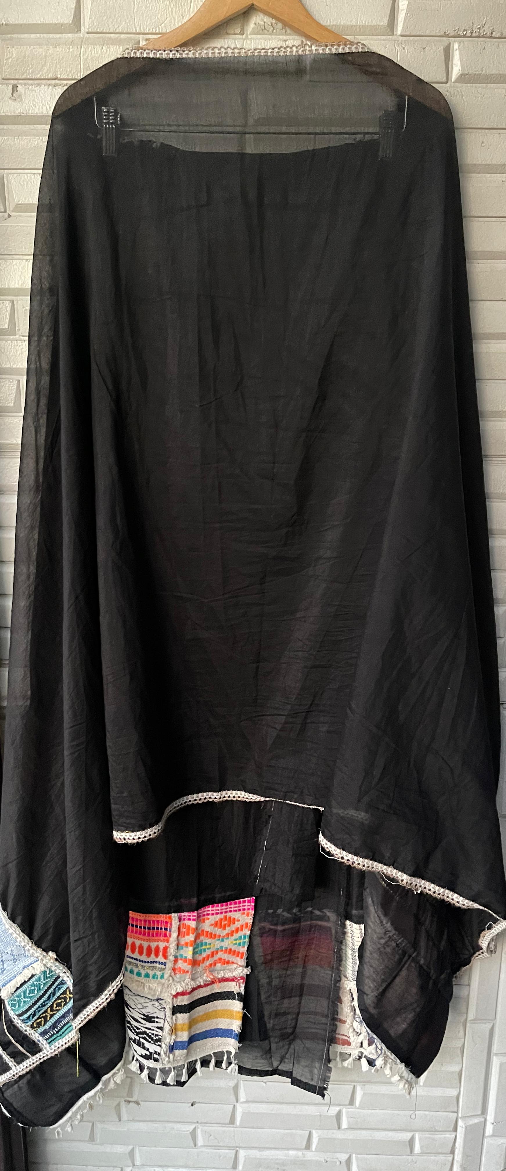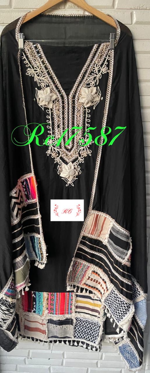 π mul Chanderi unstitched shirt with boho inspired box patchwork and jute resham knots mirror work embroidery and 3D flowers