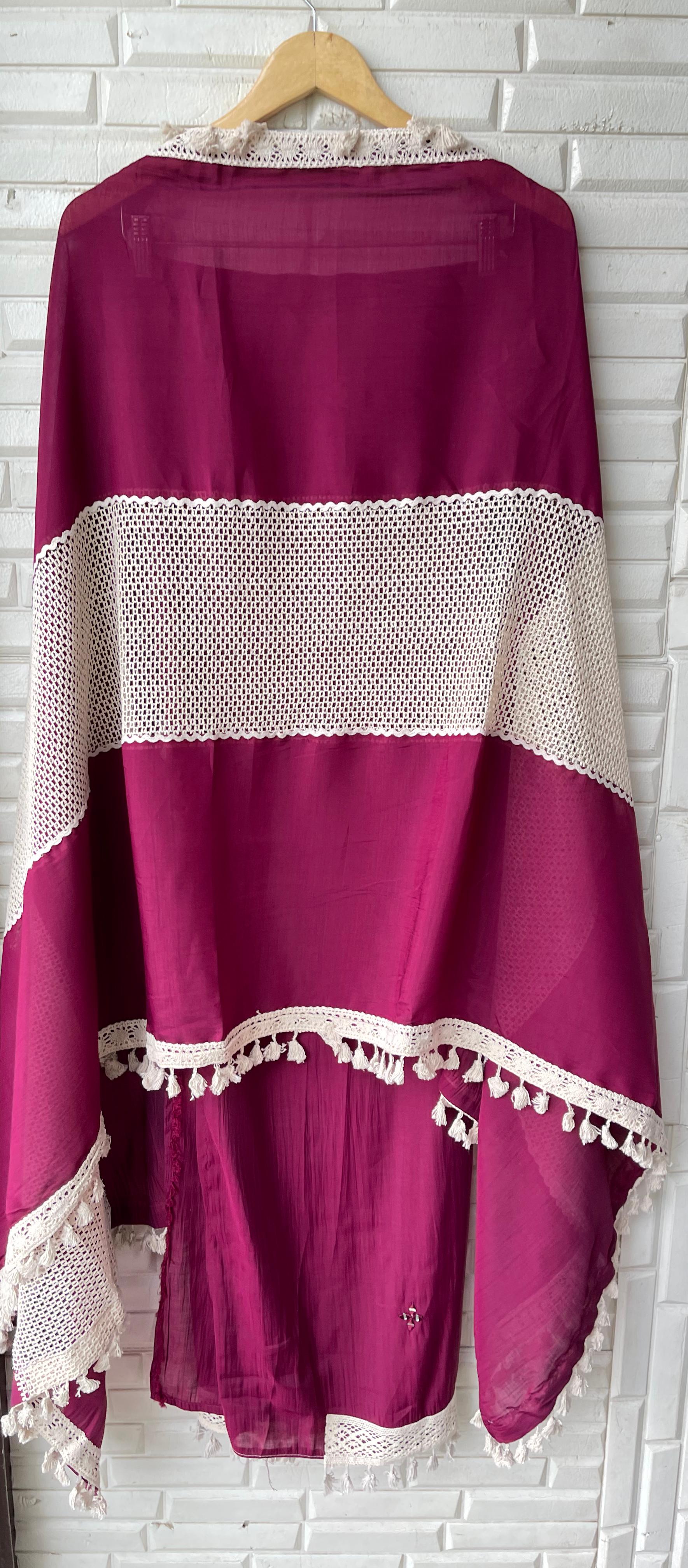 π mul chanderi fabric dupatta with crotia fabric paneling and border pom pom lace