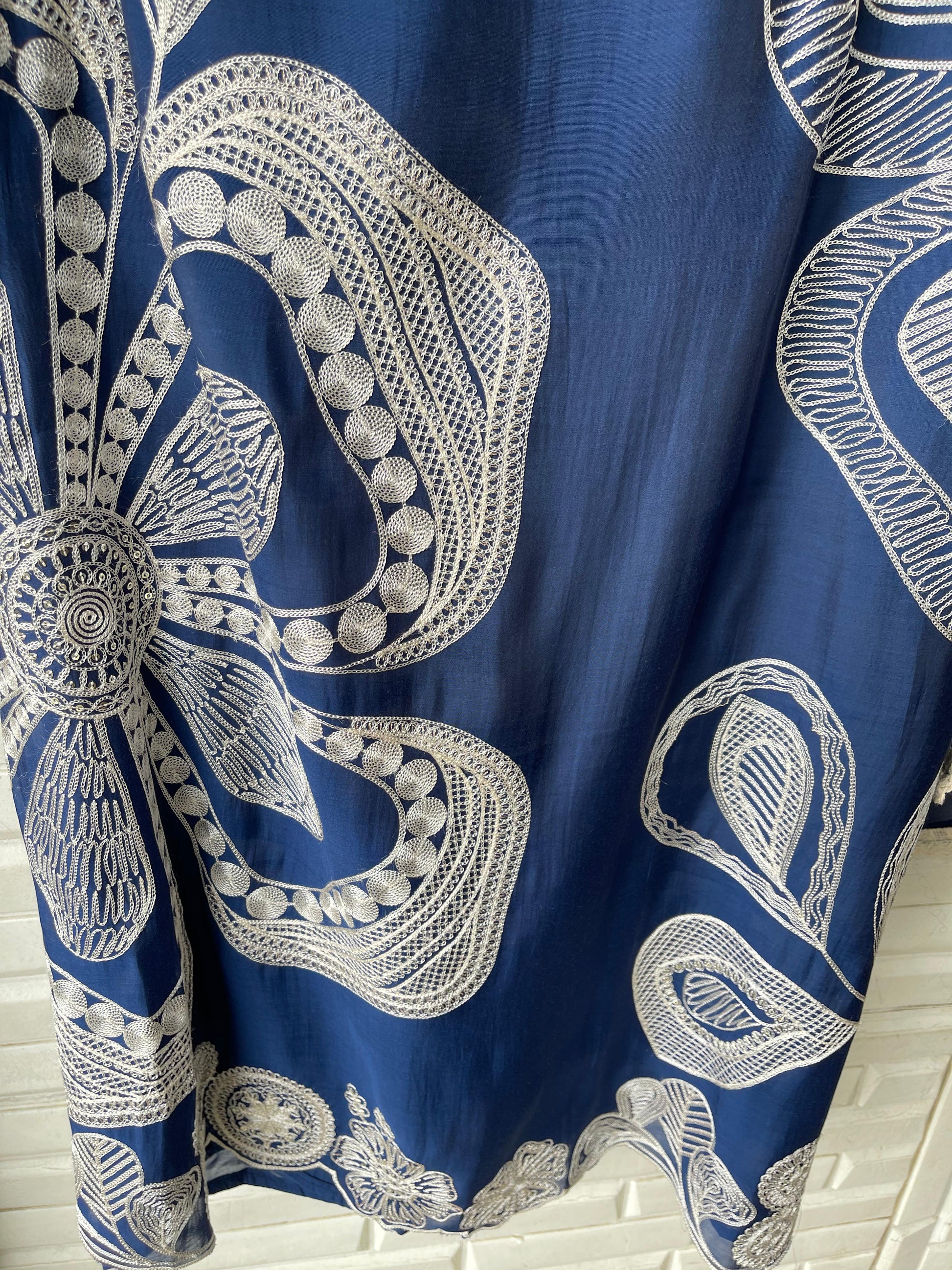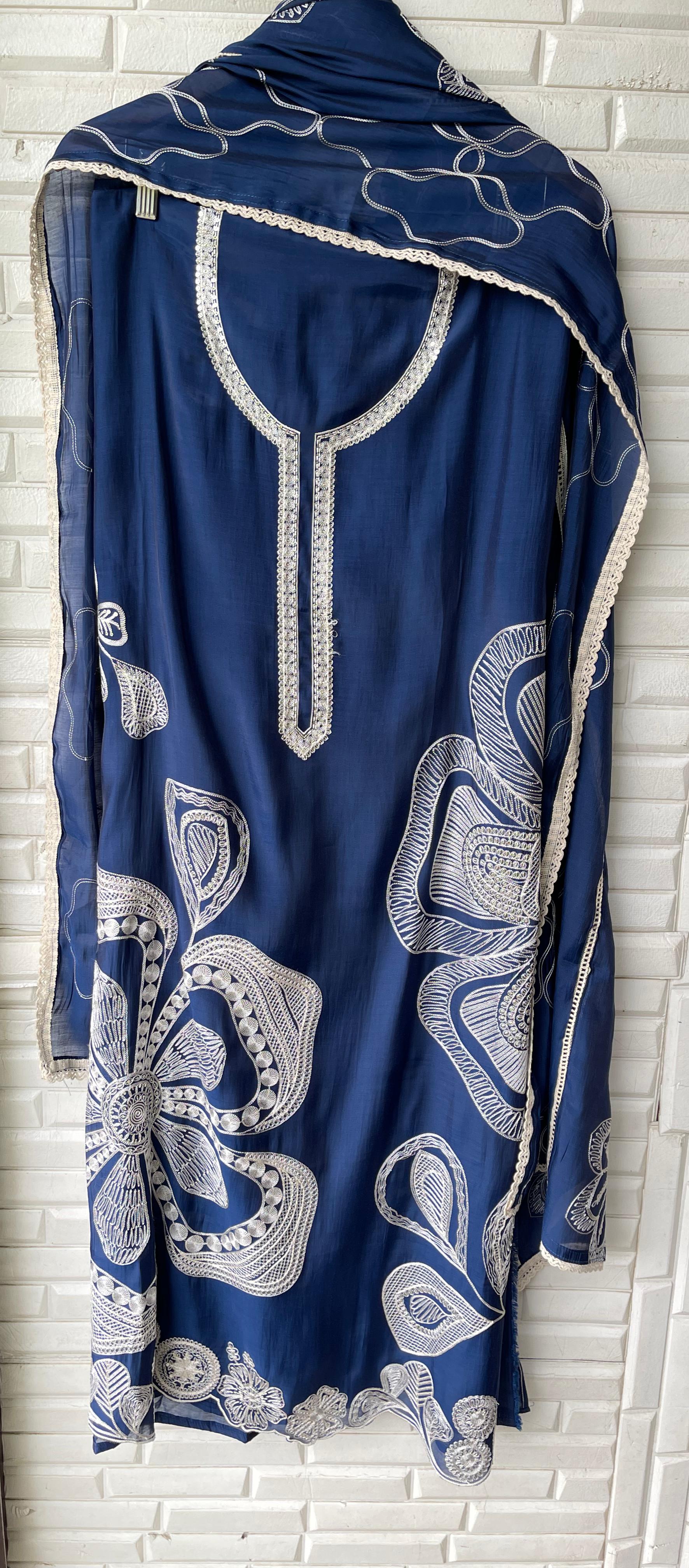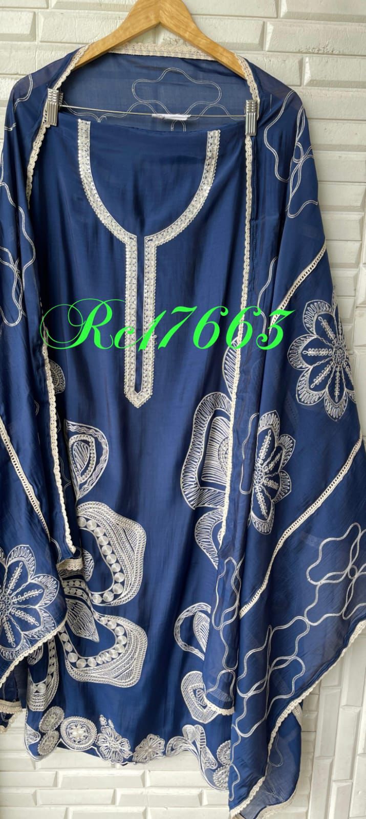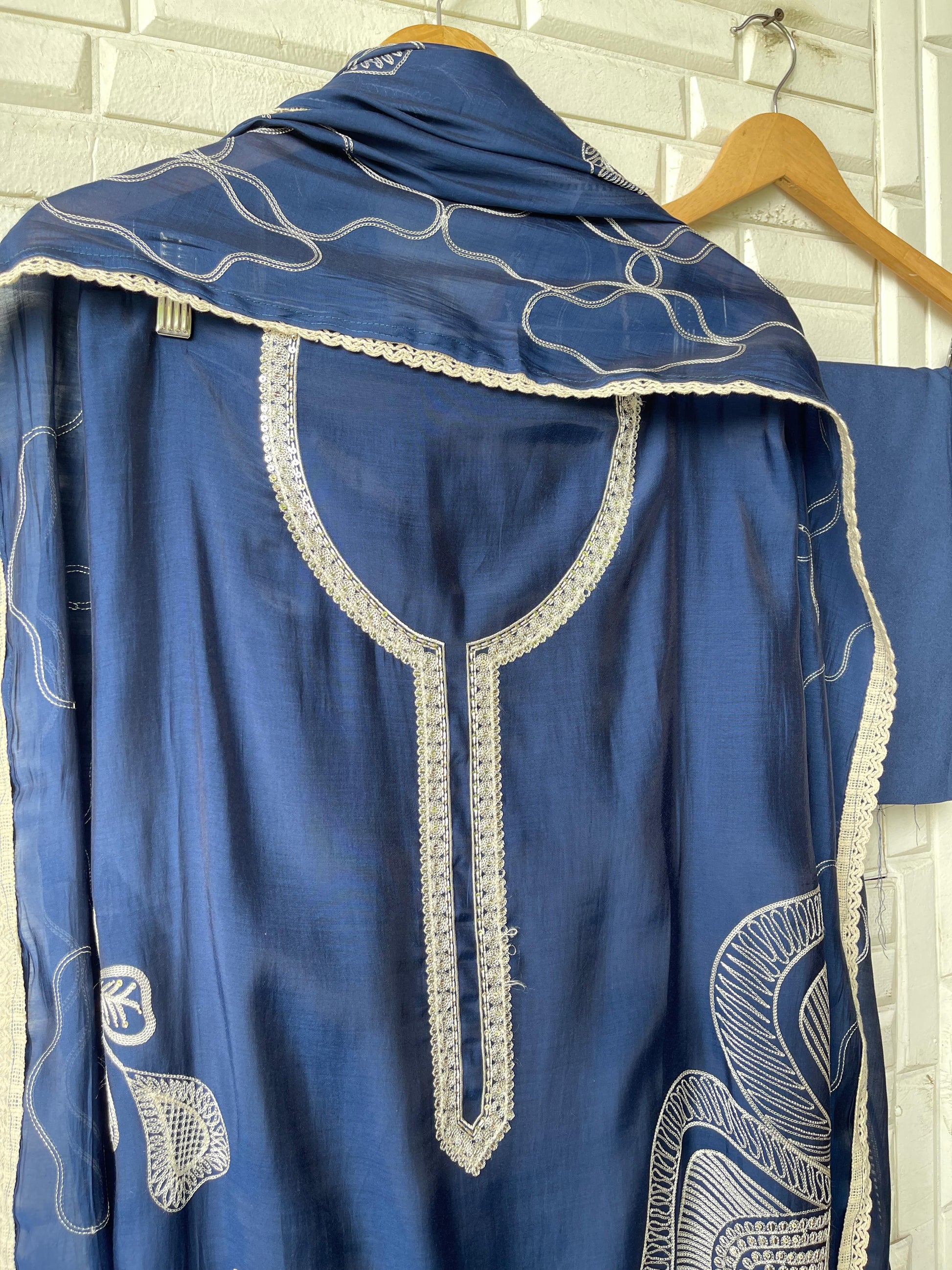 π mul chanderi fabric unstitched shirt with resham sequence embroidery and scalping on ghera