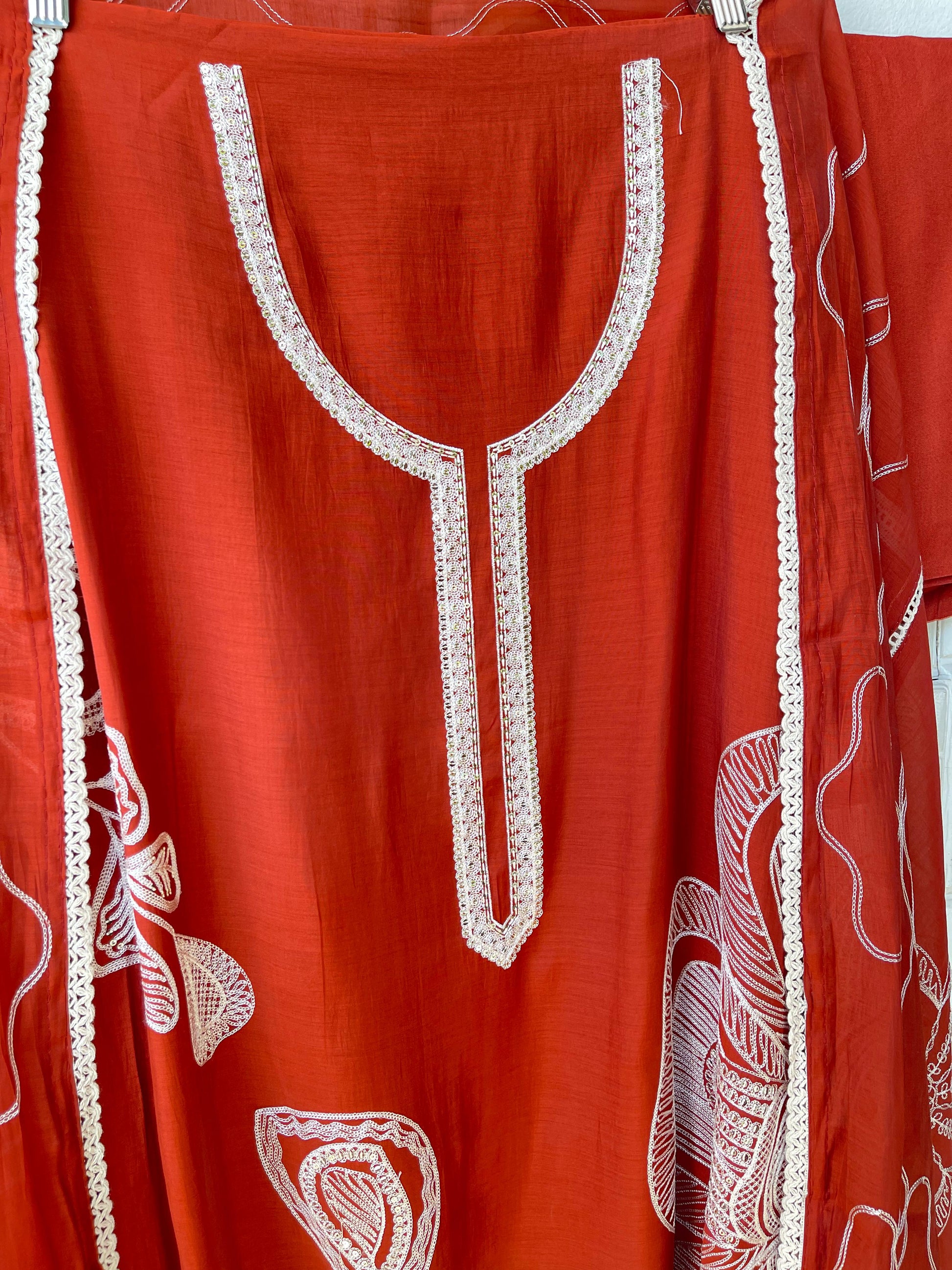 π designer mul chanderi fabric dupatta with crotia border laces panels and resham embroidery all over