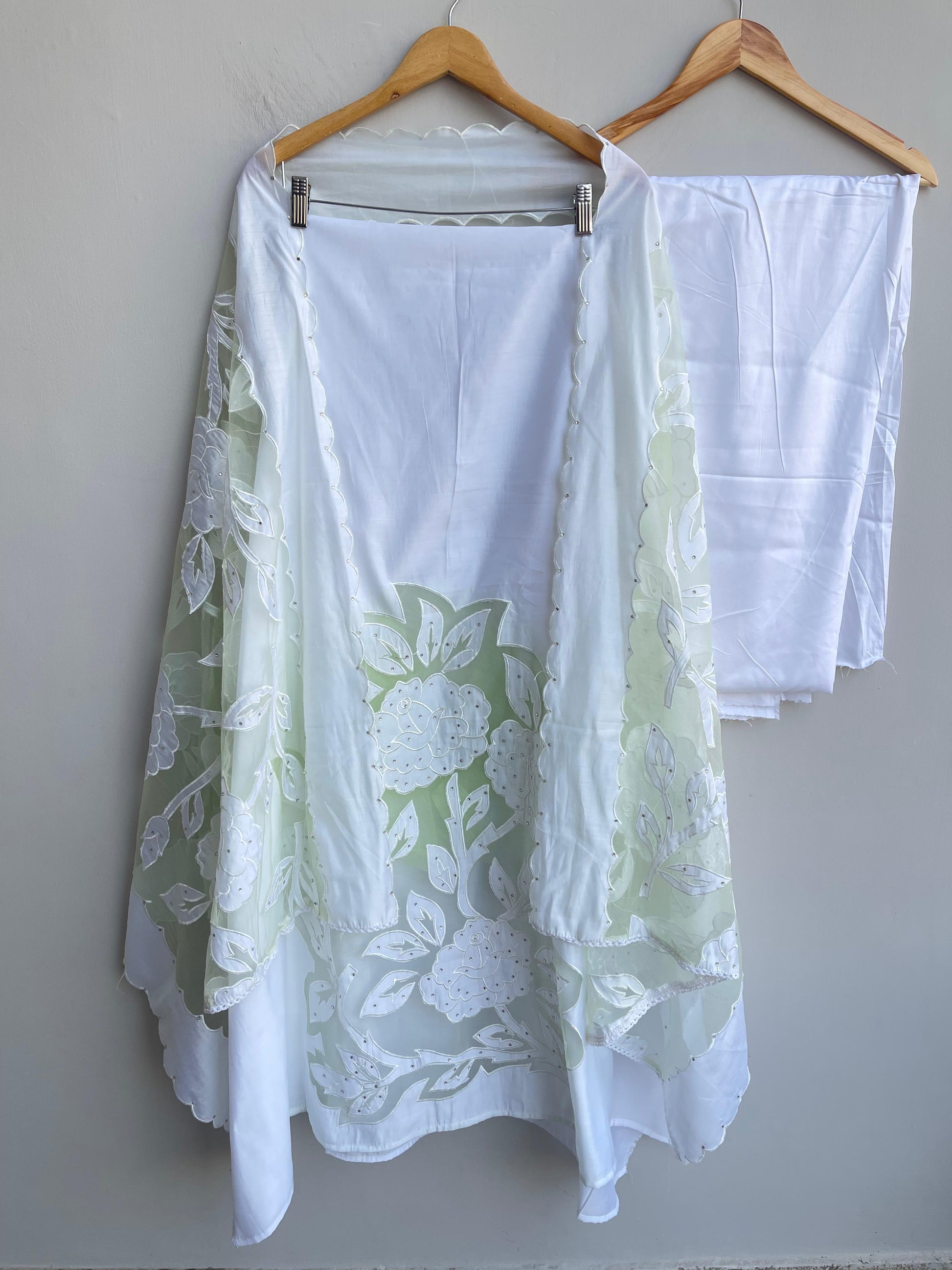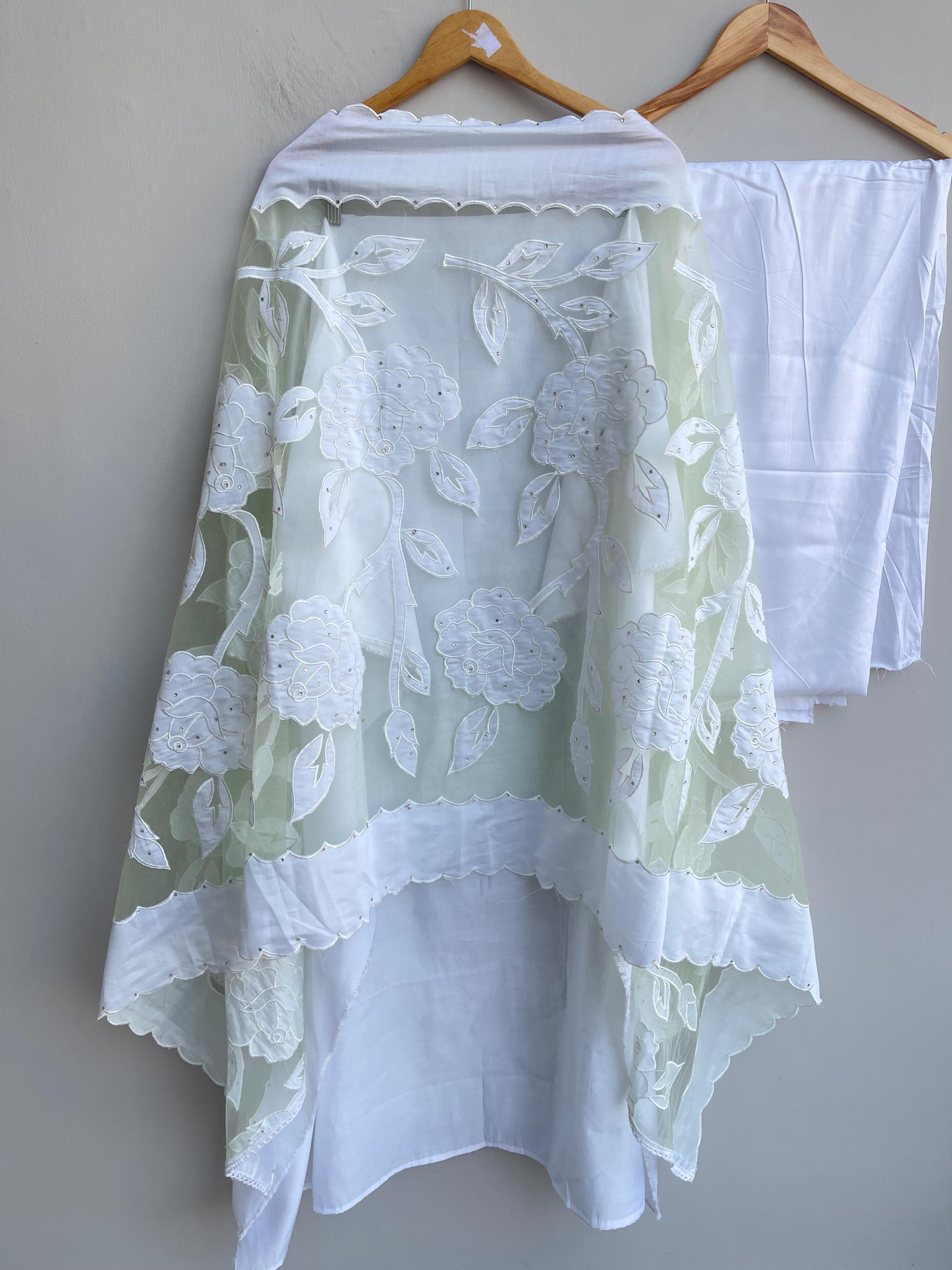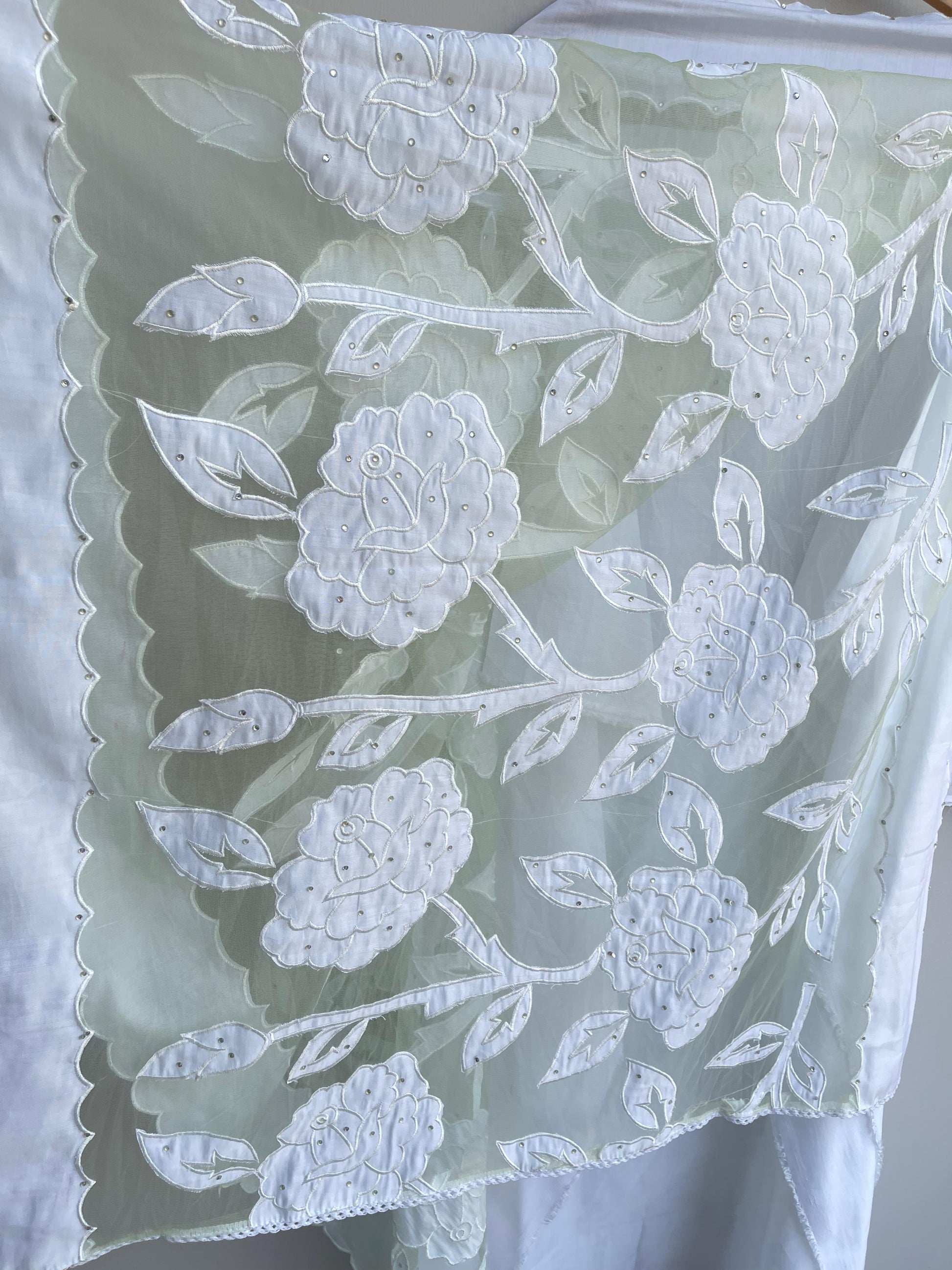 😊 mul chanderi appliqué work fabric dupatta with resham cutwork and border scalping and swarowski highlighting