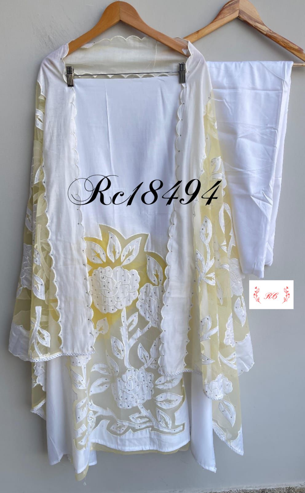 😊 mul chanderi fabric unstitched shirt with appliqué work with resham cutwork and swarowski highlighting