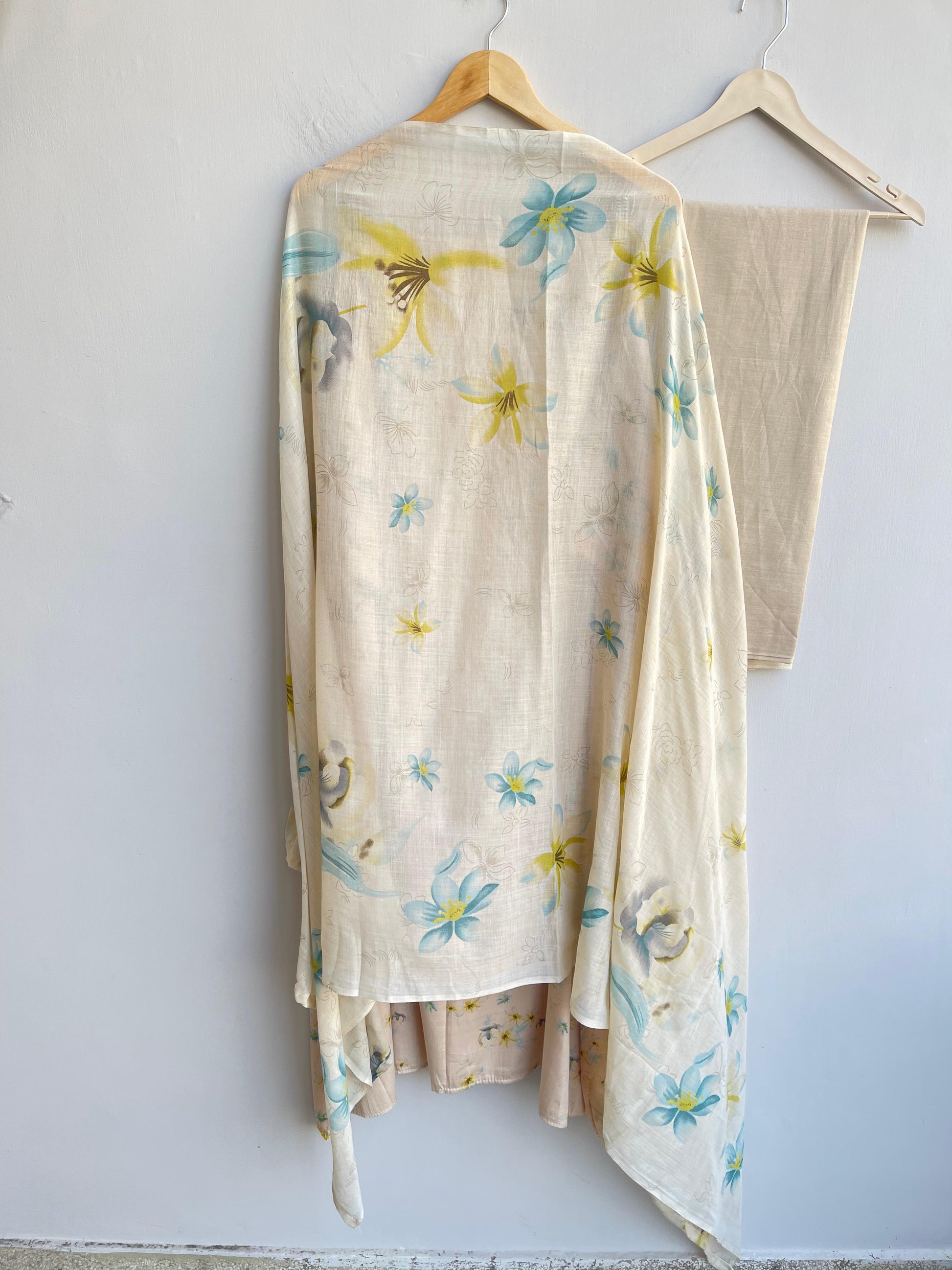π mul cotton printed fabric unstitched shirt with chikan fabric kurta patti with pearl highlighting and crotia lace